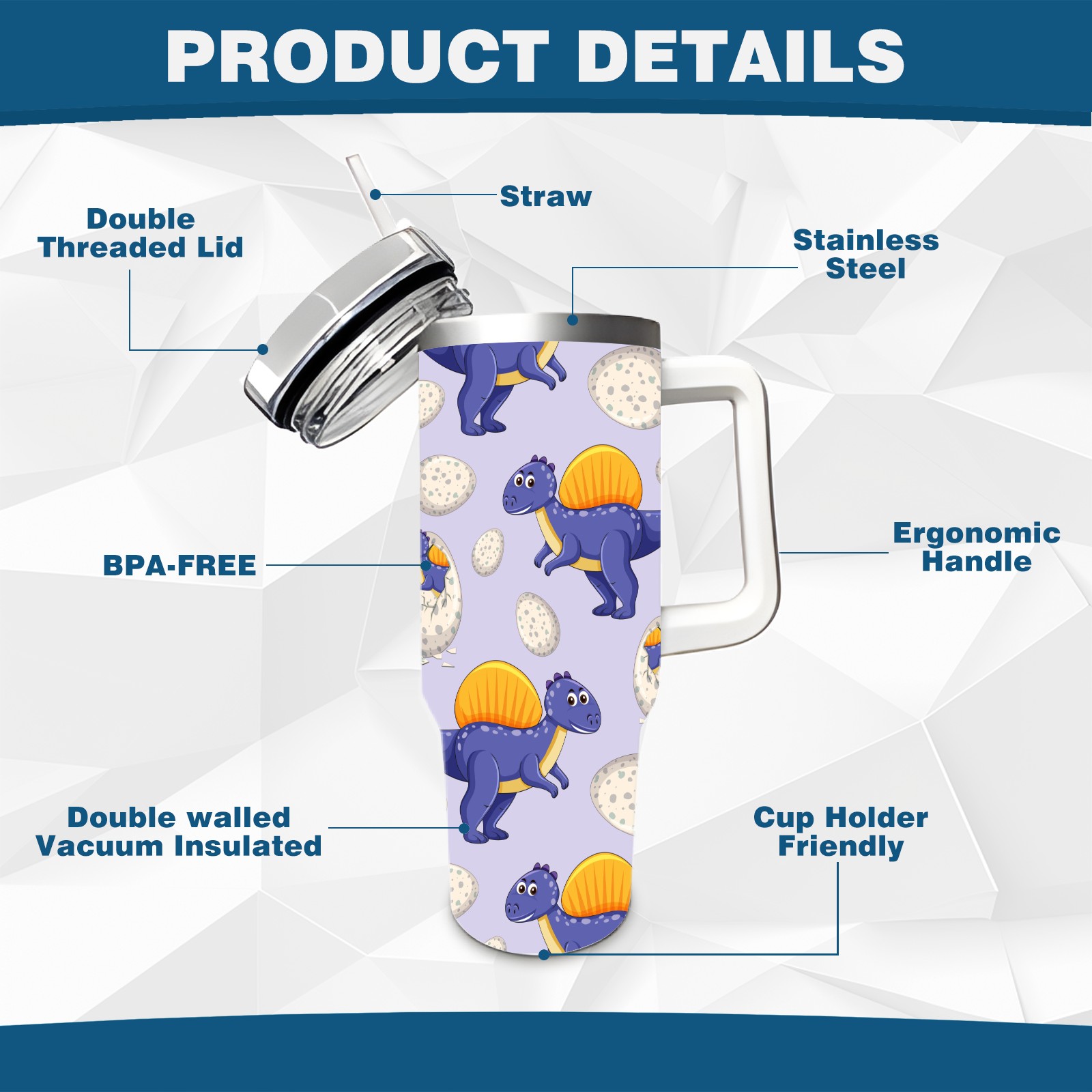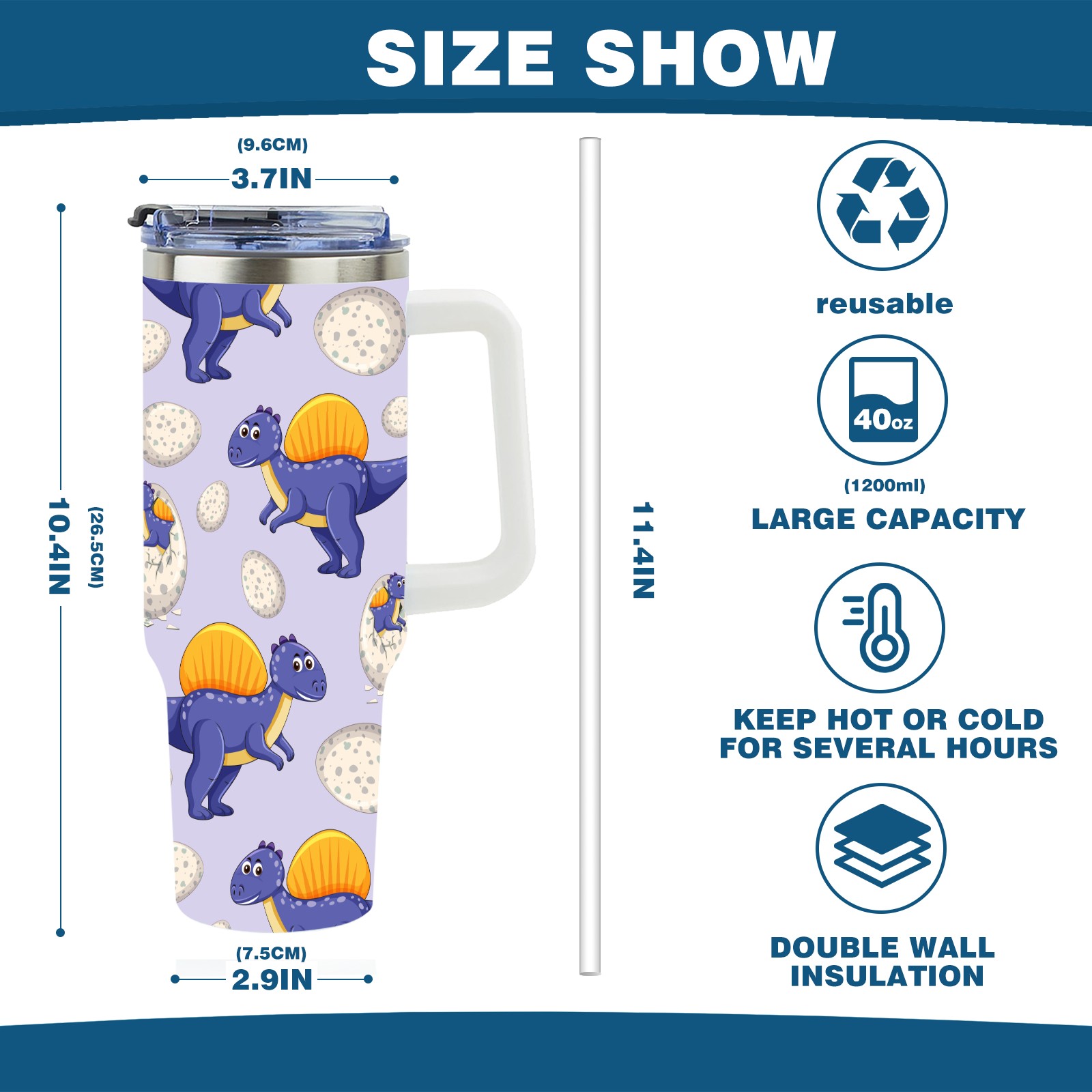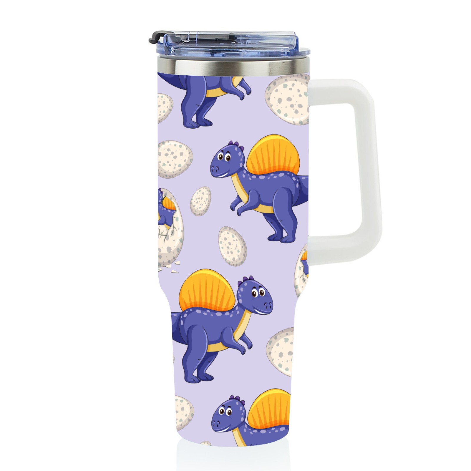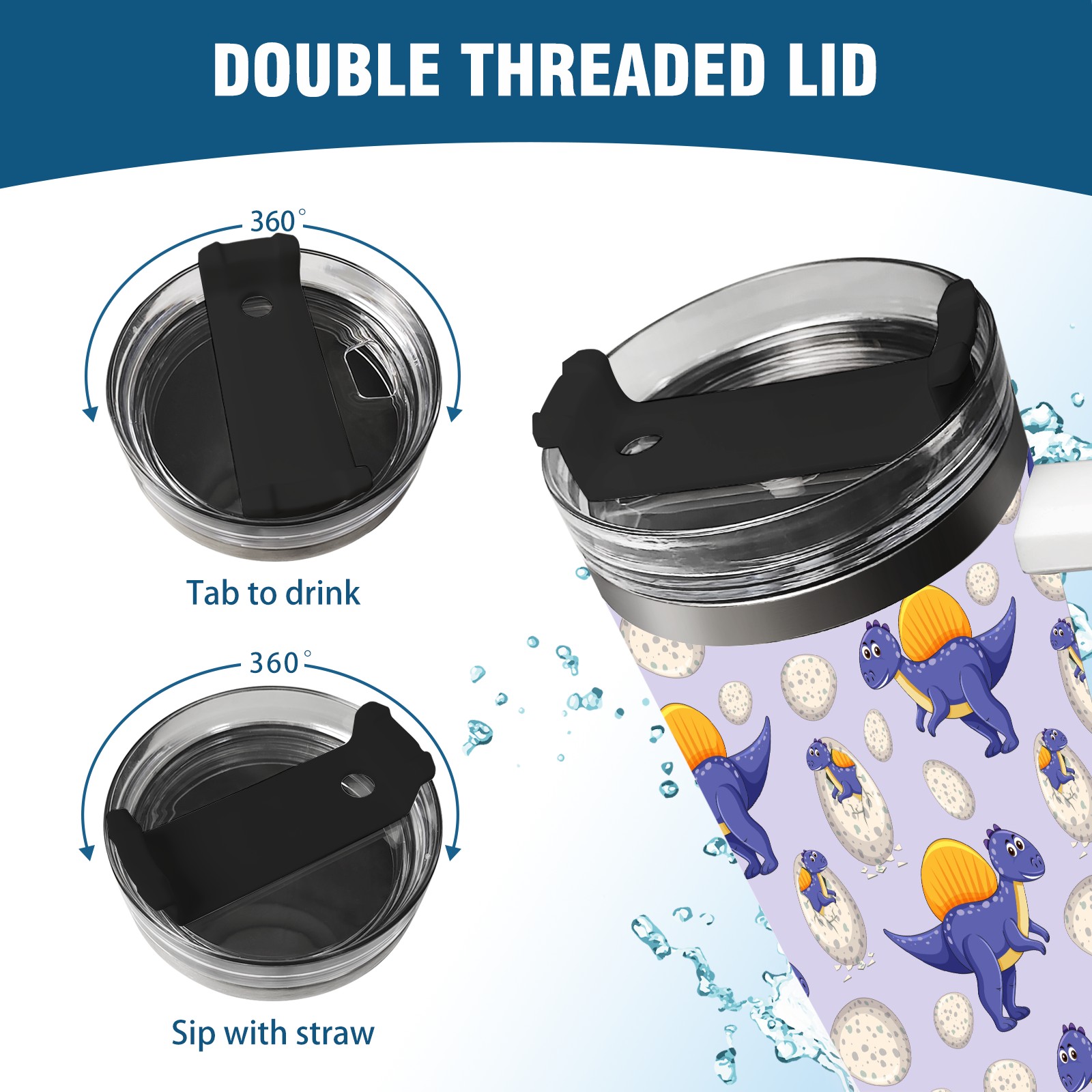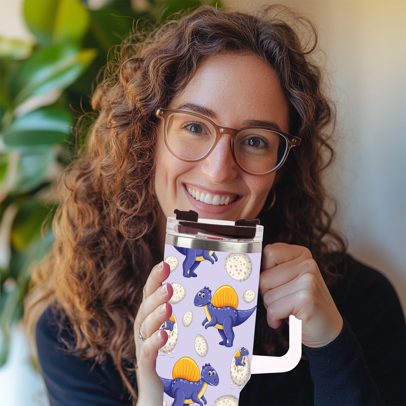 40oz Dinosaur Eggs thermos with lid and straw, leak-proof stainless steel, with handle, spill-proof bottle, convenient for travel(pink)