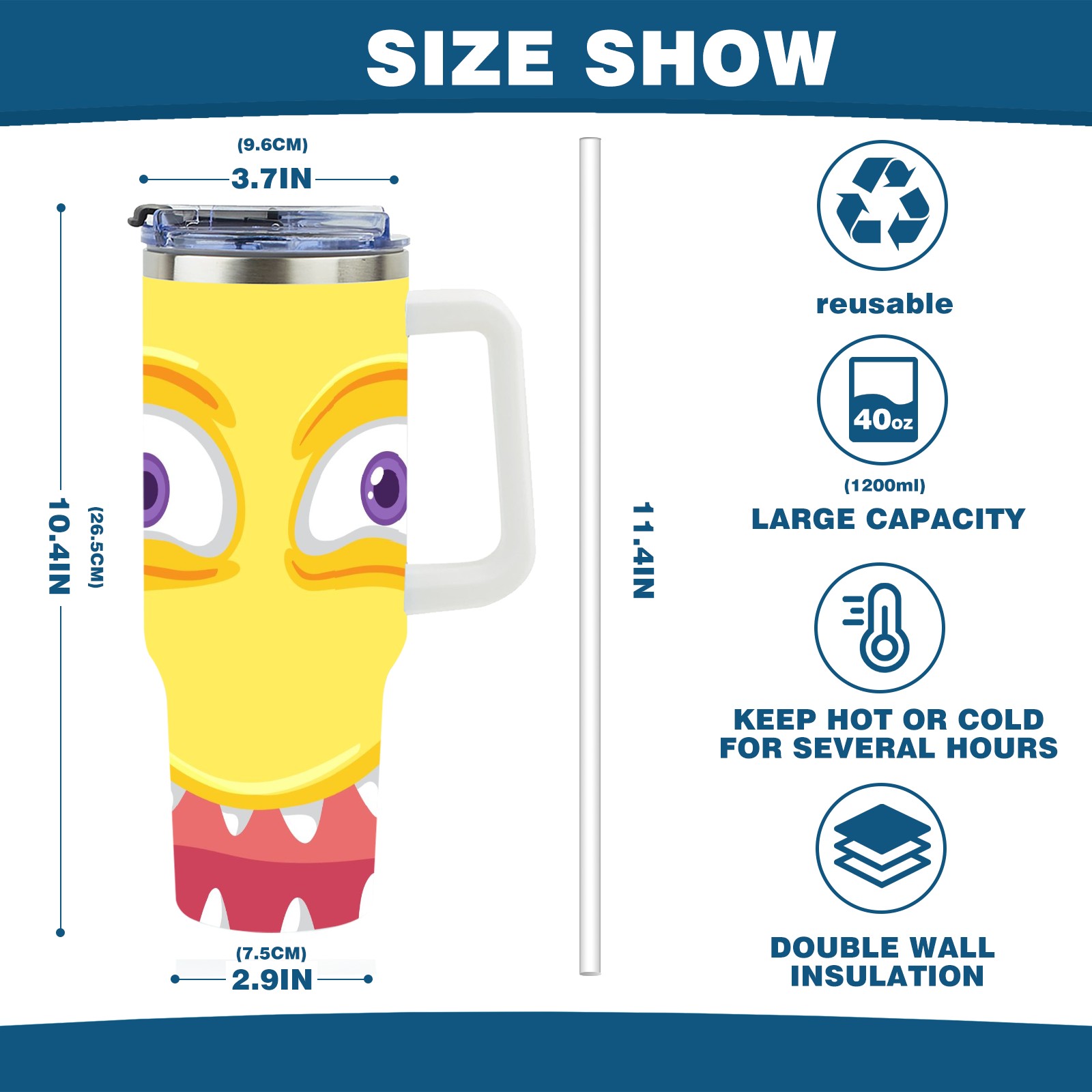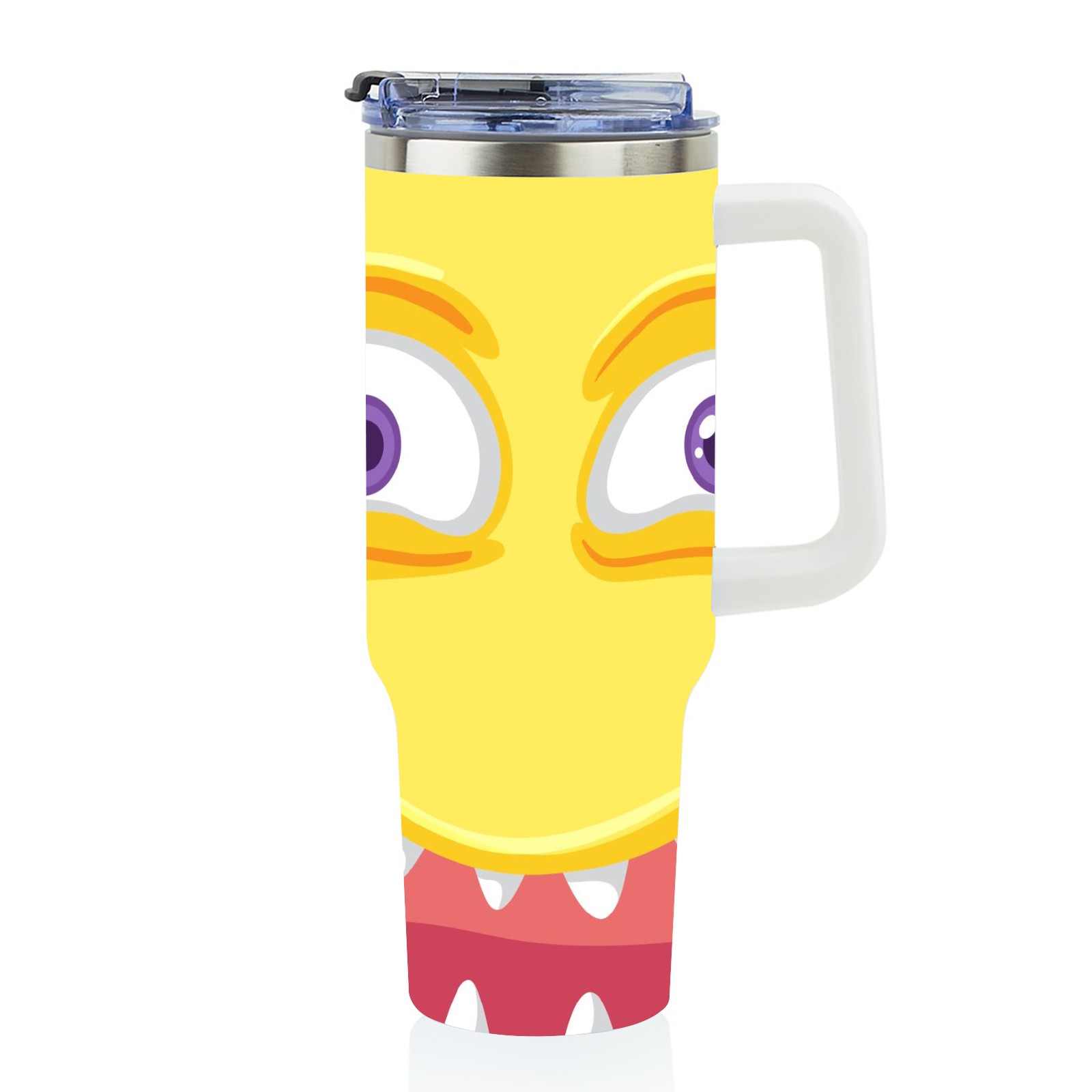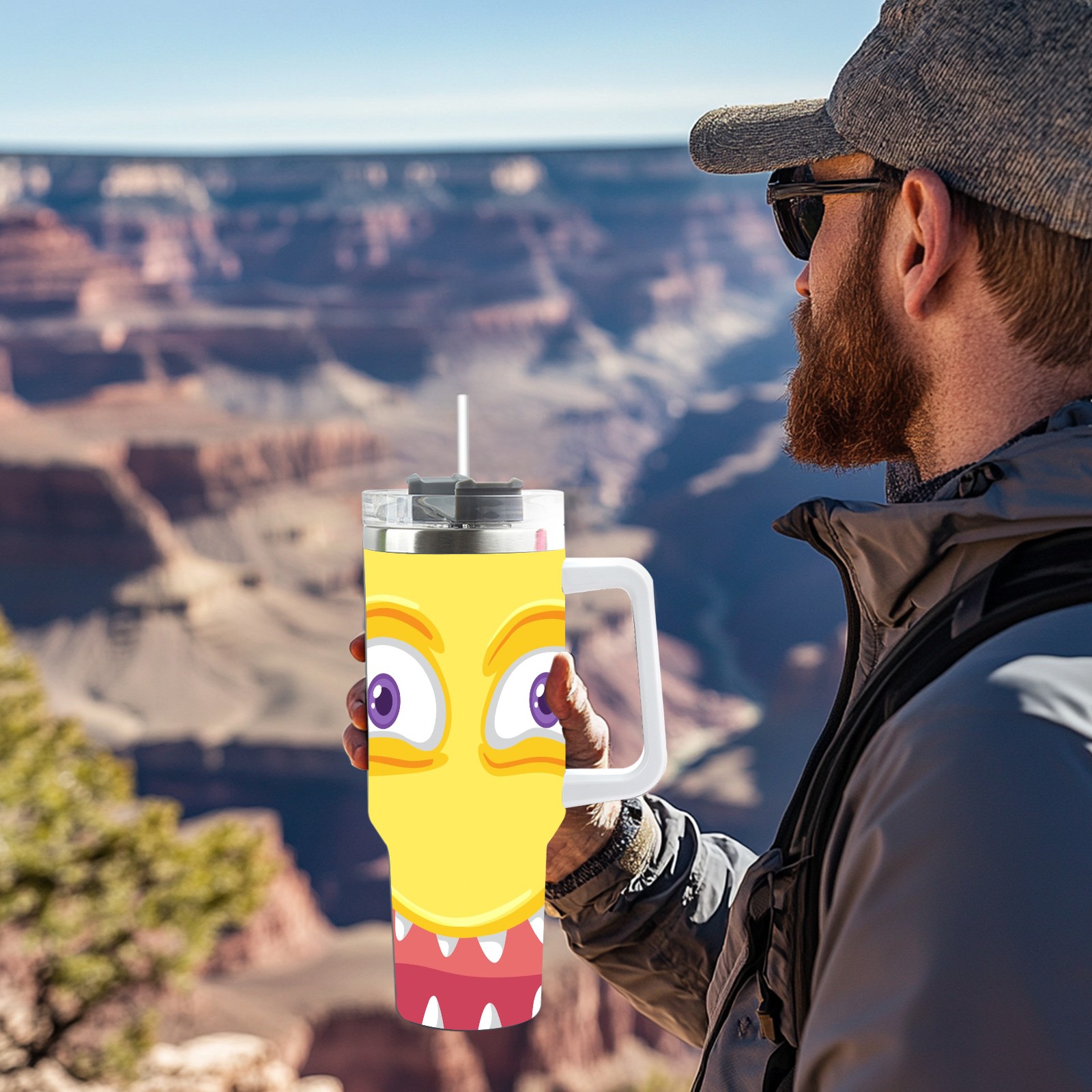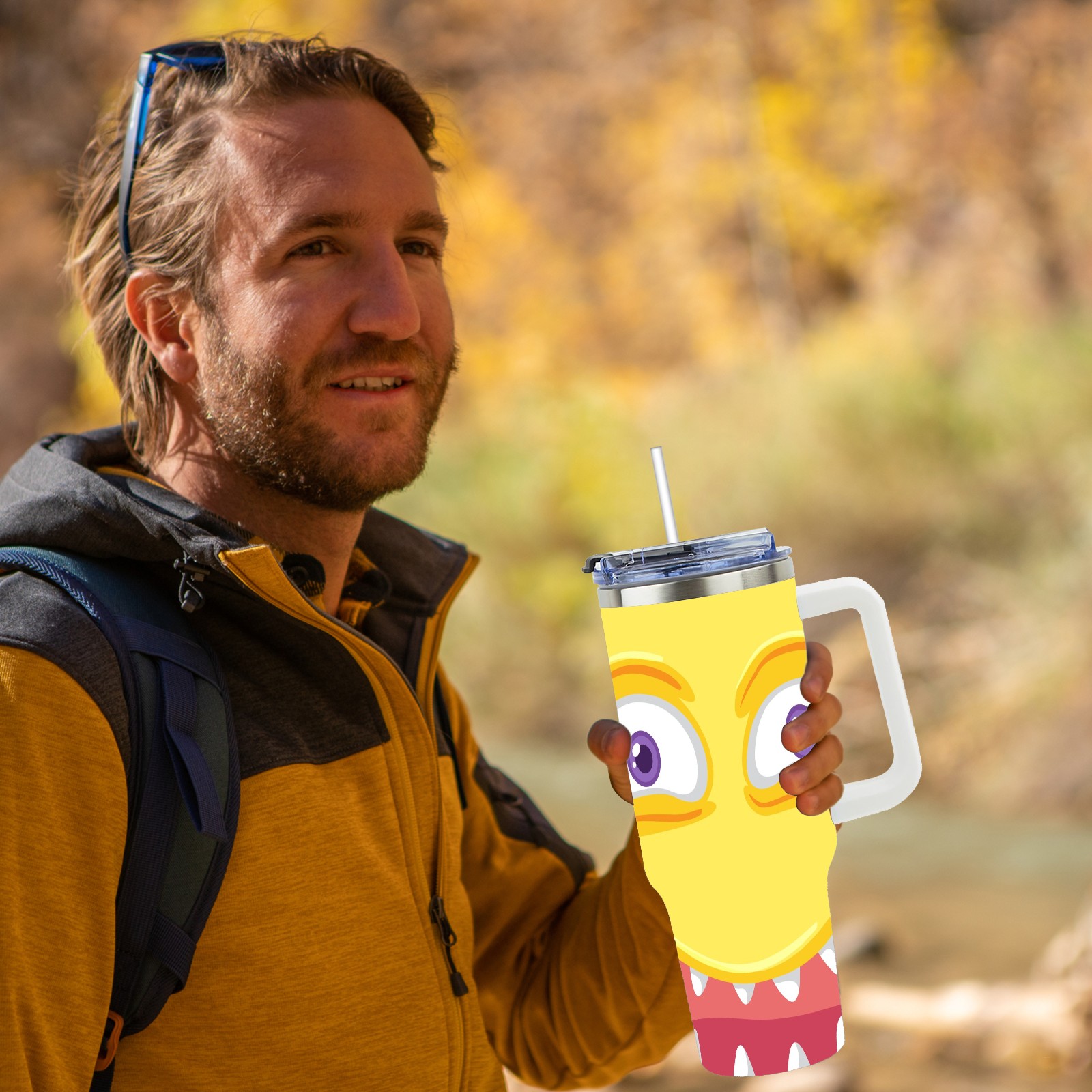 40oz Yellow Monster thermos with lid and straw, leak-proof stainless steel, with handle, spill-proof bottle, convenient for travel(pink)