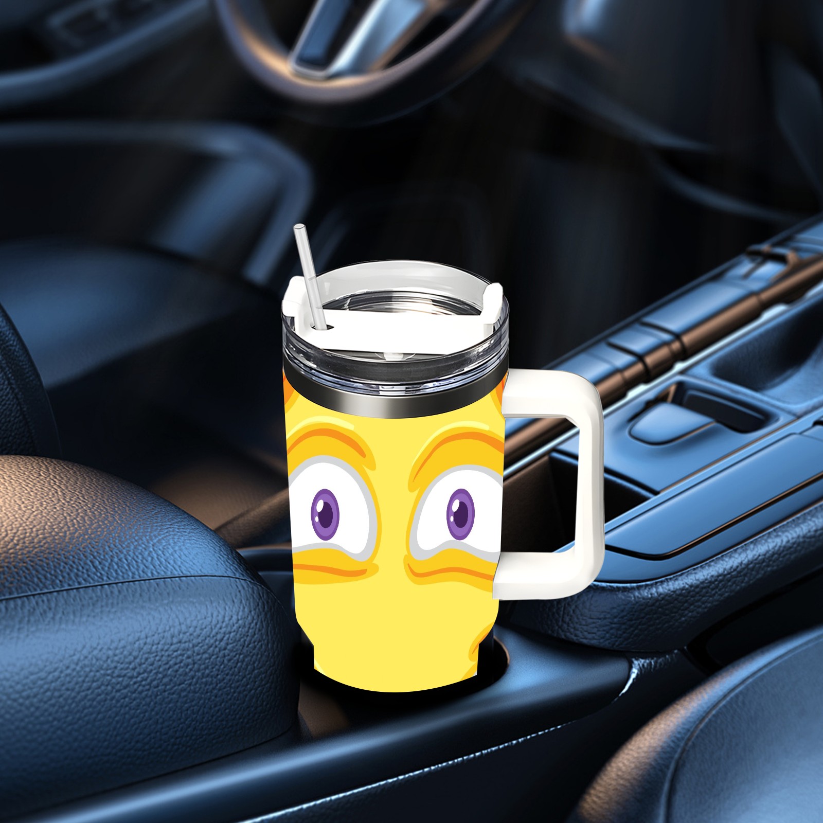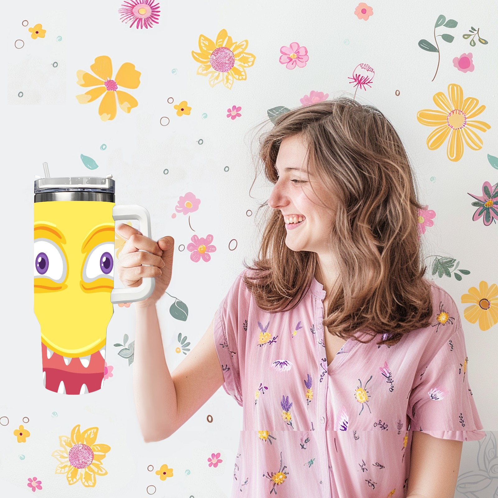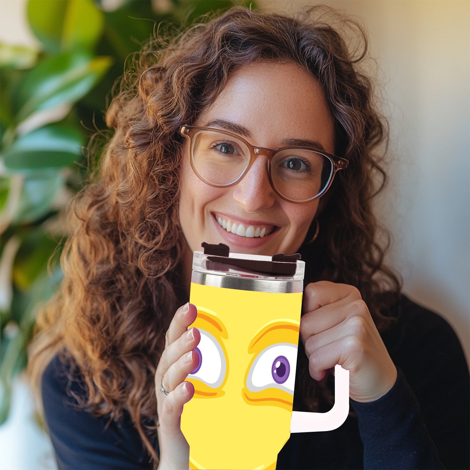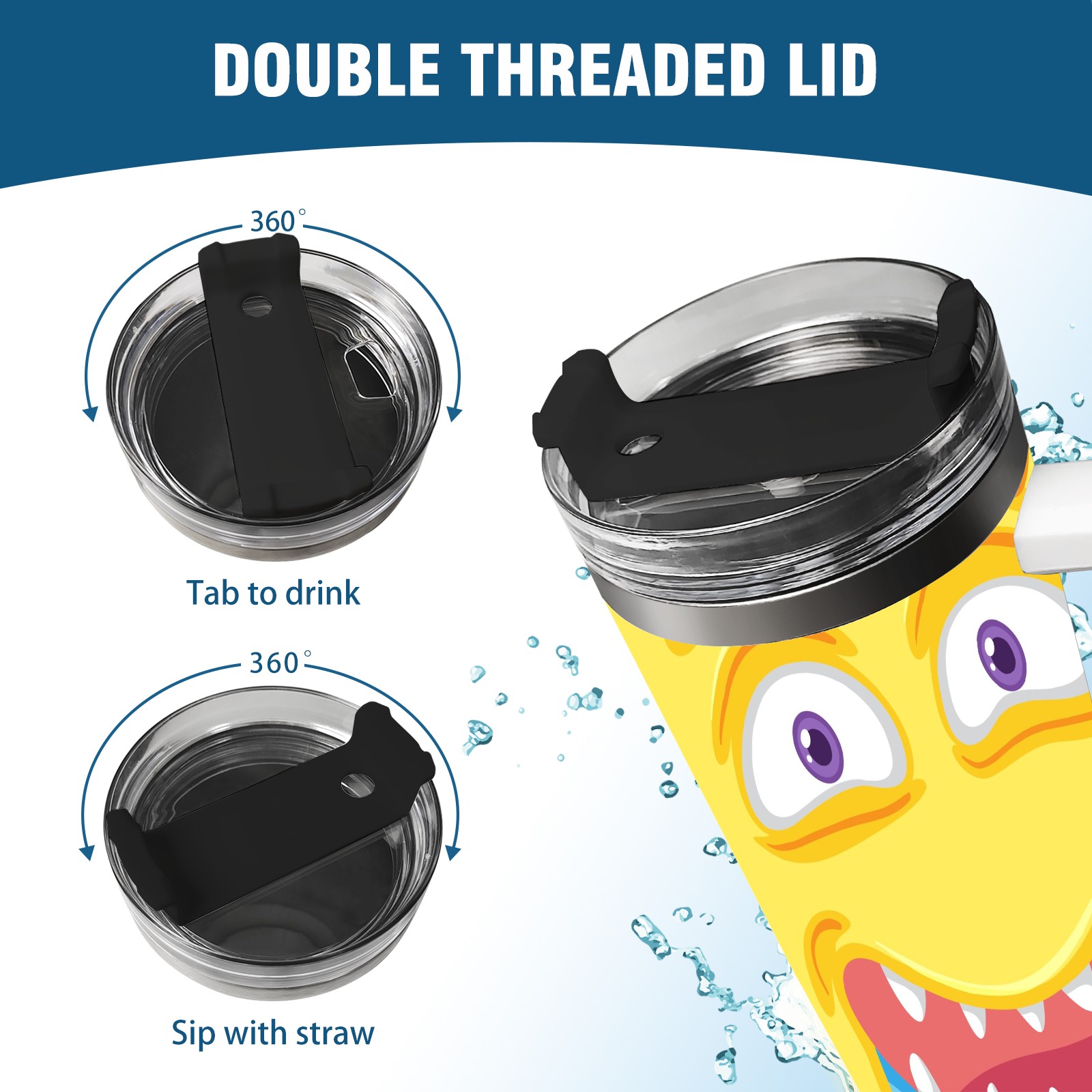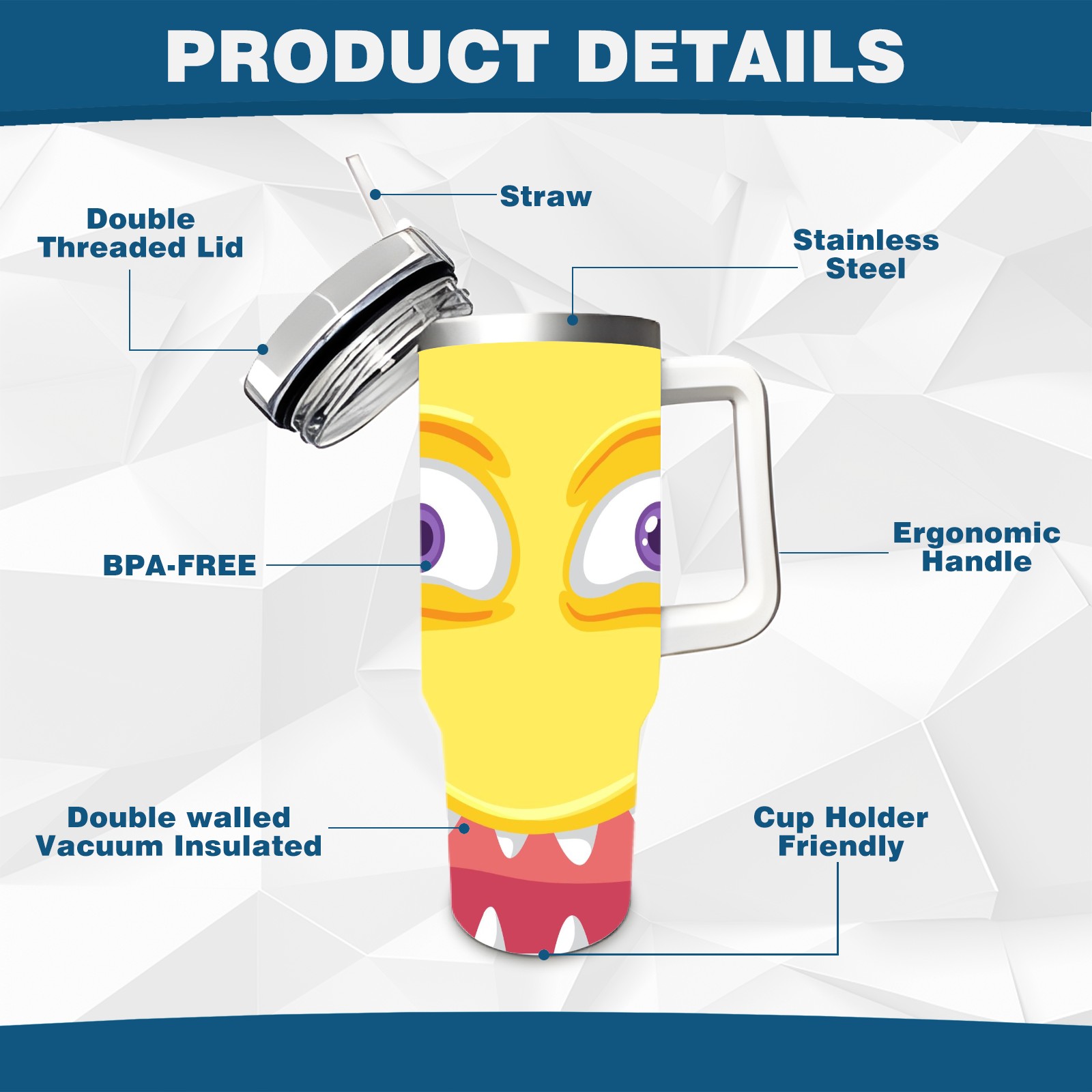 40oz Yellow Monster thermos with lid and straw, leak-proof stainless steel, with handle, spill-proof bottle, convenient for travel(pink)
