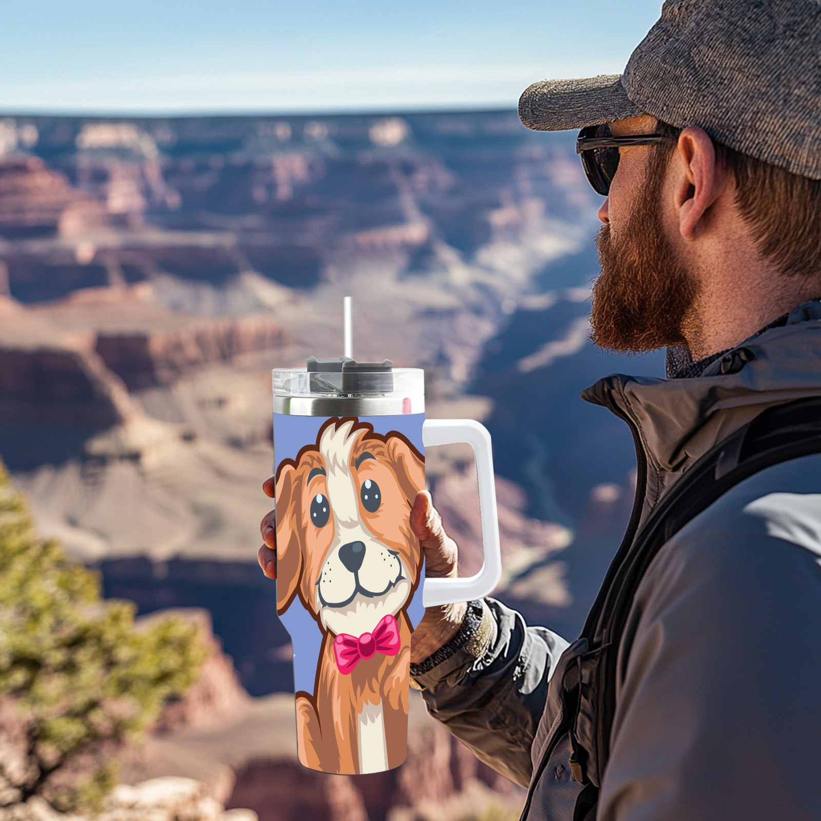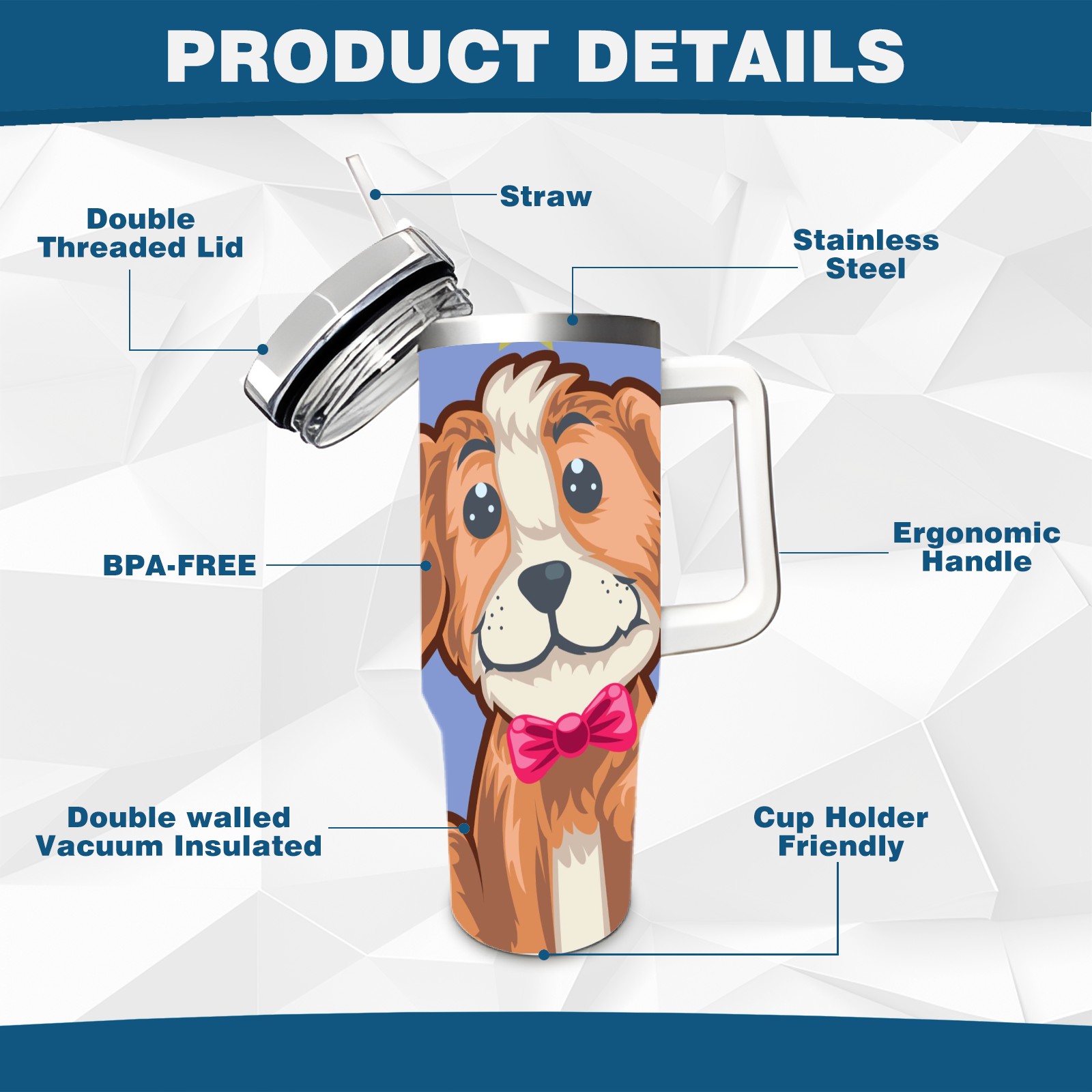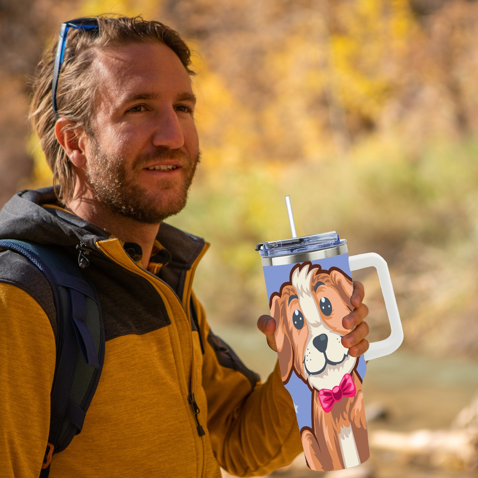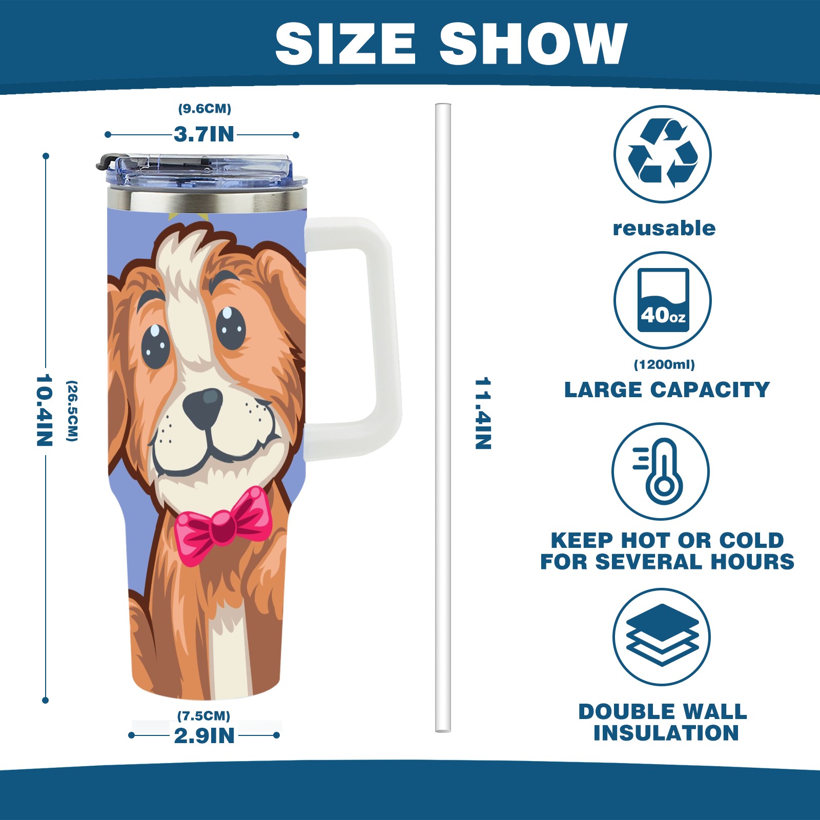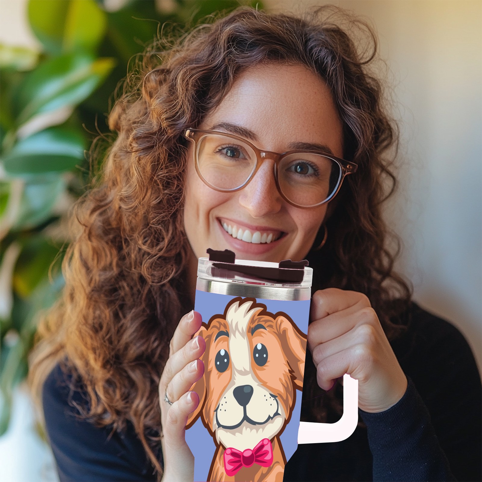 40oz Animal Party thermos with lid and straw, leak-proof stainless steel, with handle, spill-proof bottle, convenient for travel(pink)