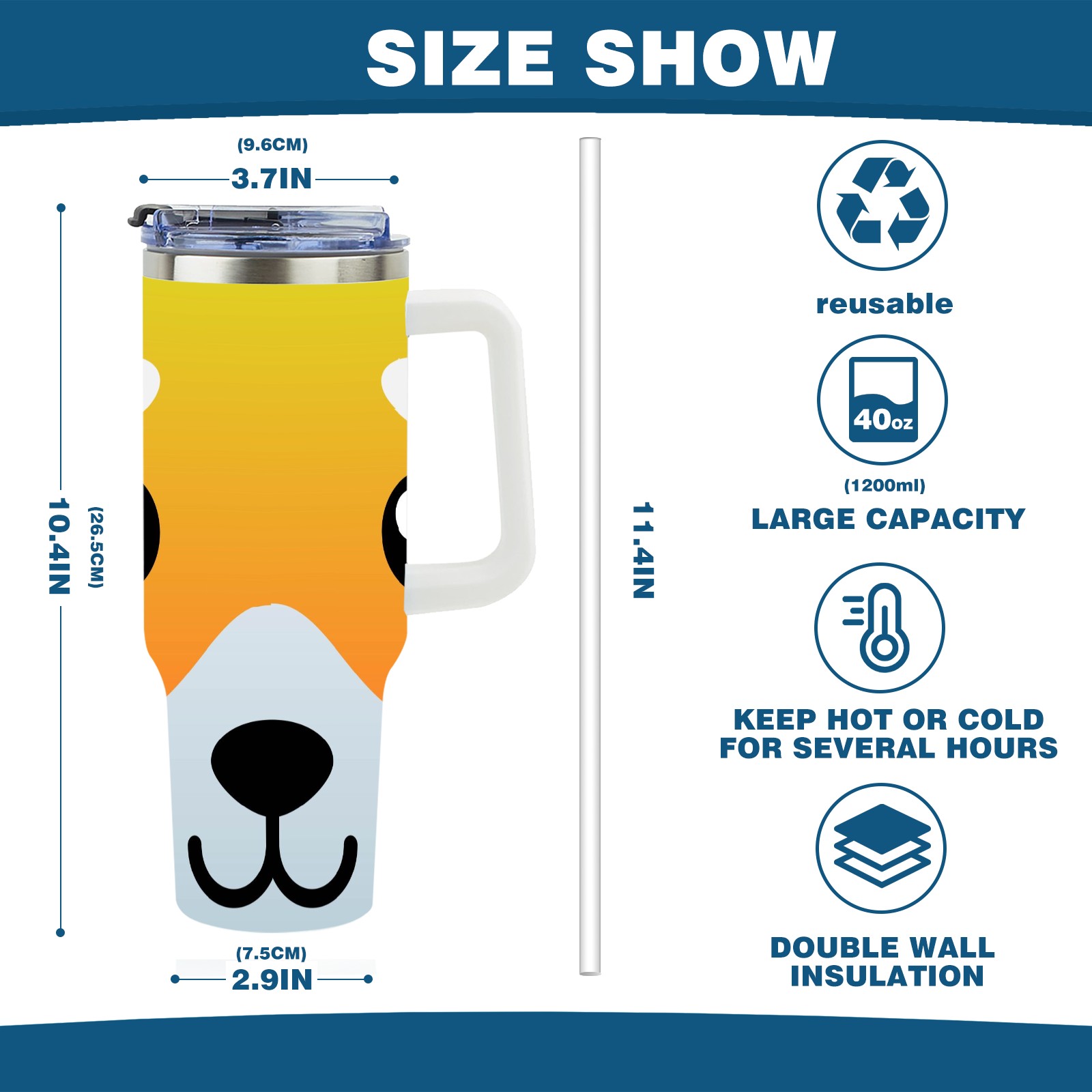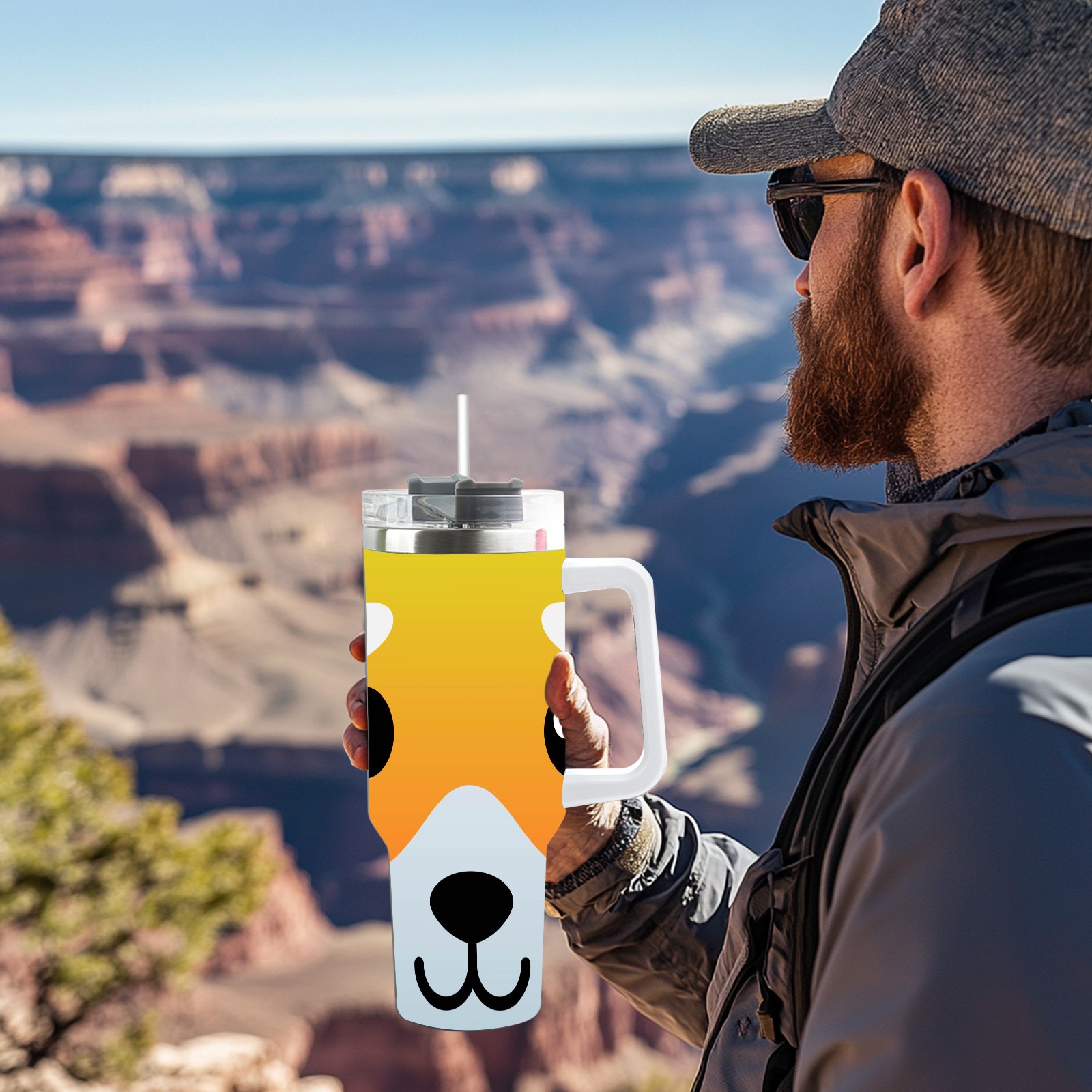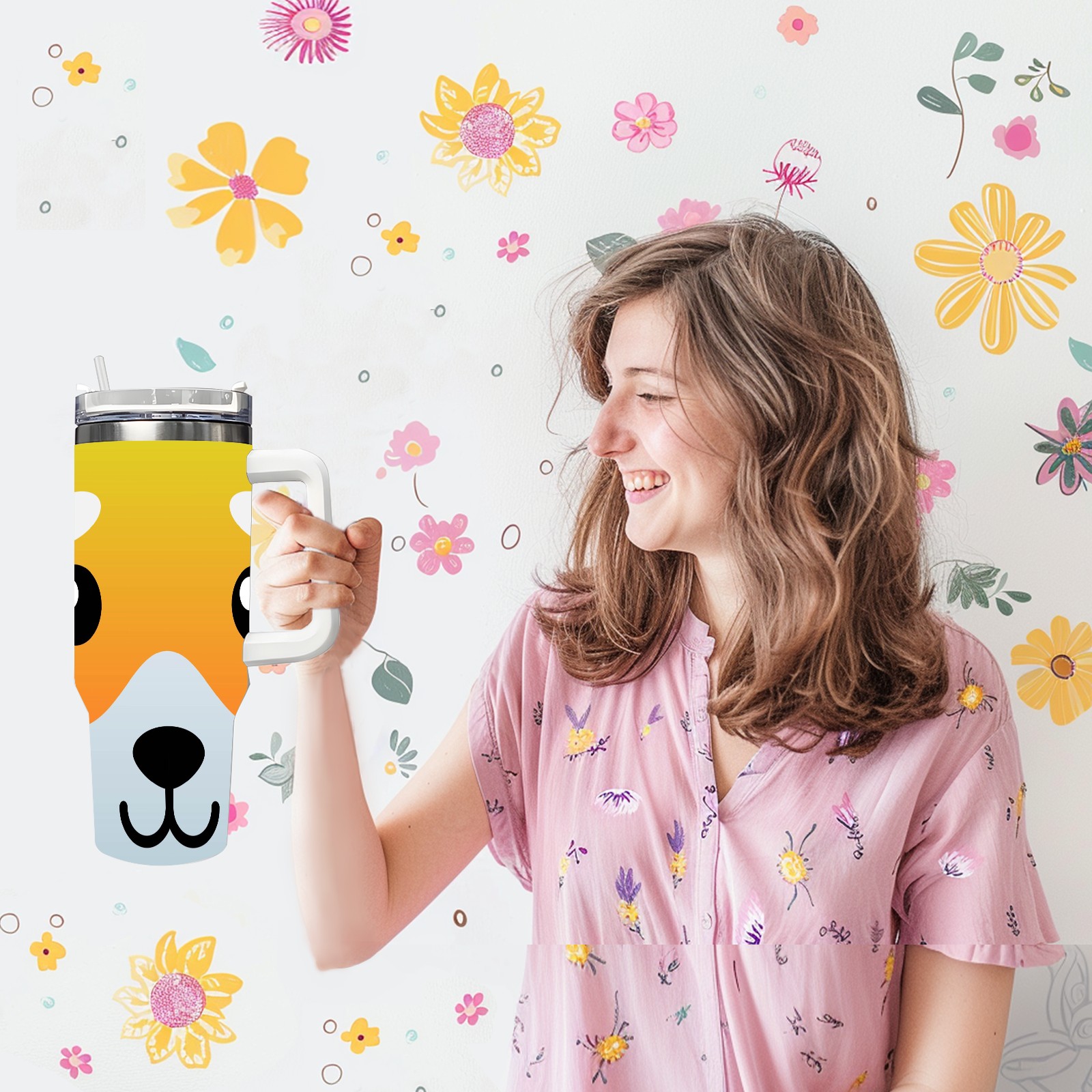 40oz Dog Faces thermos with lid and straw, leak-proof stainless steel, with handle, spill-proof bottle, convenient for travel(pink)