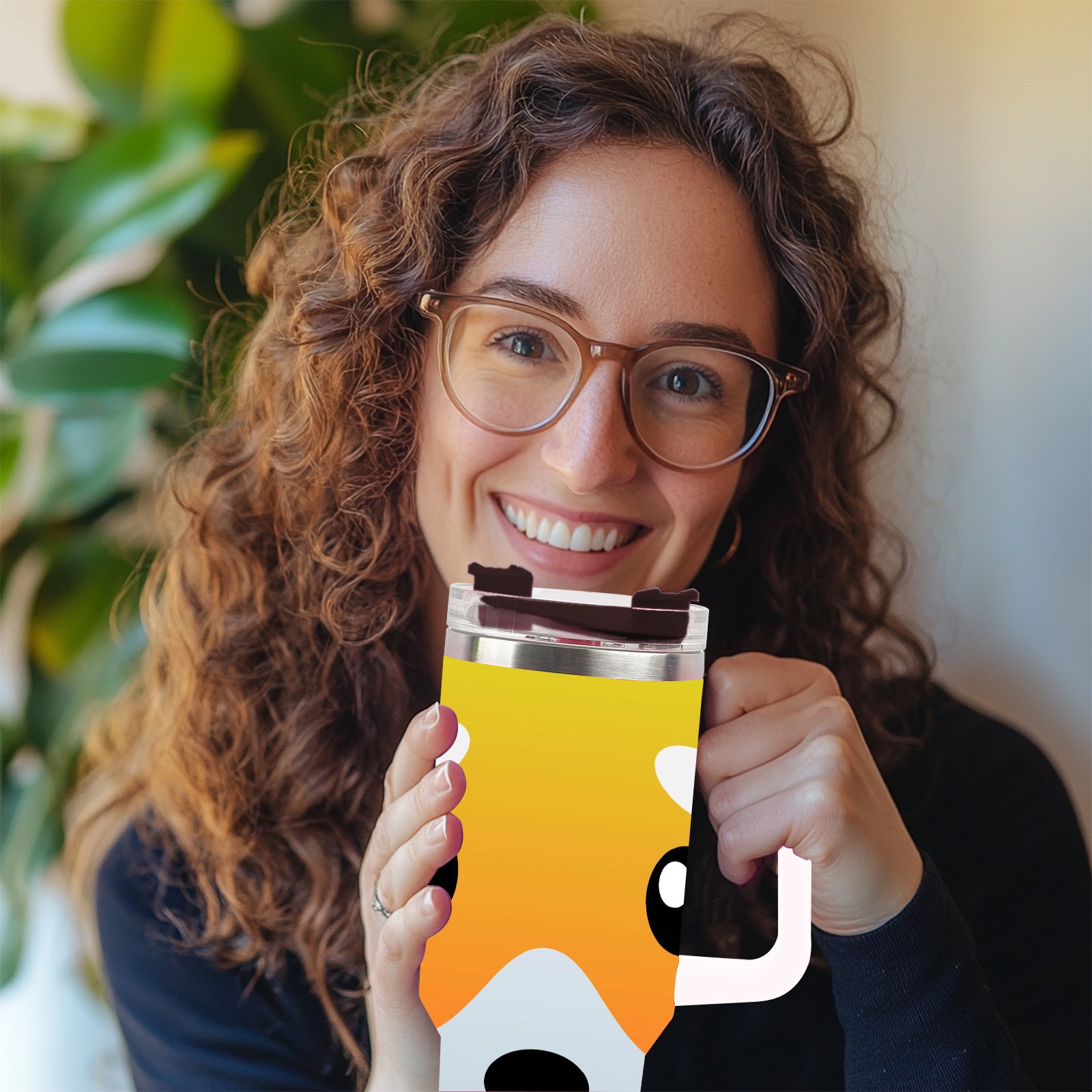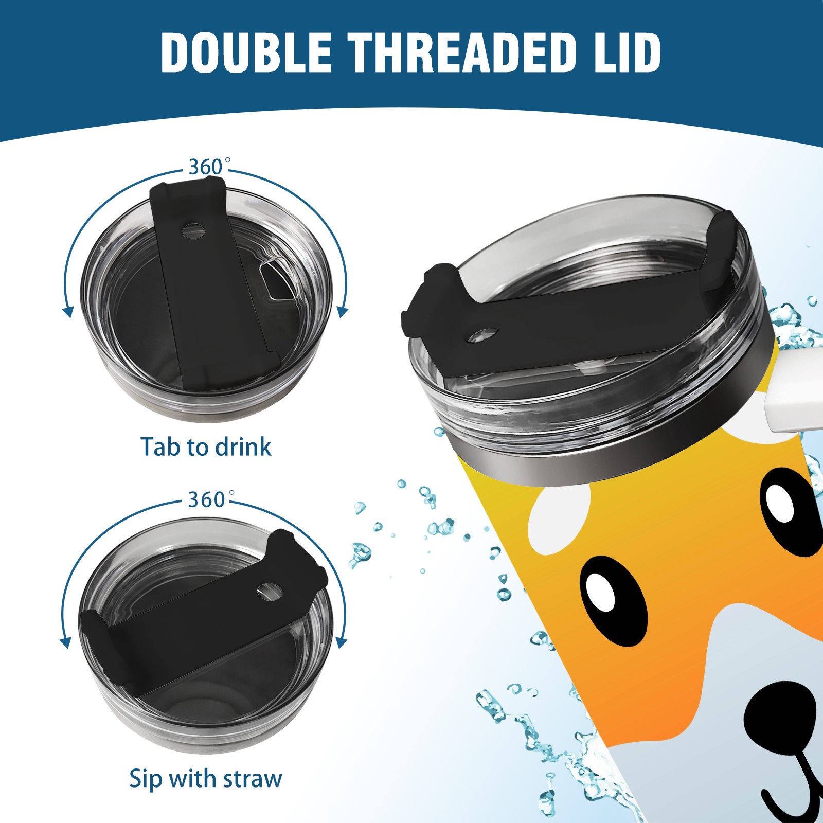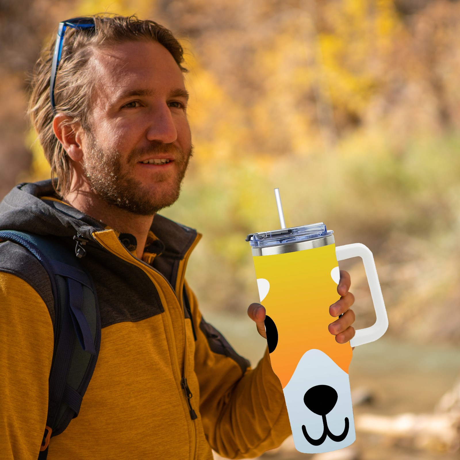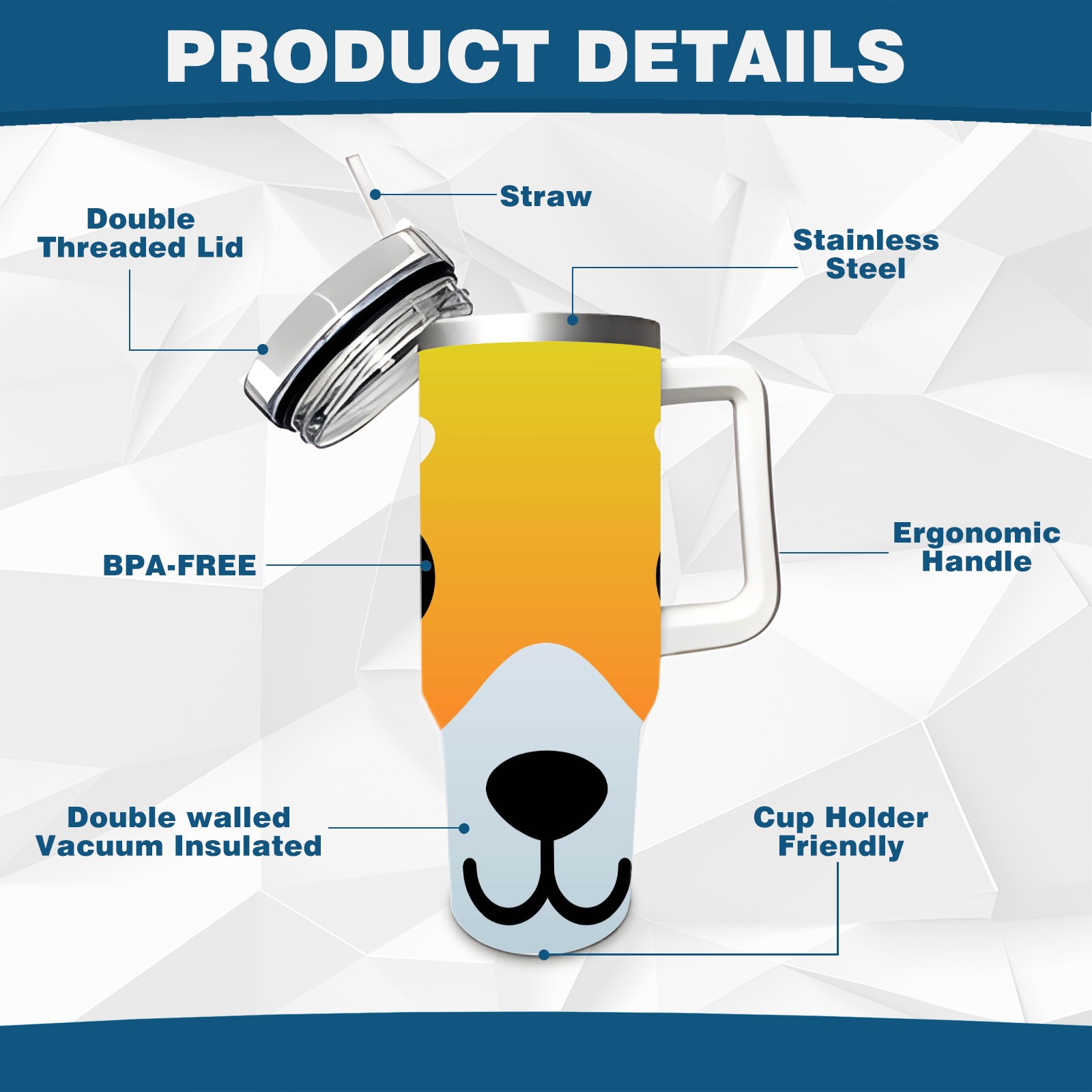 40oz Dog Faces thermos with lid and straw, leak-proof stainless steel, with handle, spill-proof bottle, convenient for travel(pink)