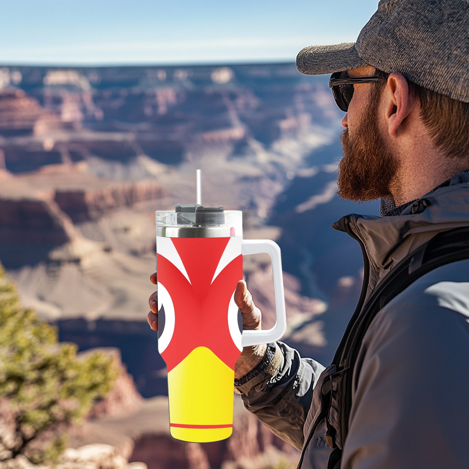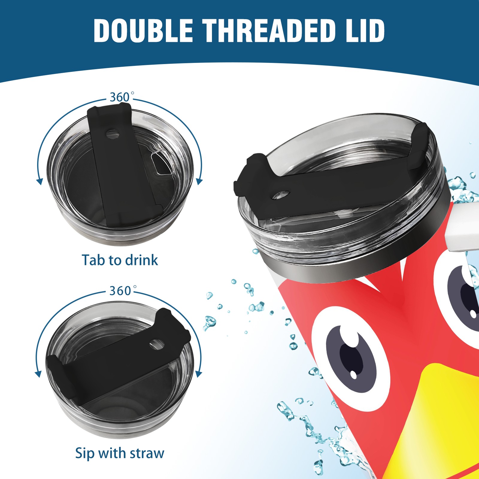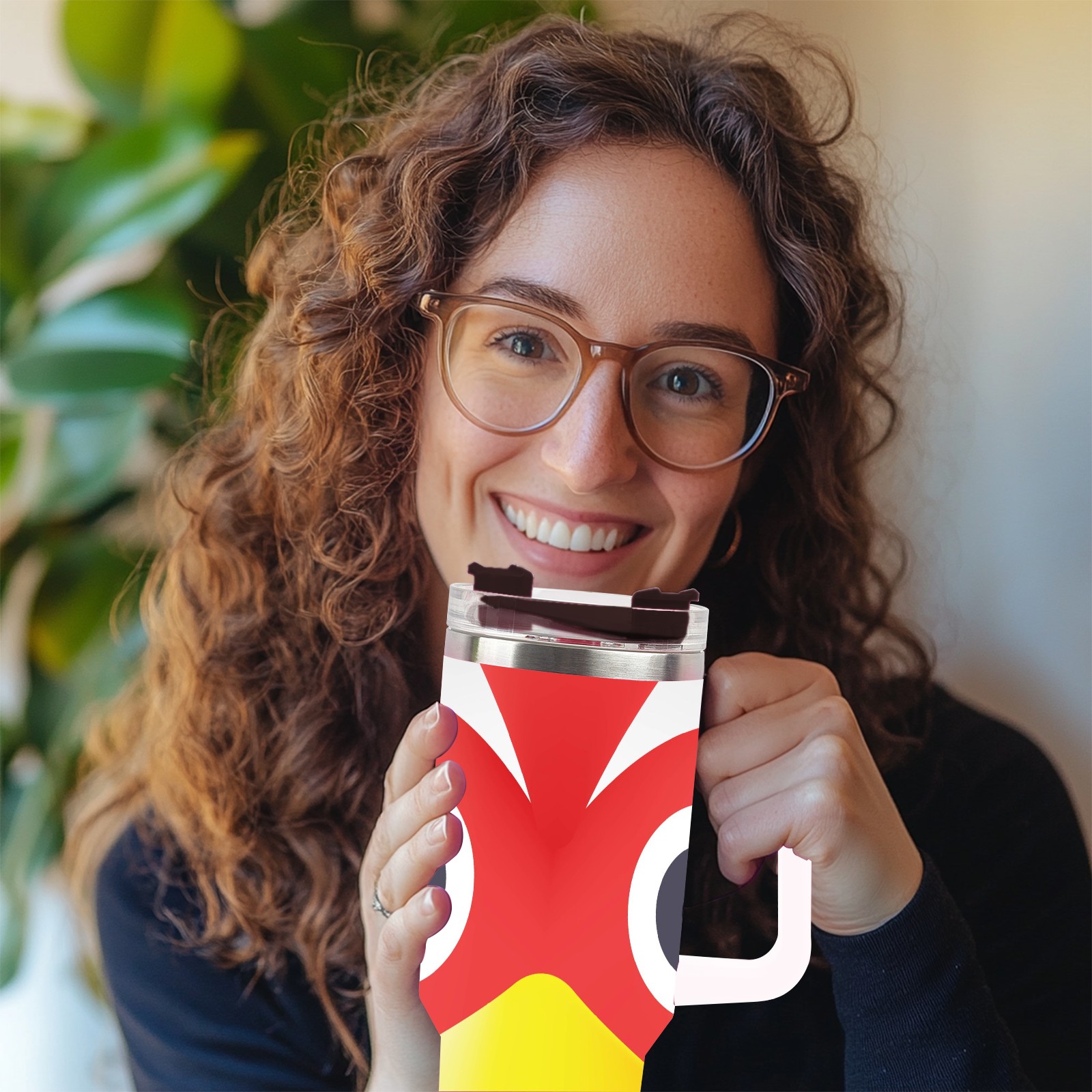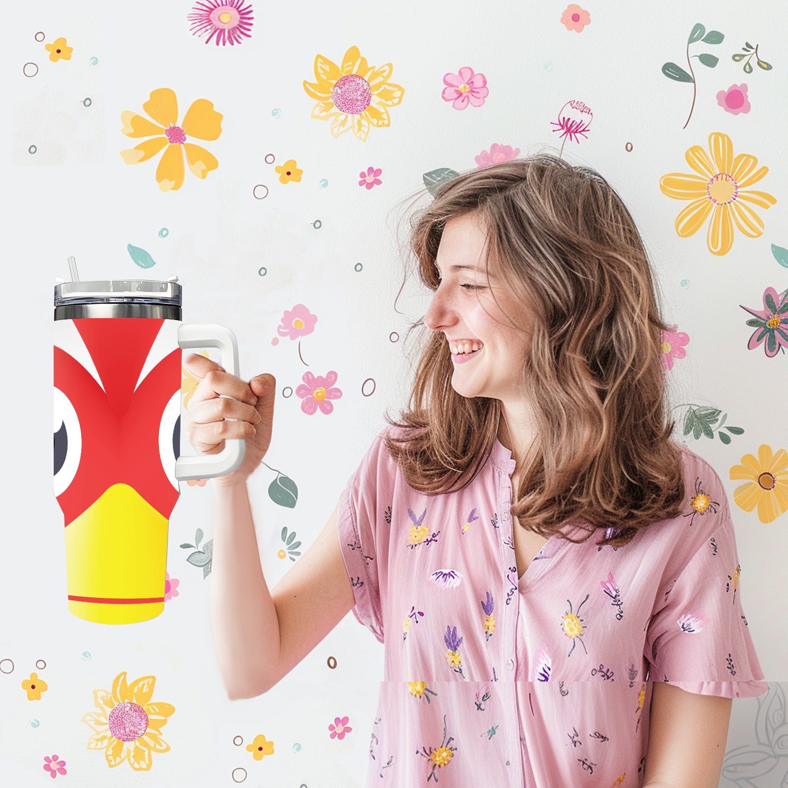 40oz Chicken Face thermos with lid and straw, leak-proof stainless steel, with handle, spill-proof bottle, convenient for travel(pink)
