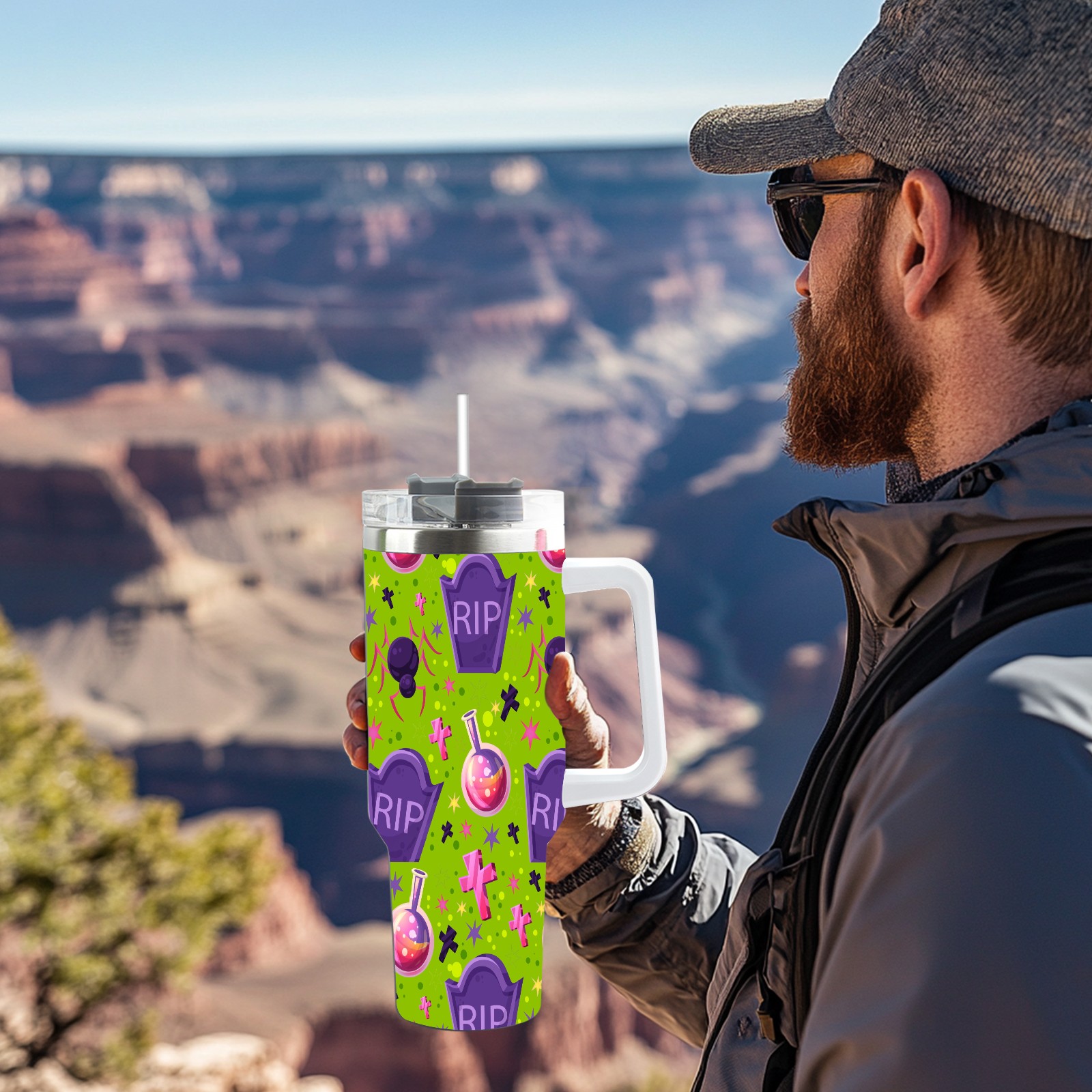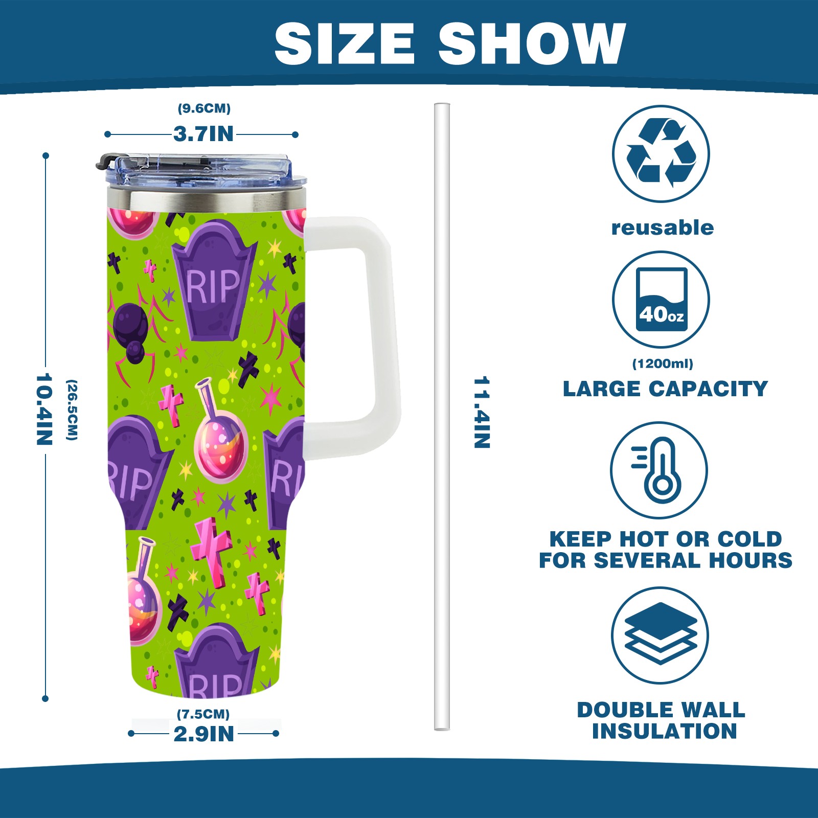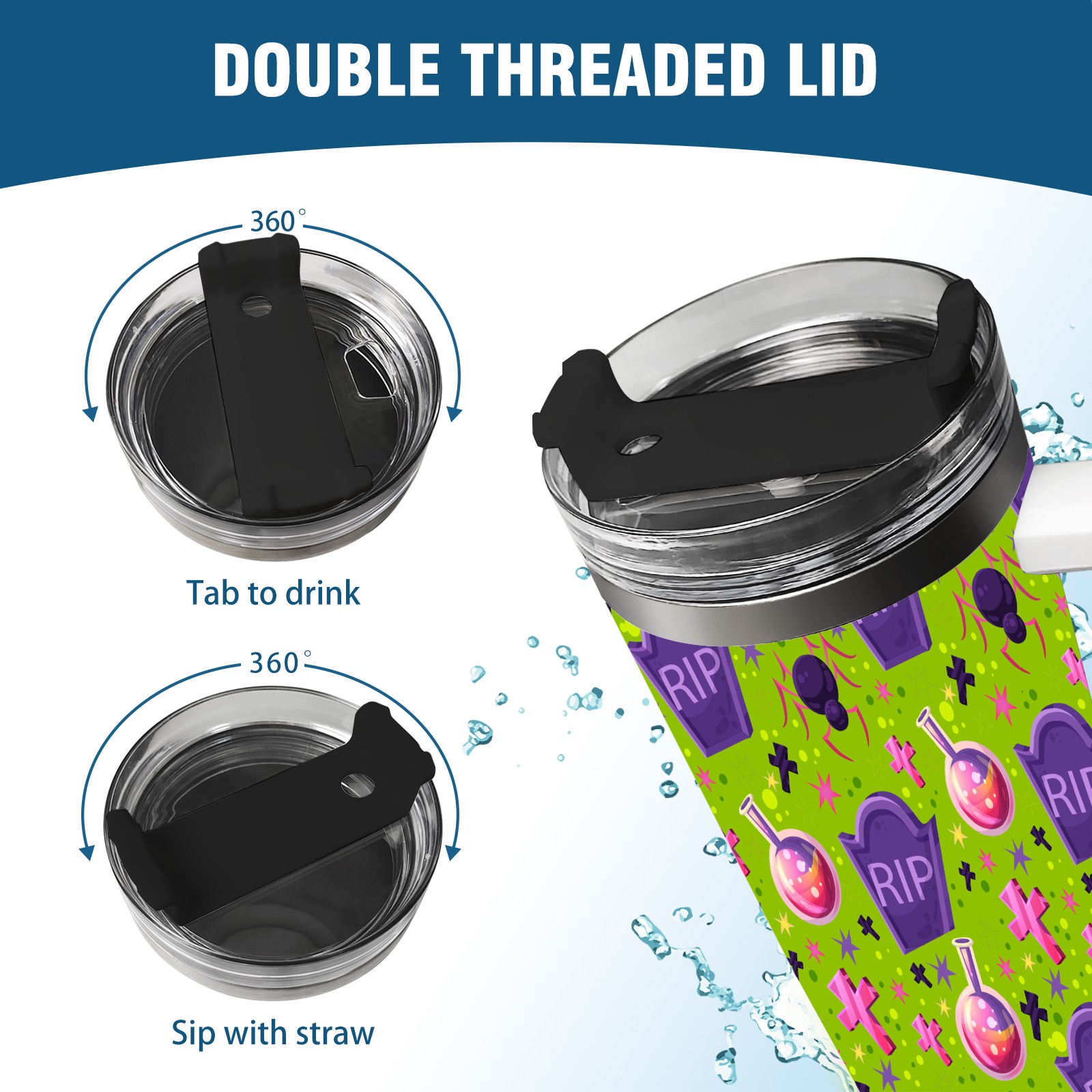 40oz Poison Rip thermos with lid and straw, leak-proof stainless steel, with handle, spill-proof bottle, convenient for travel(pink)