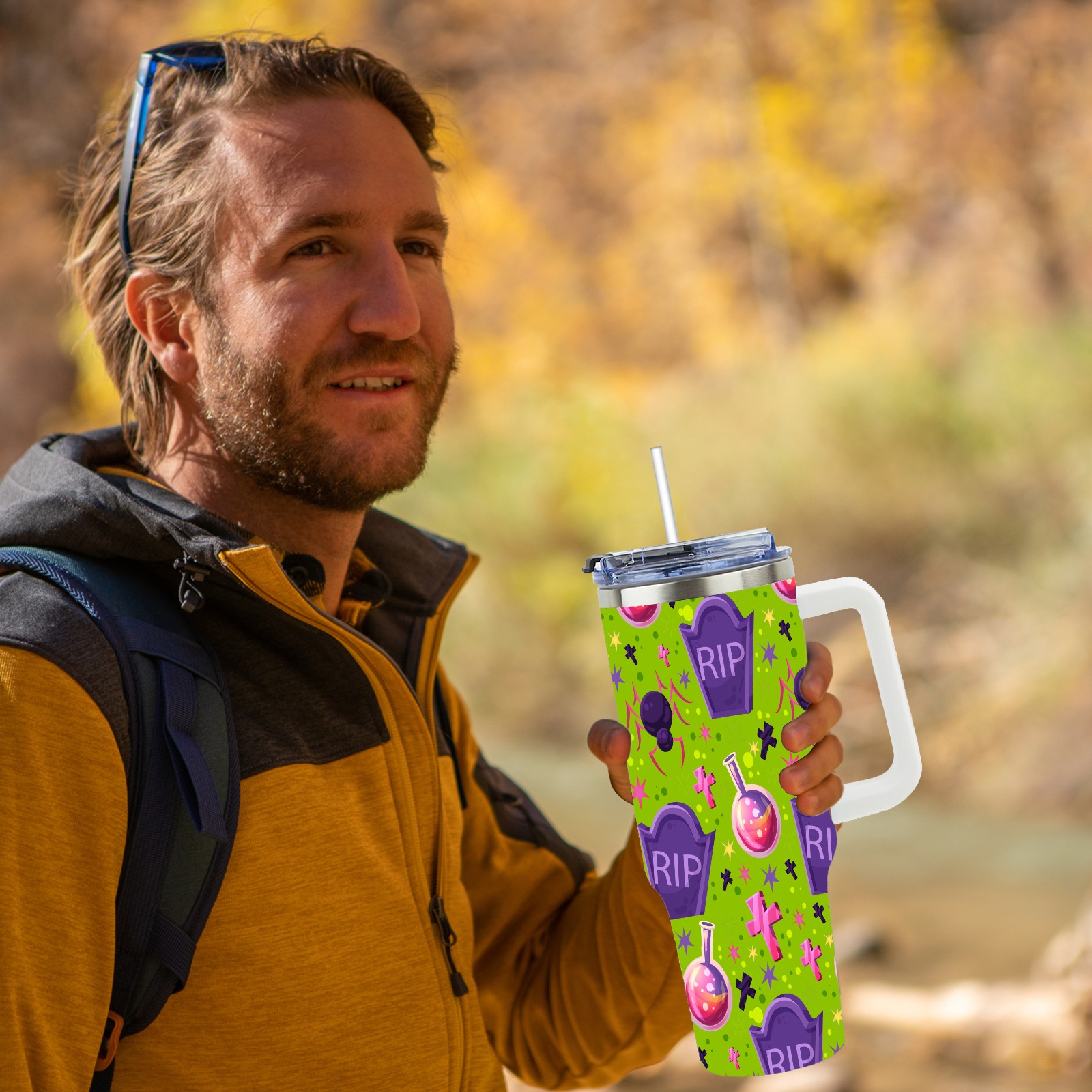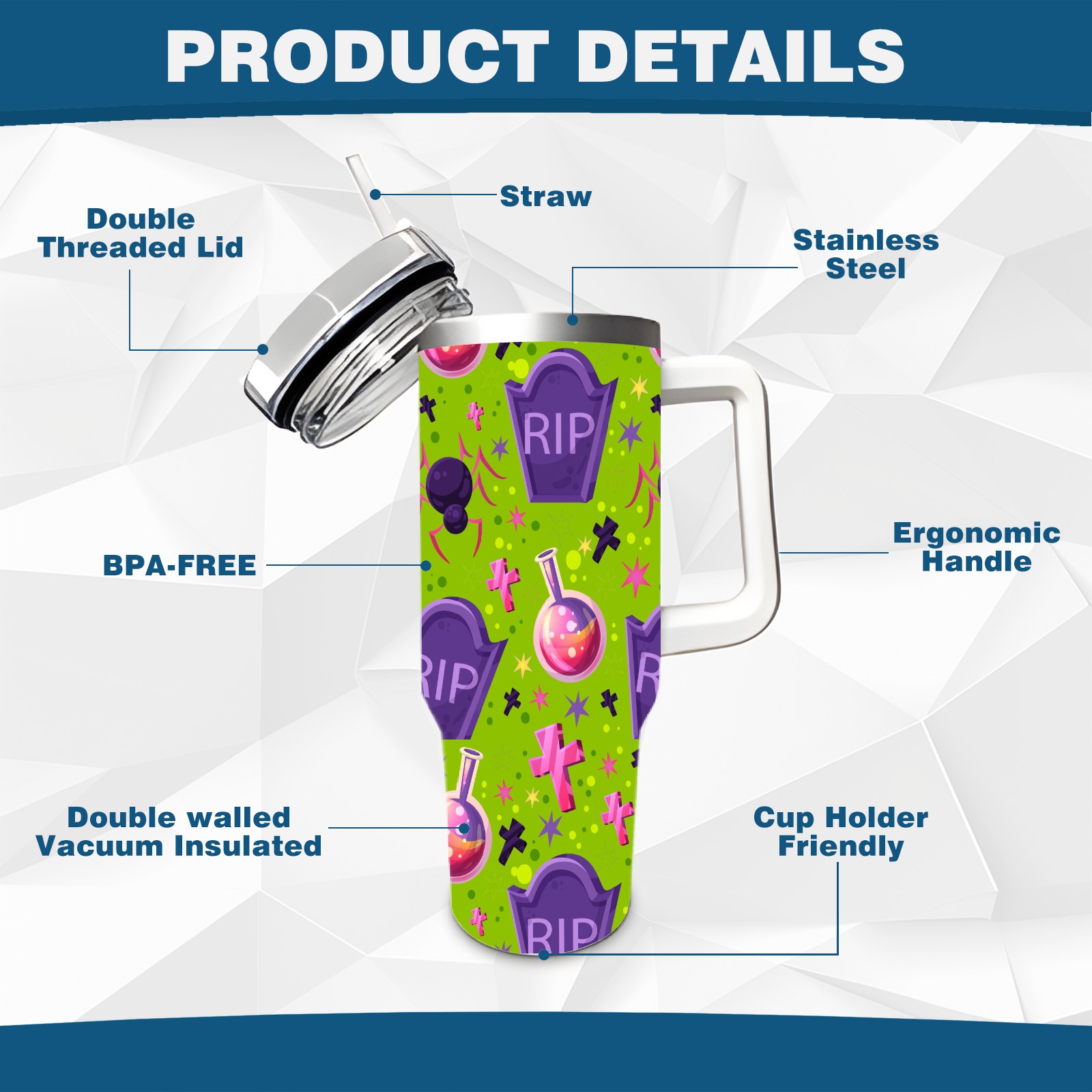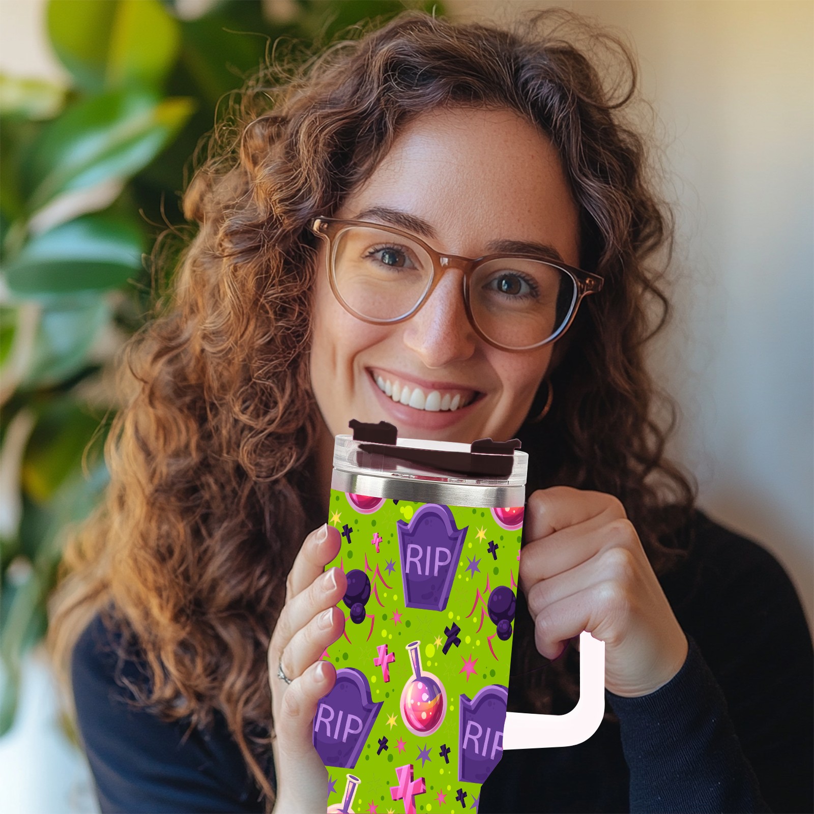 40oz Poison Rip thermos with lid and straw, leak-proof stainless steel, with handle, spill-proof bottle, convenient for travel(pink)
