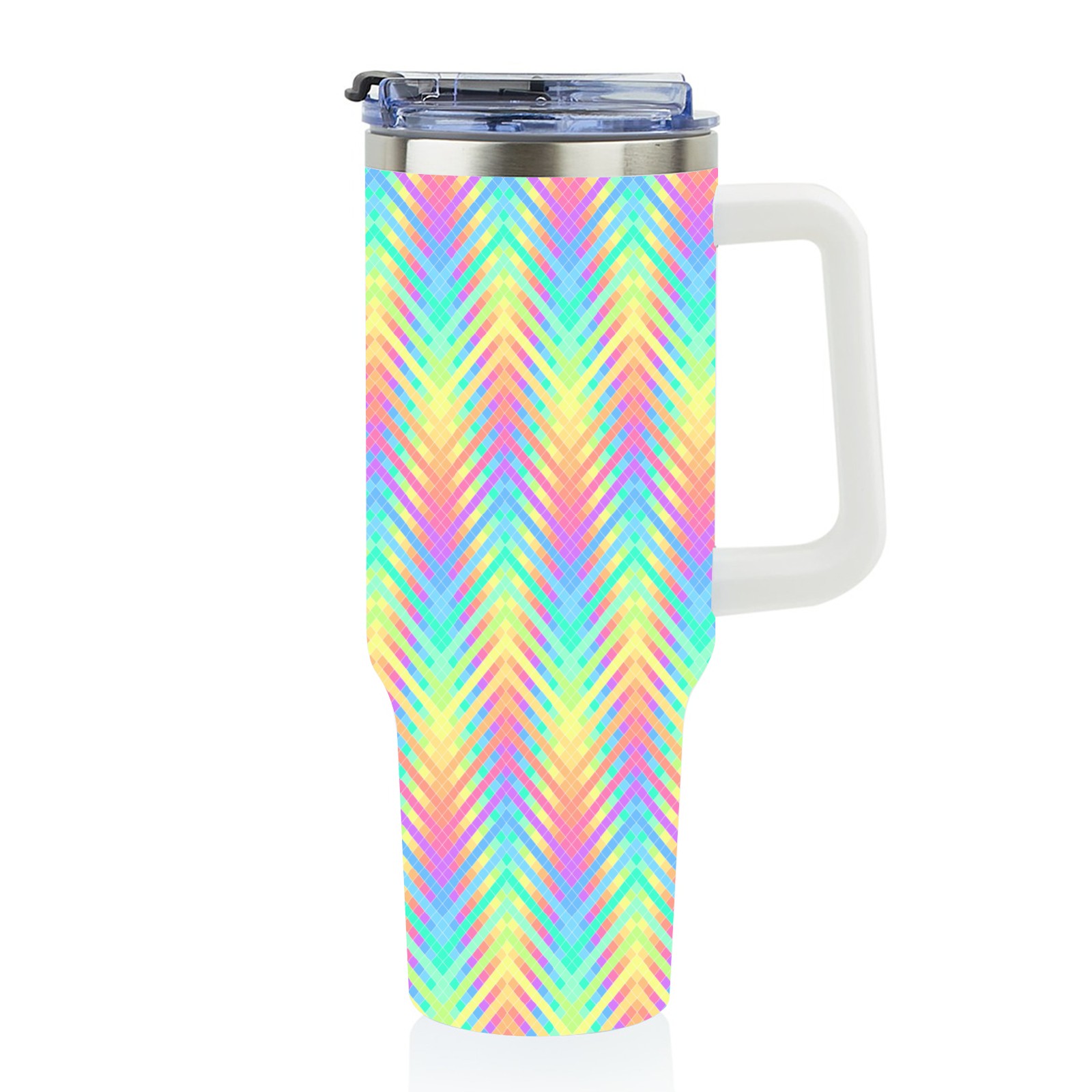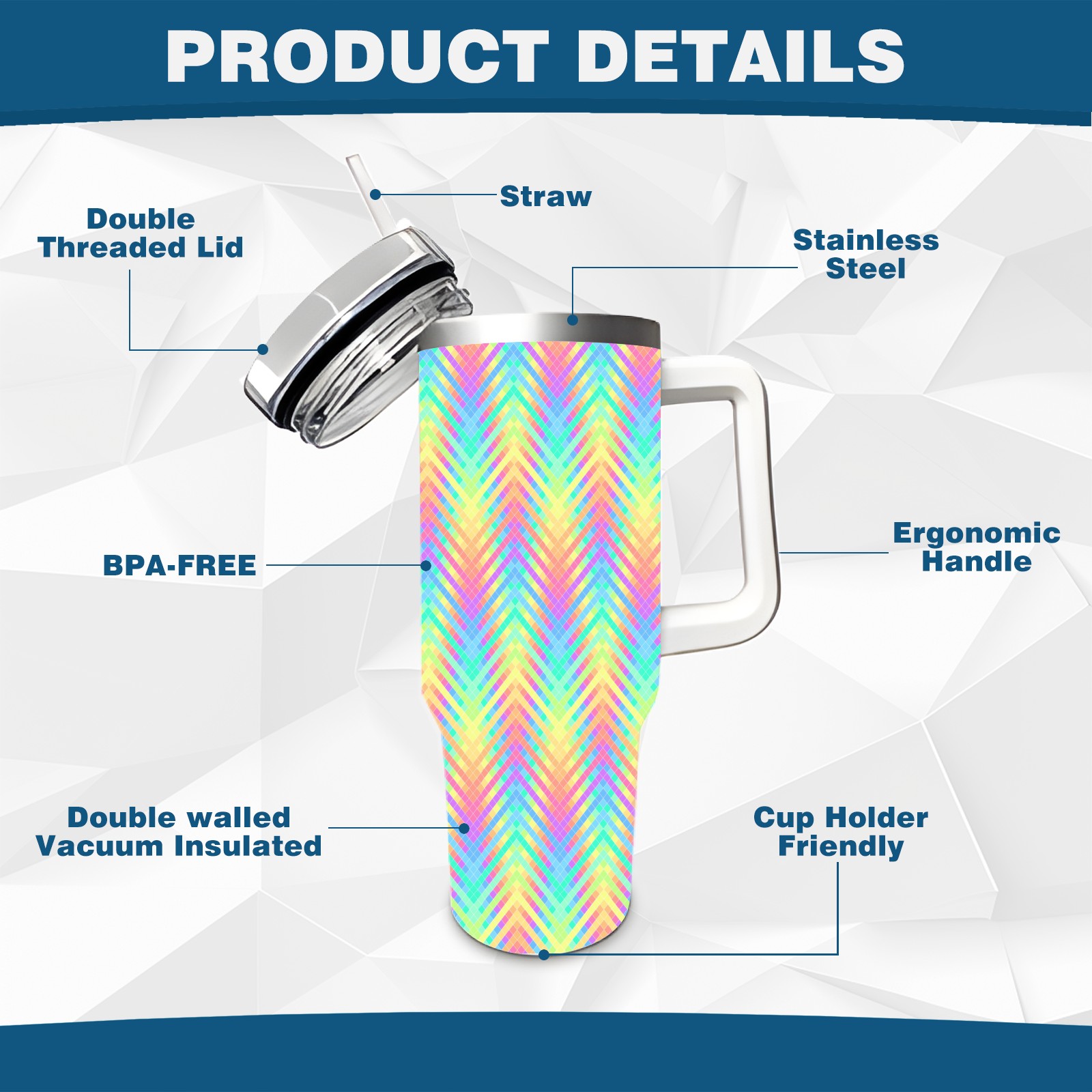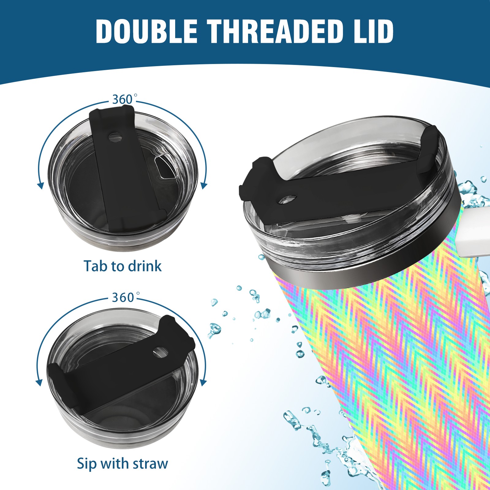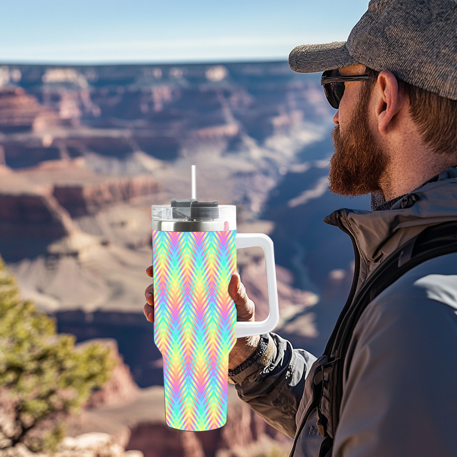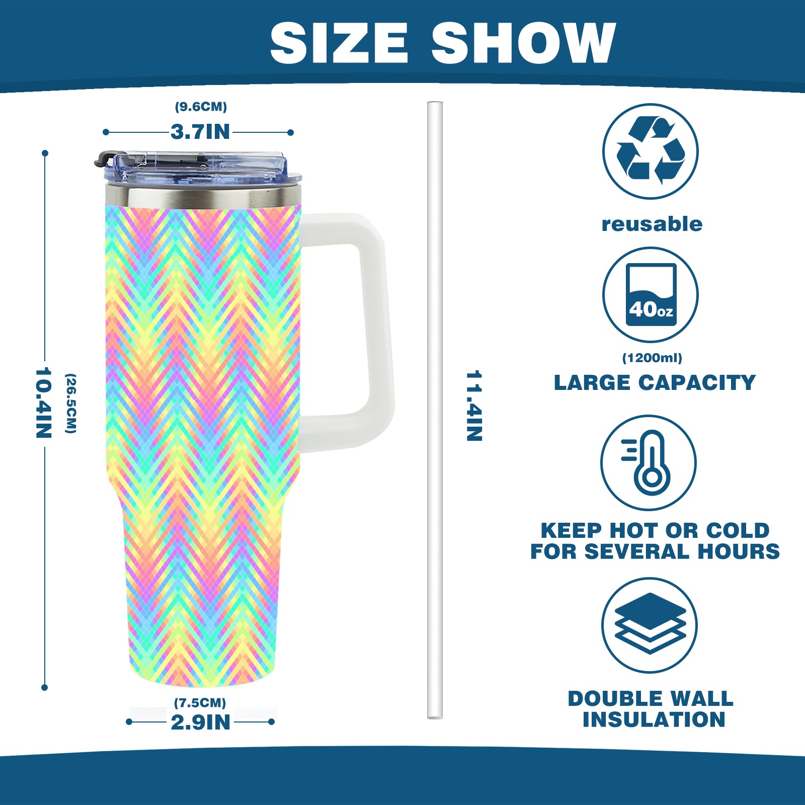 40oz Psychedelic Wavy thermos with lid and straw, leak-proof stainless steel, with handle, spill-proof bottle, convenient for travel(pink)