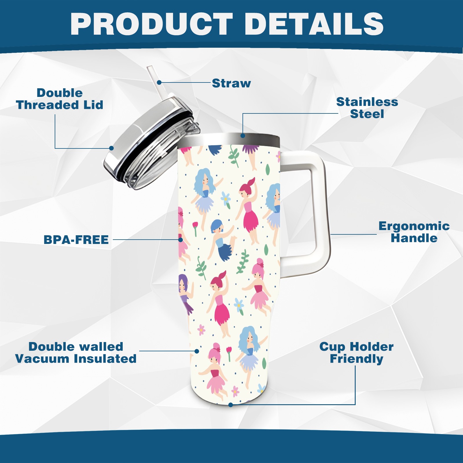 • <p>This multi-functional insulated water bottle features a simple and practical design, suitable for various daily scenarios. The ergonomic handle allows for easy one-handed drinking, and the detachable handle can be adjusted or removed as needed, making it convenient for commuting, exercising, or carrying to meetings. Made of high-quality stainless steel, it is BPA-free and features double-walled vacuum insulation technology that keeps drinks cold for 8 hours and hot for 6 hours, ensuring you can enjoy your beverage at the perfect temperature anytime, anywhere. The 40-ounce Christmas edition comes with a sliding lid, silicone straw, and a non-slip design. Accessories are dishwasher safe, and the narrow bottom and wide mouth design perfectly fits car cup holders. The exclusive flip-top straw lid is environmentally friendly and durable, with a one-touch leak-proof closure and two drinking modes: sip and gulp. A dust cover provides effective protection. This bottle is suitable for travel, office work, sports, camping, and other occasions, making it a thoughtful gift for friends and family.</p>