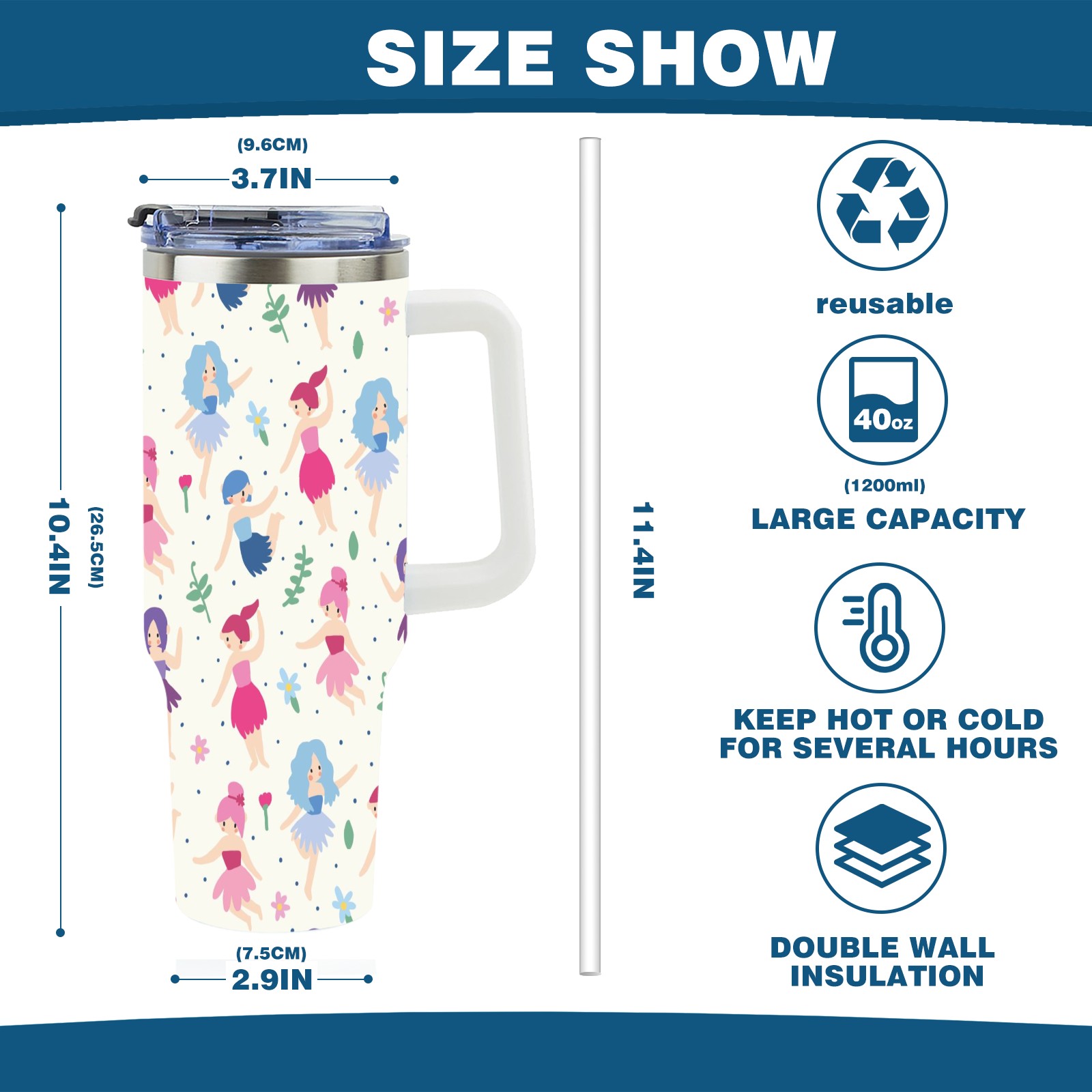 40oz Pixie Dust thermos with lid and straw, leak-proof stainless steel, with handle, spill-proof bottle, convenient for travel(pink)