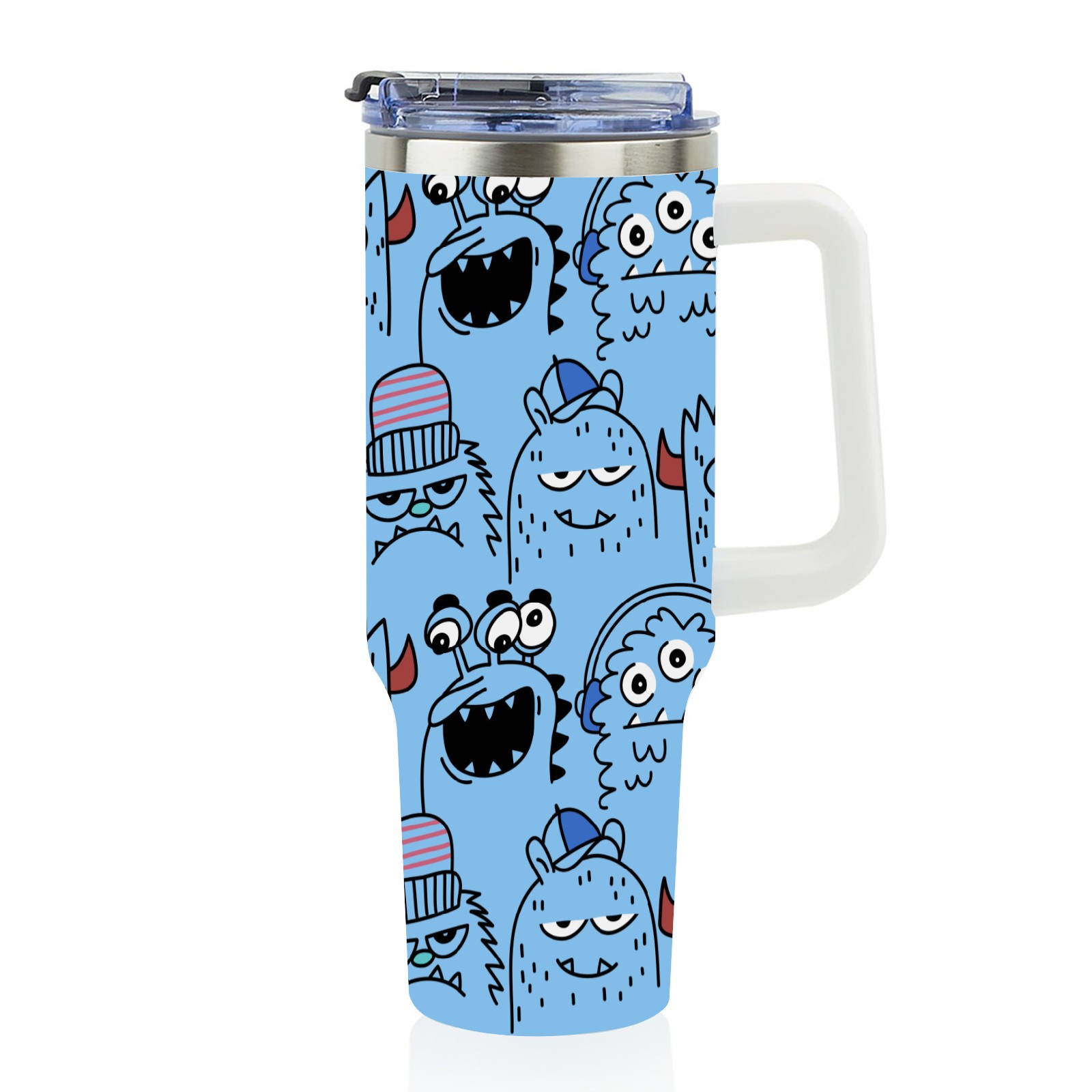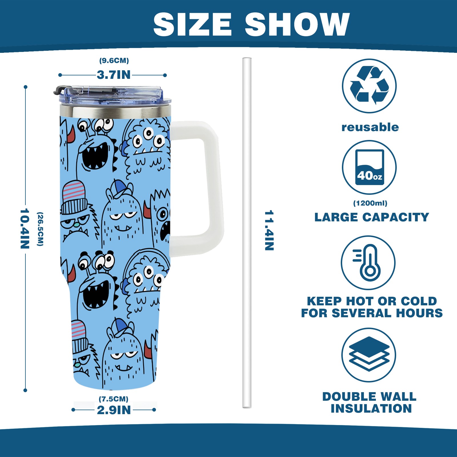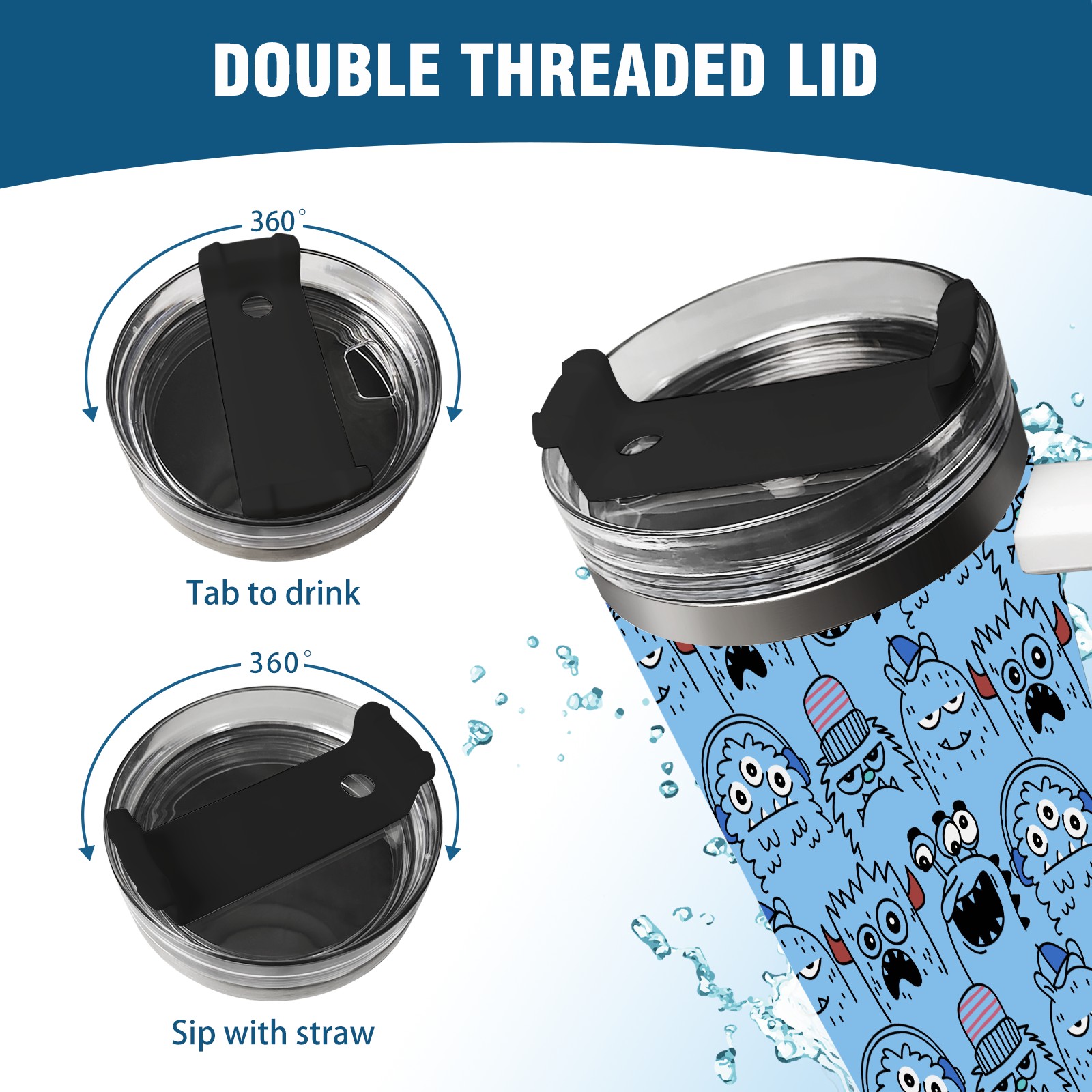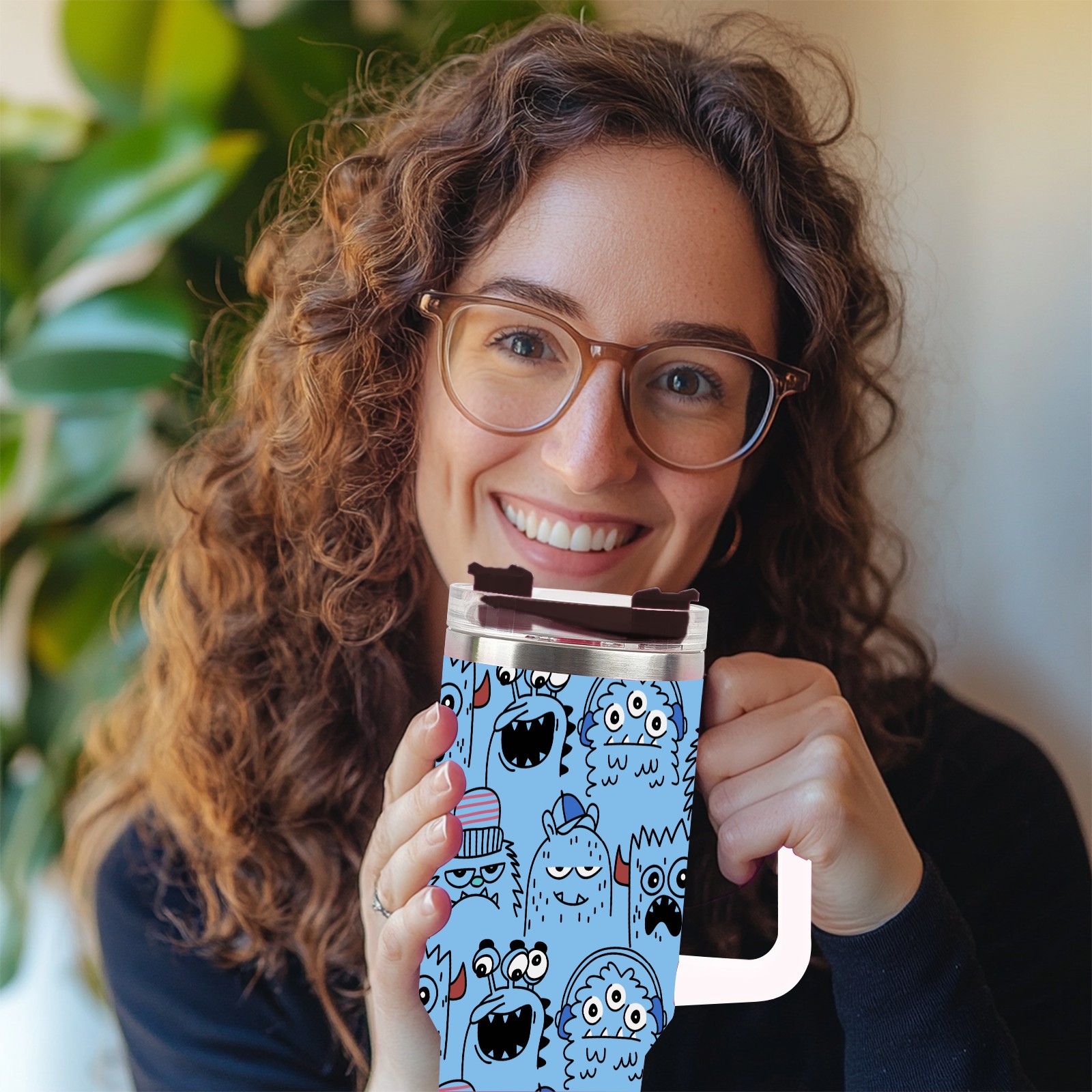 40oz Blue Monster thermos with lid and straw, leak-proof stainless steel, with handle, spill-proof bottle, convenient for travel(pink)