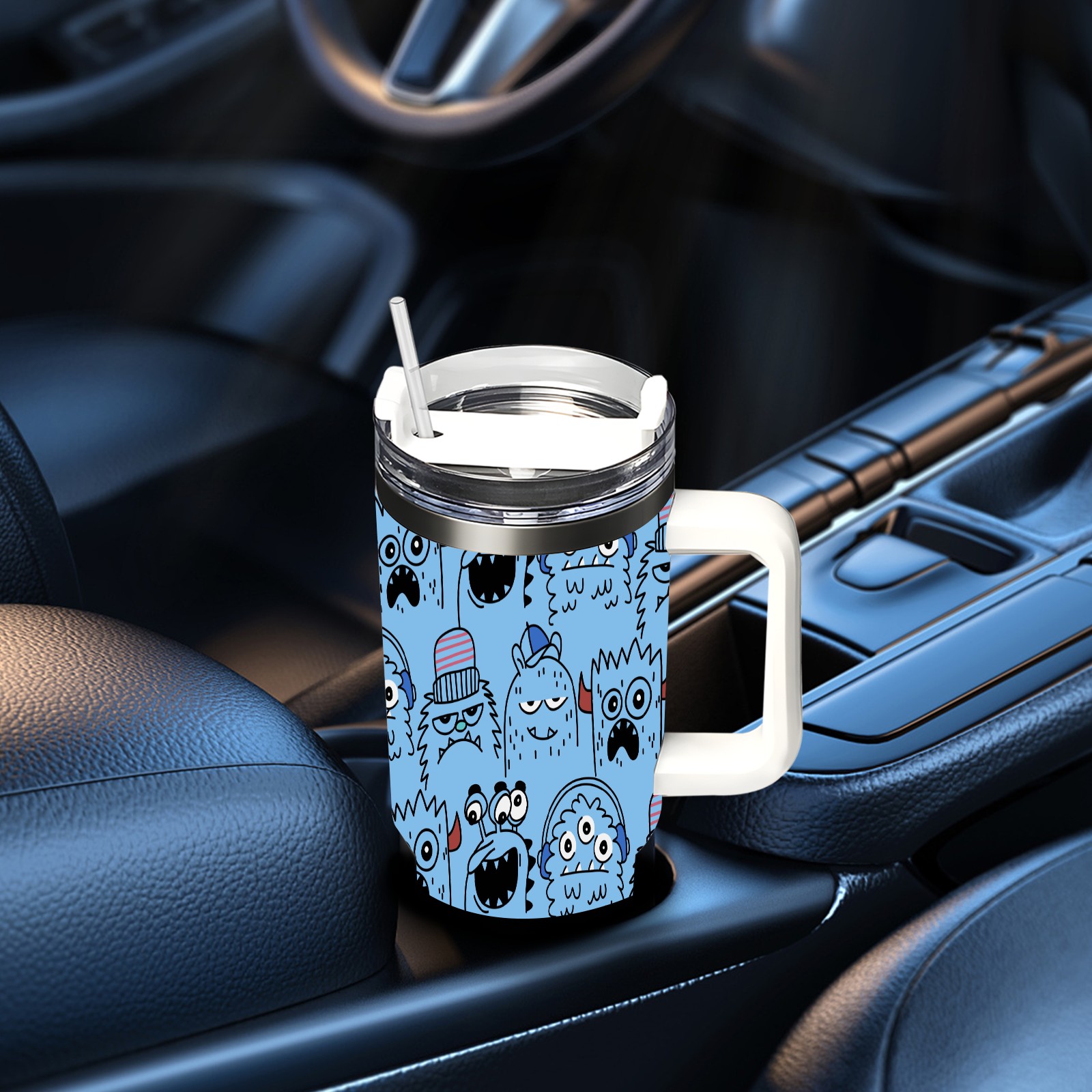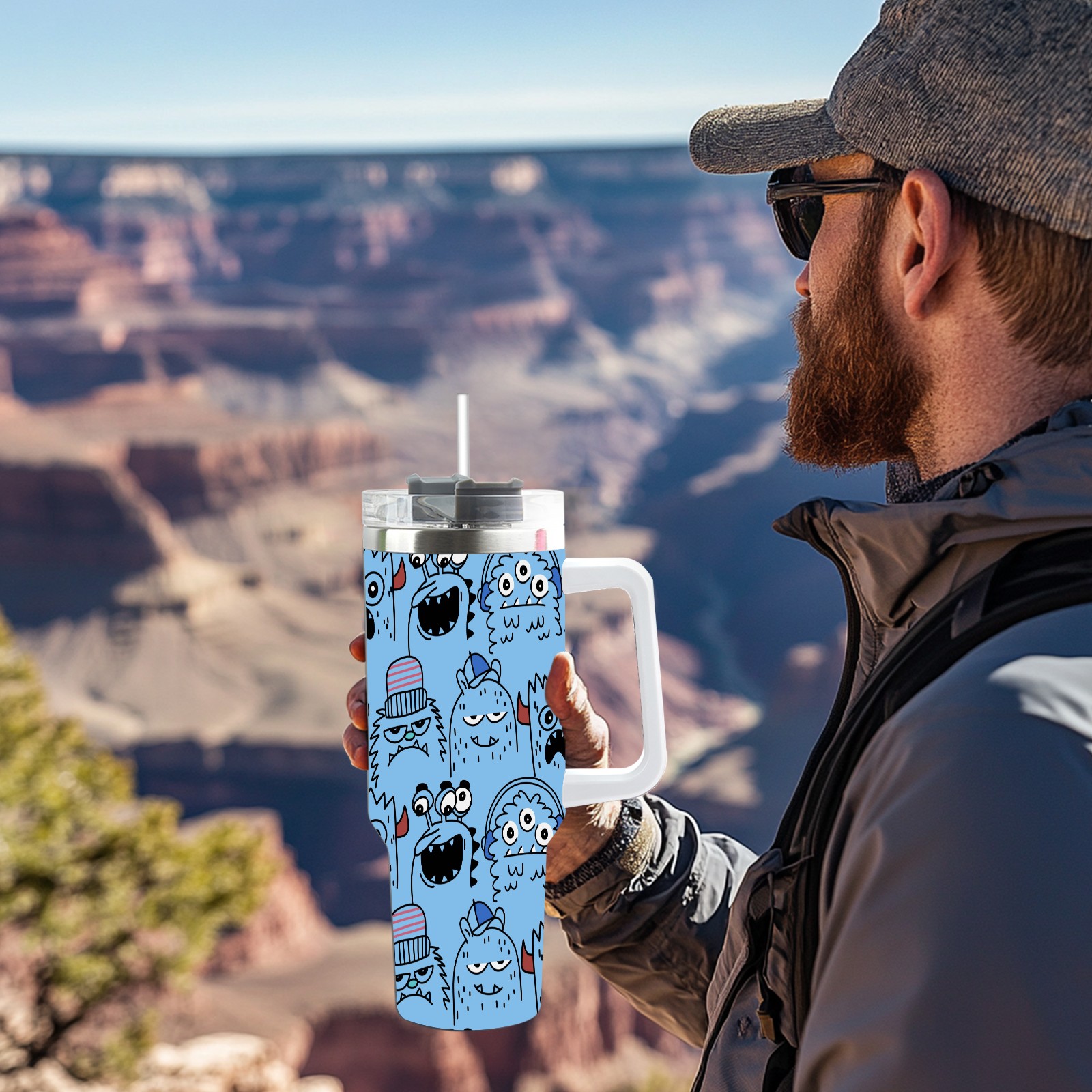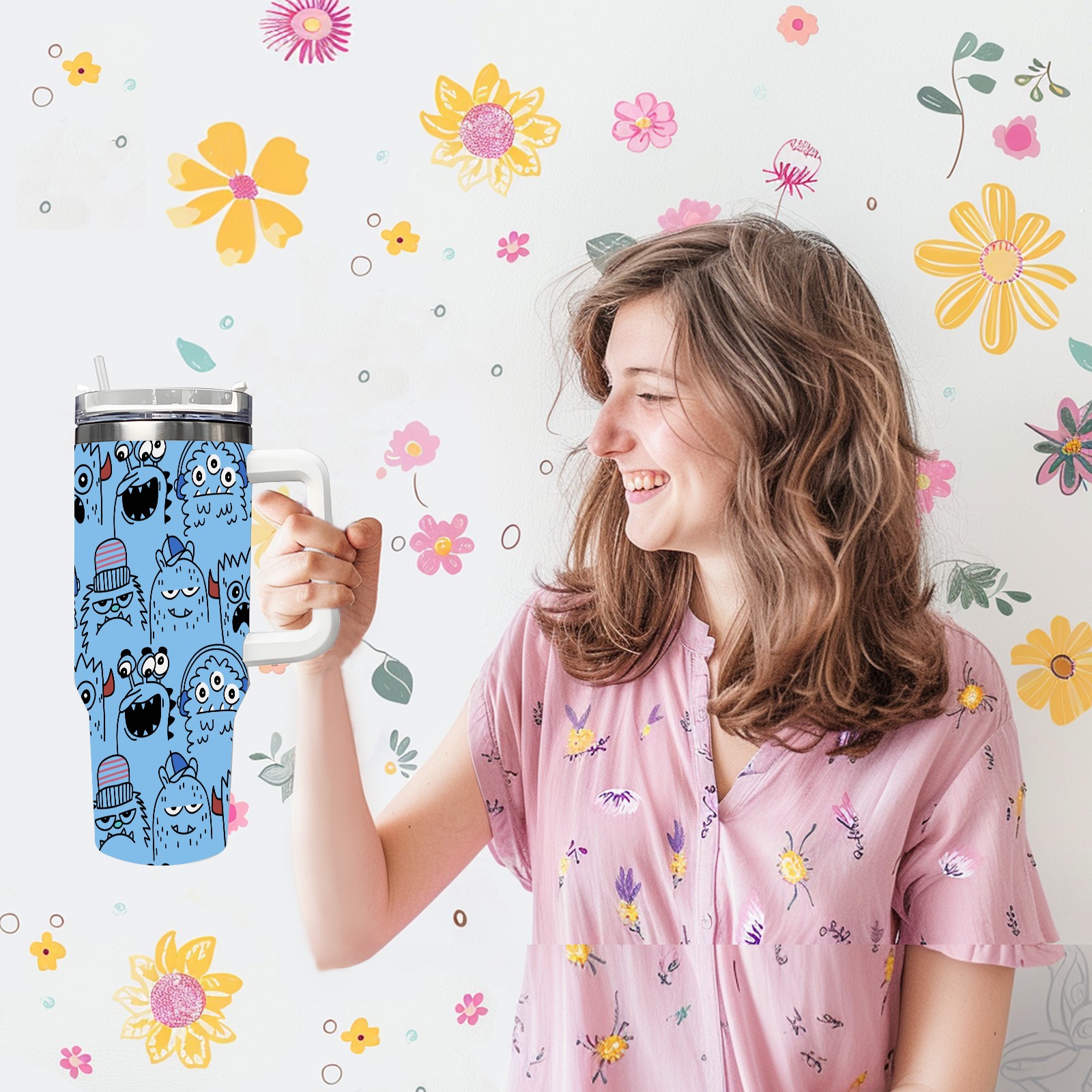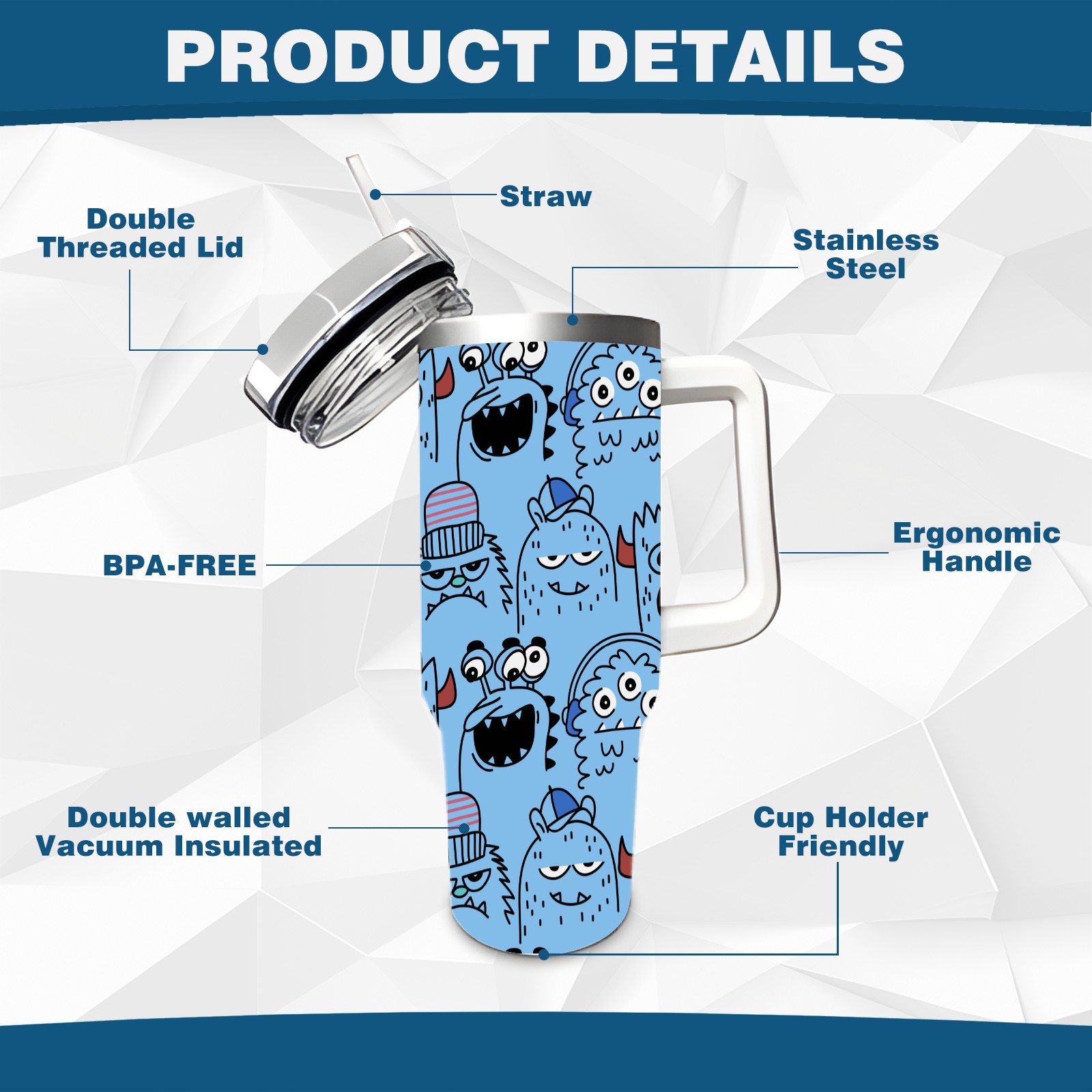 40oz Blue Monster thermos with lid and straw, leak-proof stainless steel, with handle, spill-proof bottle, convenient for travel(pink)