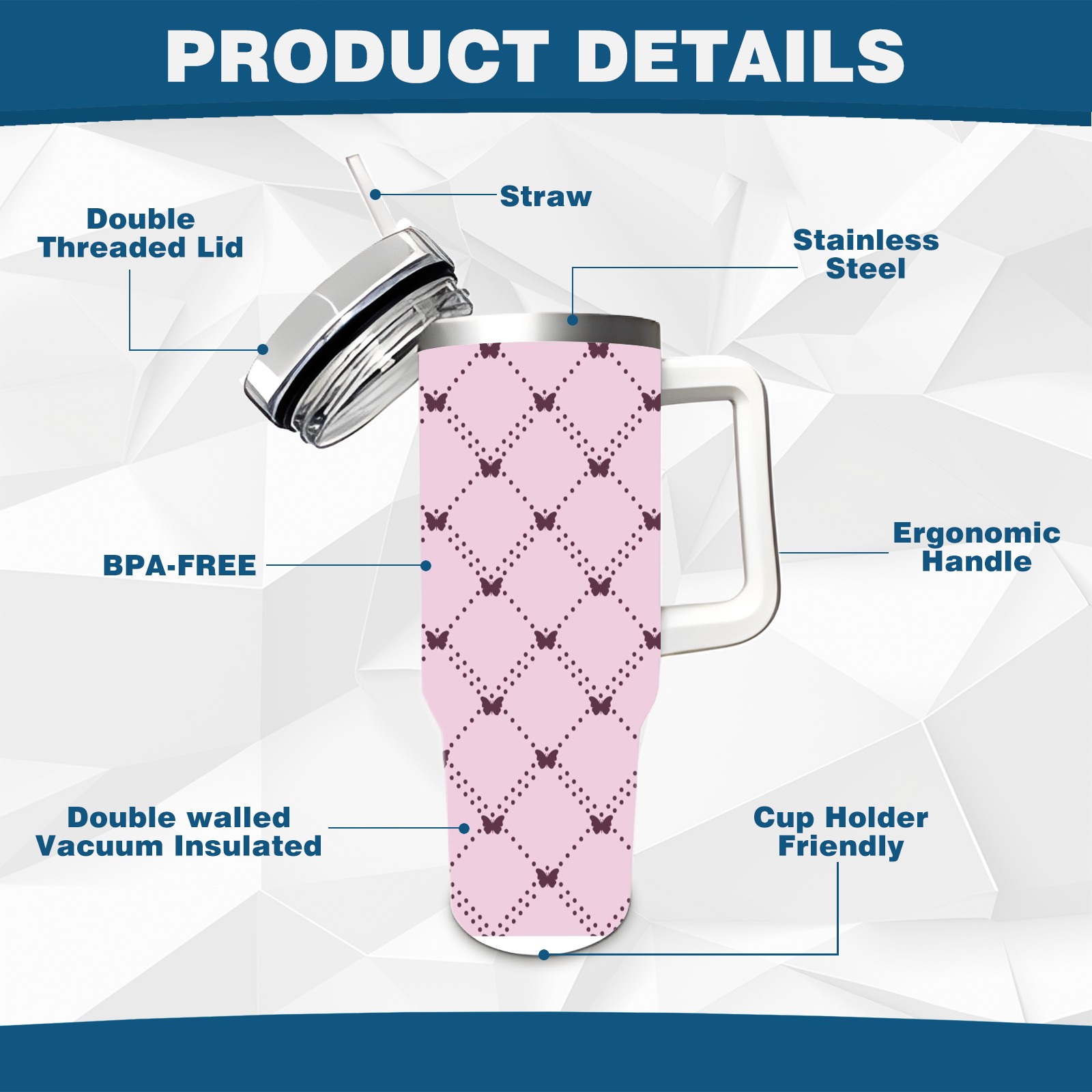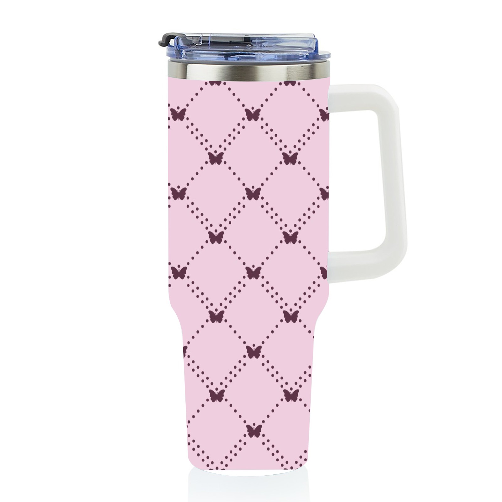 40oz Pink Pattern thermos with lid and straw, leak-proof stainless steel, with handle, spill-proof bottle, convenient for travel(pink)