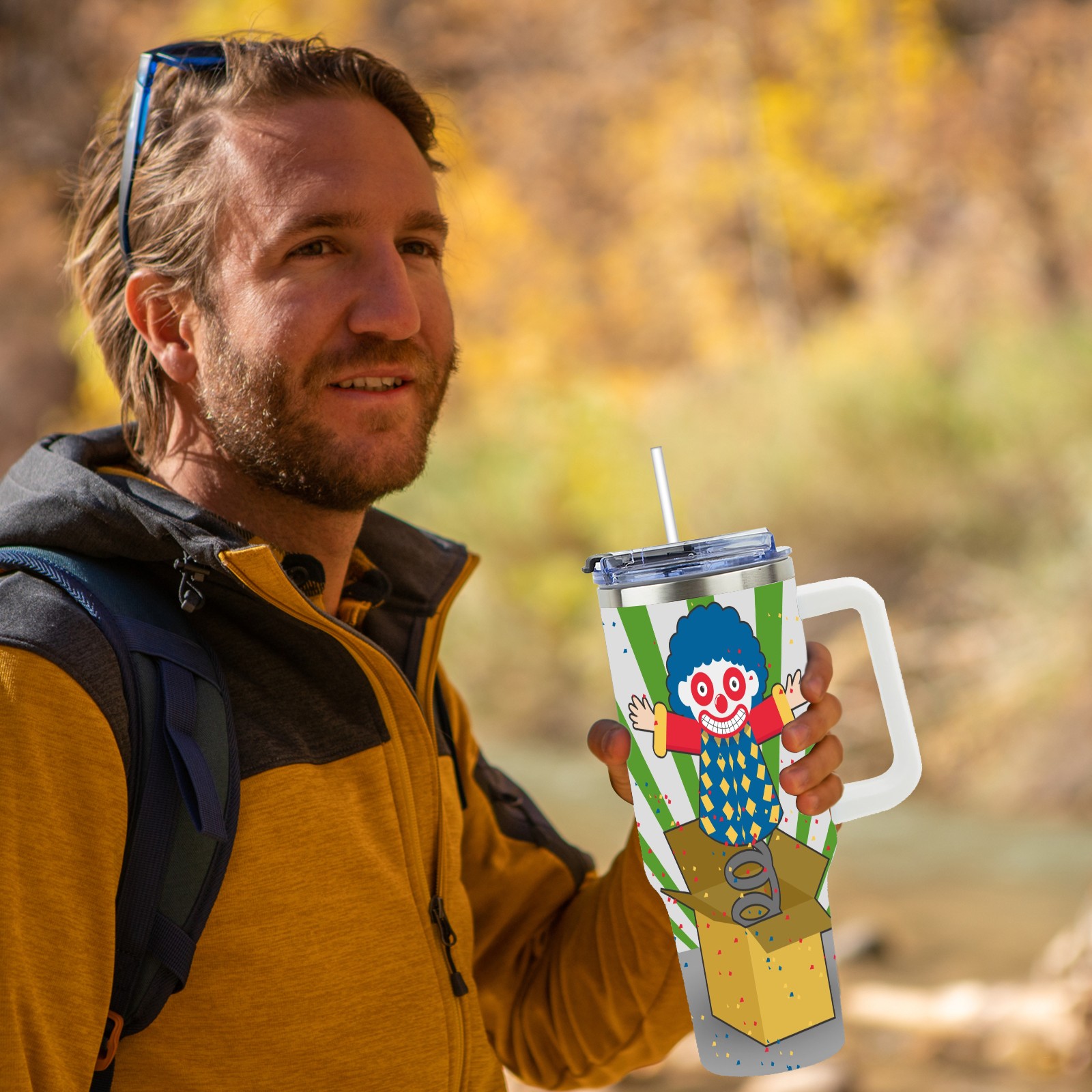 40oz Box Joker thermos with lid and straw, leak-proof stainless steel, with handle, spill-proof bottle, convenient for travel(pink)
