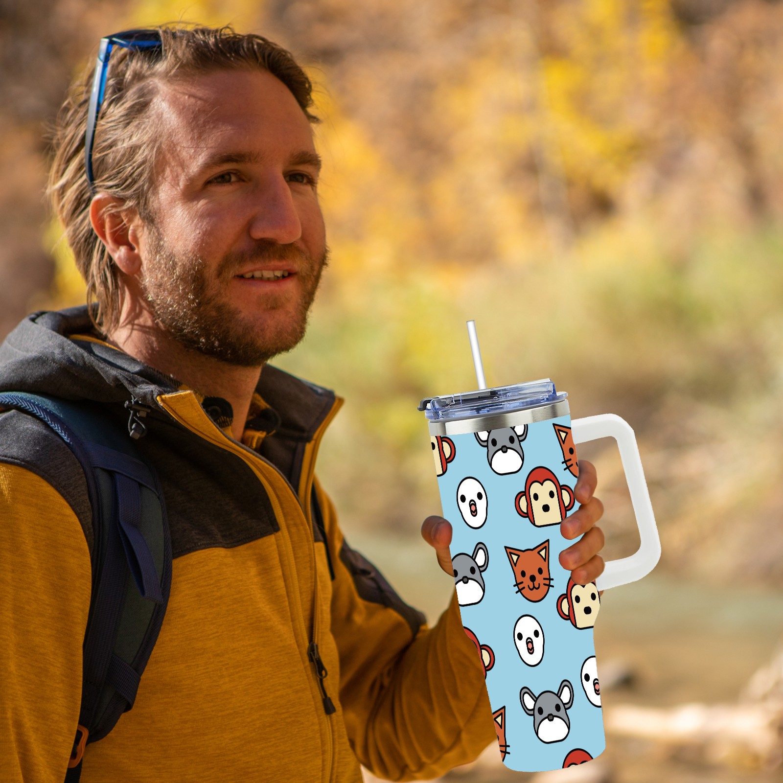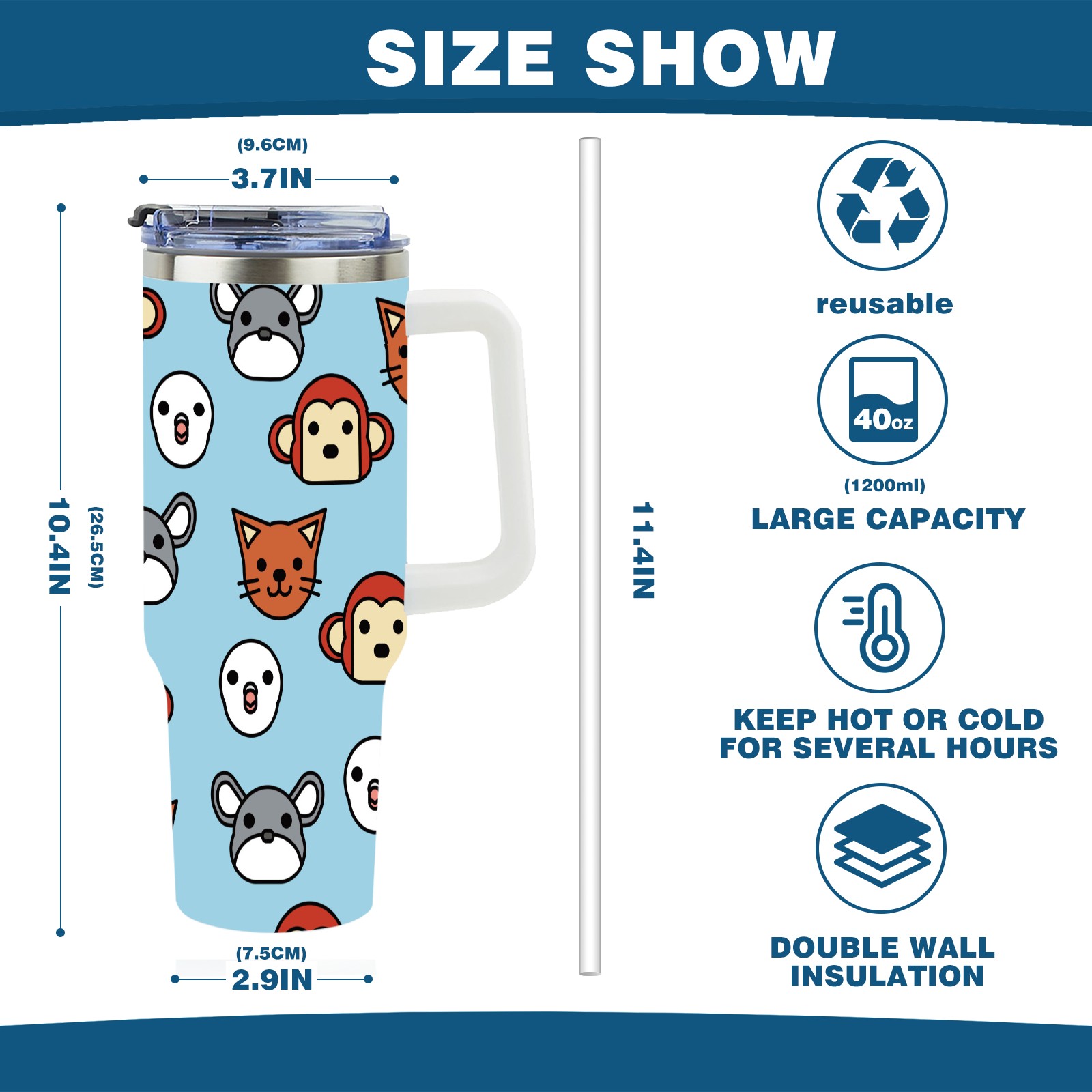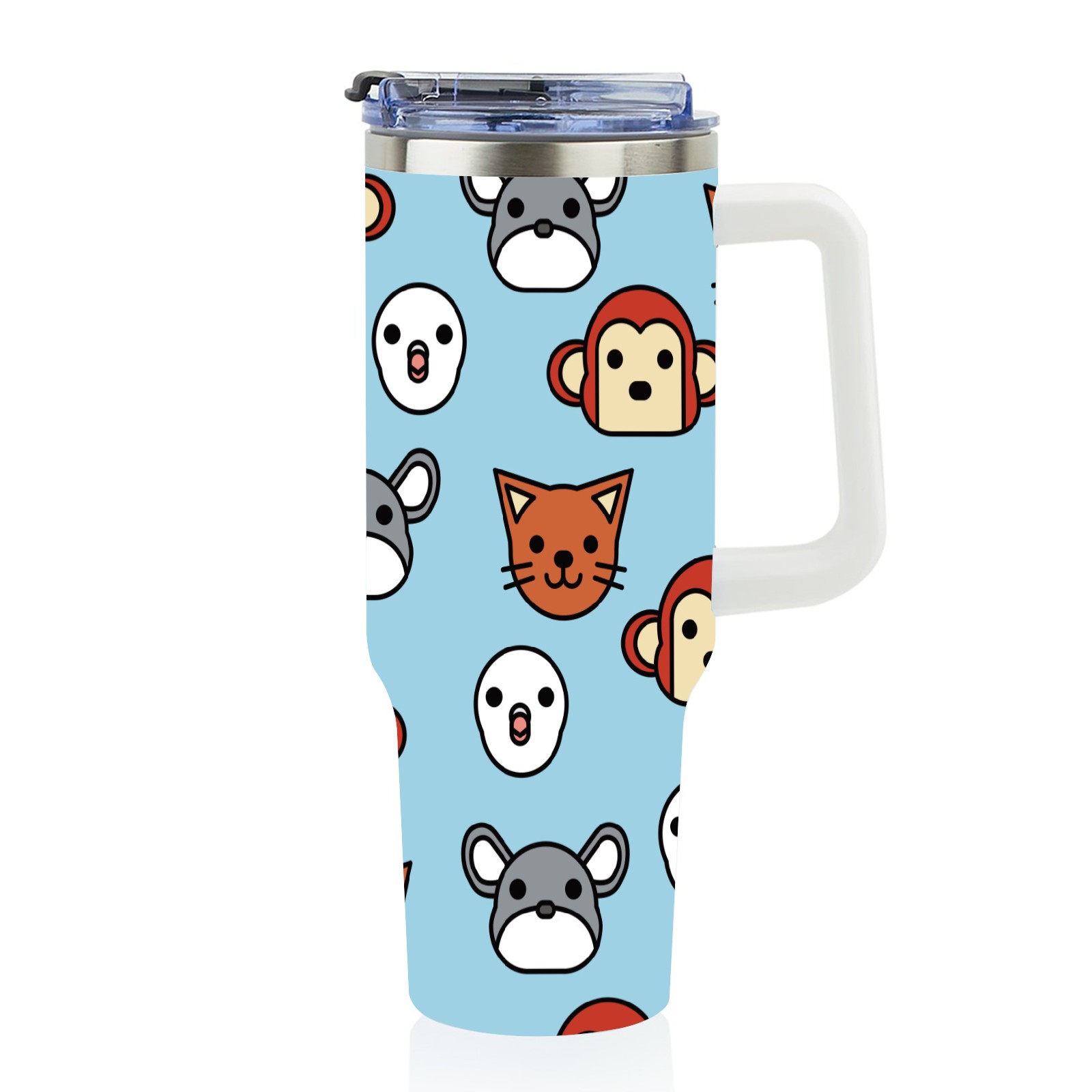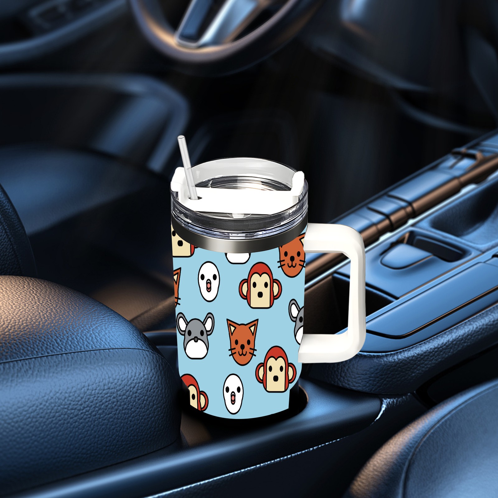 40oz Cute Chinchilla thermos with lid and straw, leak-proof stainless steel, with handle, spill-proof bottle, convenient for travel(pink)