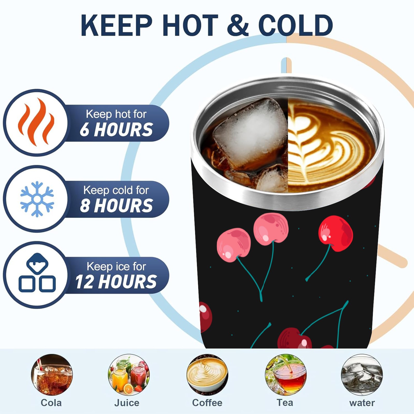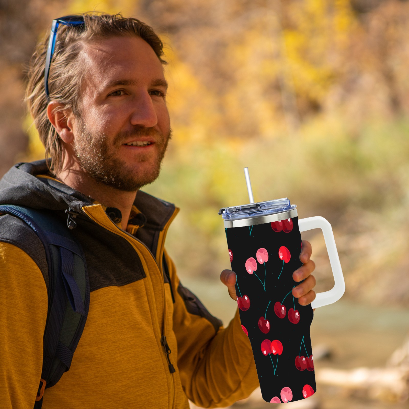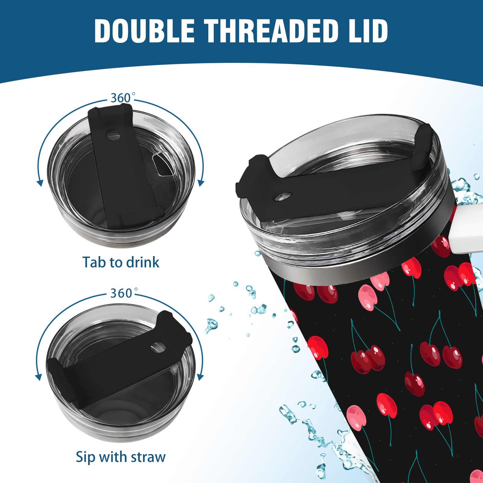40oz Delicious Cherries thermos with lid and straw, leak-proof stainless steel, with handle, spill-proof bottle, convenient for travel(pink)