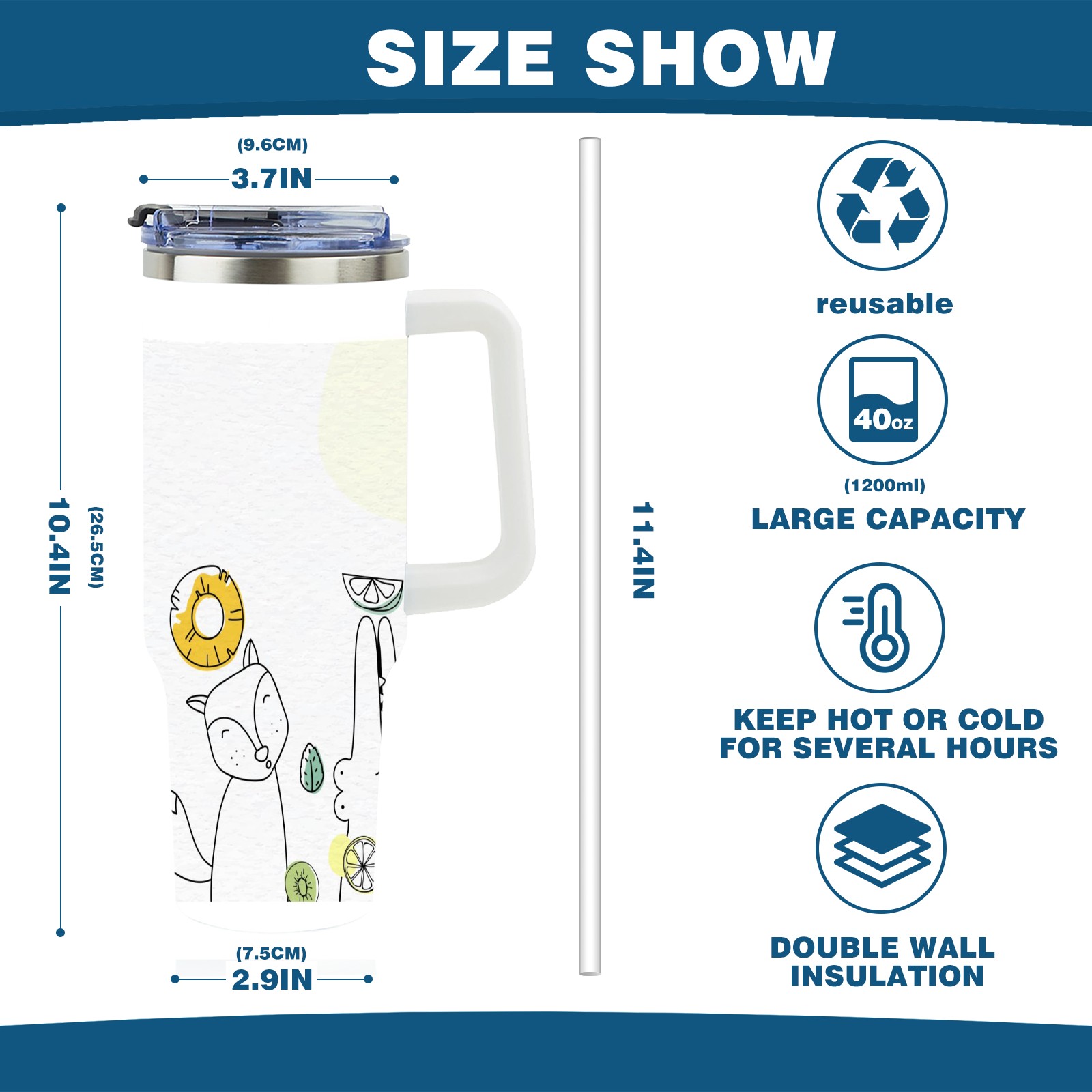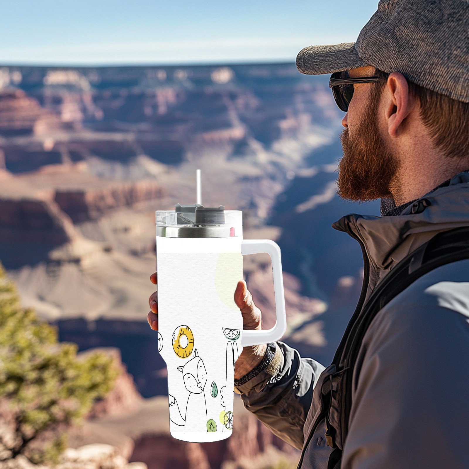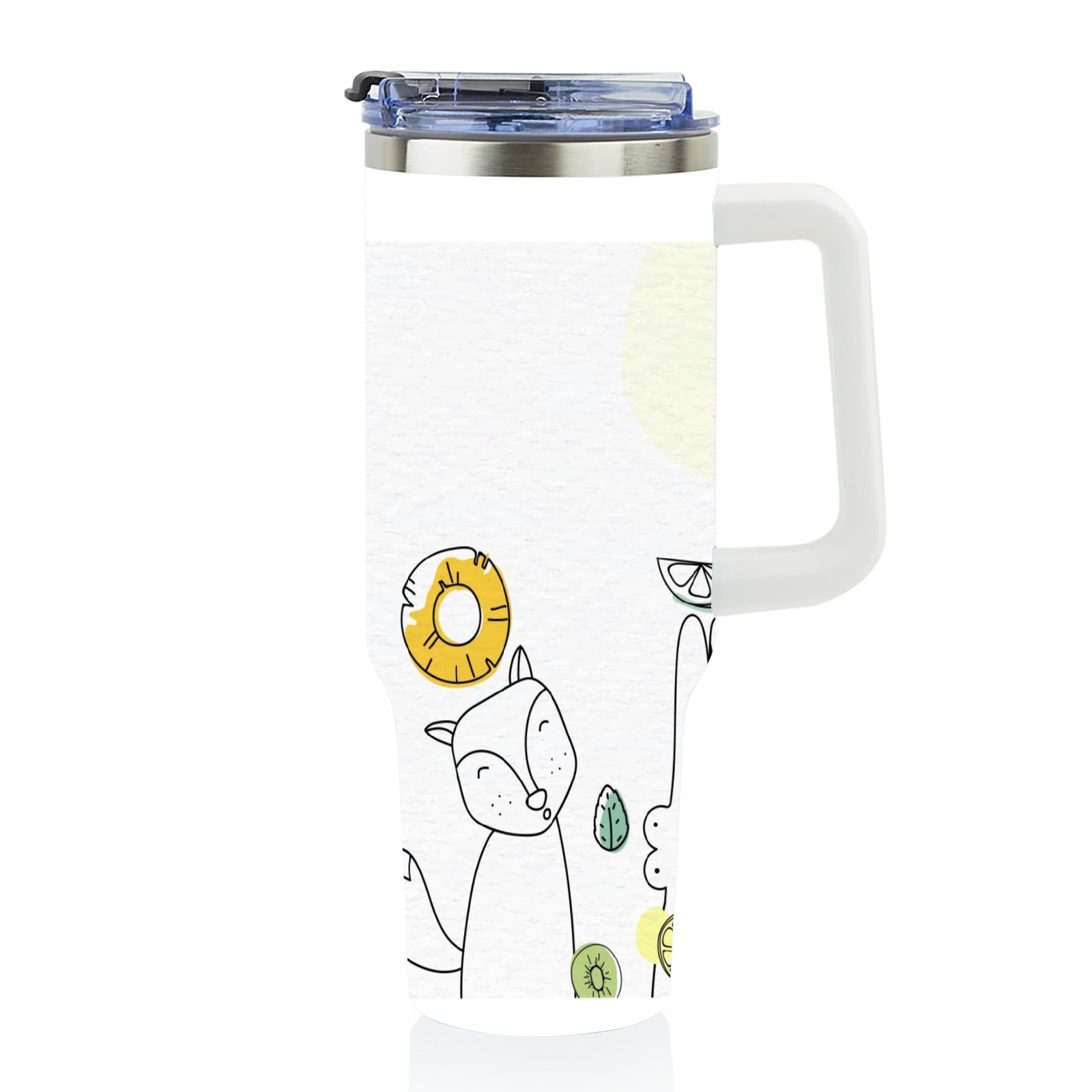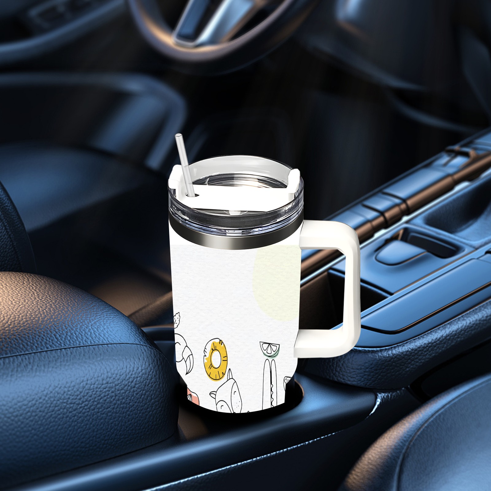 40oz Art Animal thermos with lid and straw, leak-proof stainless steel, with handle, spill-proof bottle, convenient for travel(pink)