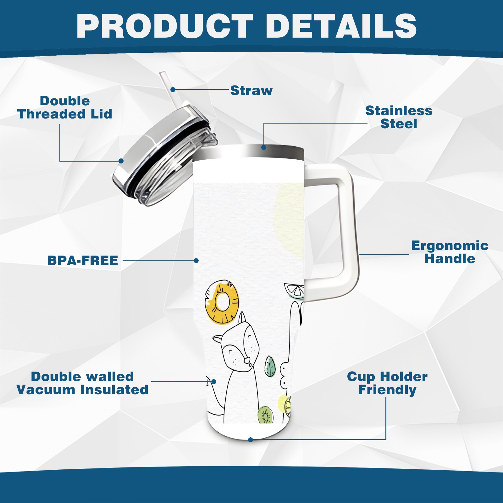 • <p>This multi-functional insulated water bottle features a simple and practical design, suitable for various daily scenarios. The ergonomic handle allows for easy one-handed drinking, and the detachable handle can be adjusted or removed as needed, making it convenient for commuting, exercising, or carrying to meetings. Made of high-quality stainless steel, it is BPA-free and features double-walled vacuum insulation technology that keeps drinks cold for 8 hours and hot for 6 hours, ensuring you can enjoy your beverage at the perfect temperature anytime, anywhere. The 40-ounce Christmas edition comes with a sliding lid, silicone straw, and a non-slip design. Accessories are dishwasher safe, and the narrow bottom and wide mouth design perfectly fits car cup holders. The exclusive flip-top straw lid is environmentally friendly and durable, with a one-touch leak-proof closure and two drinking modes: sip and gulp. A dust cover provides effective protection. This bottle is suitable for travel, office work, sports, camping, and other occasions, making it a thoughtful gift for friends and family.</p>