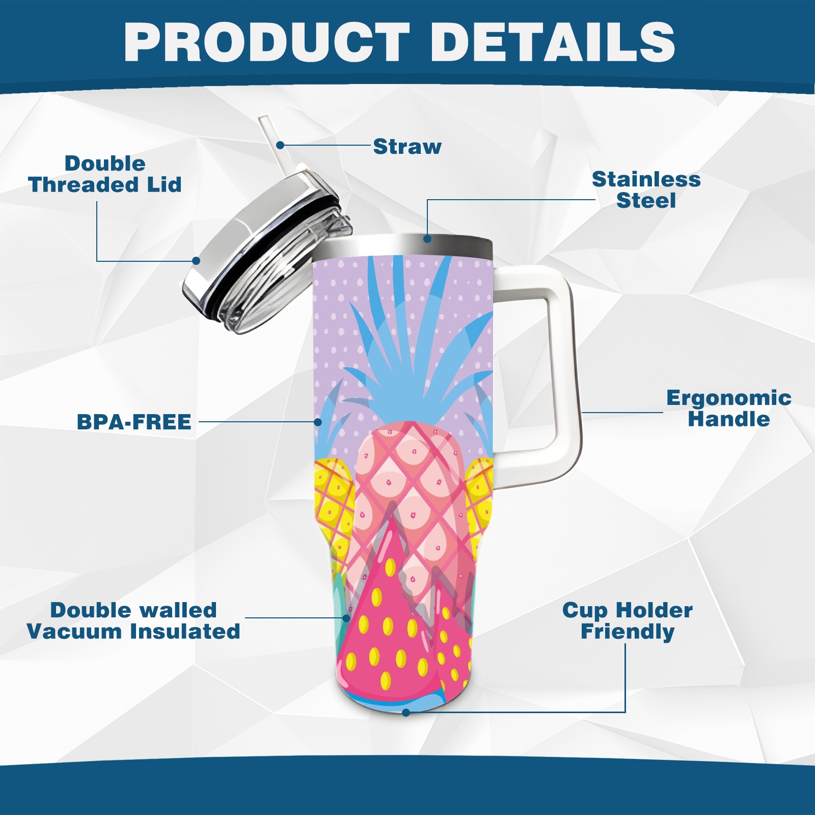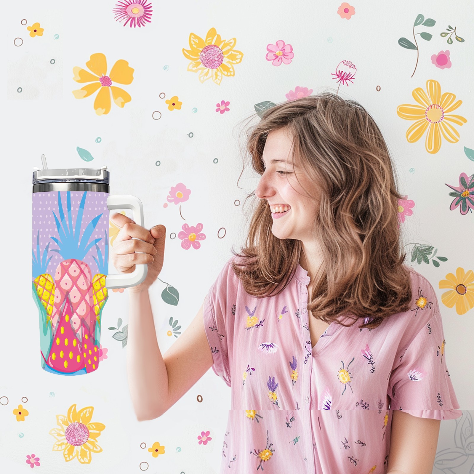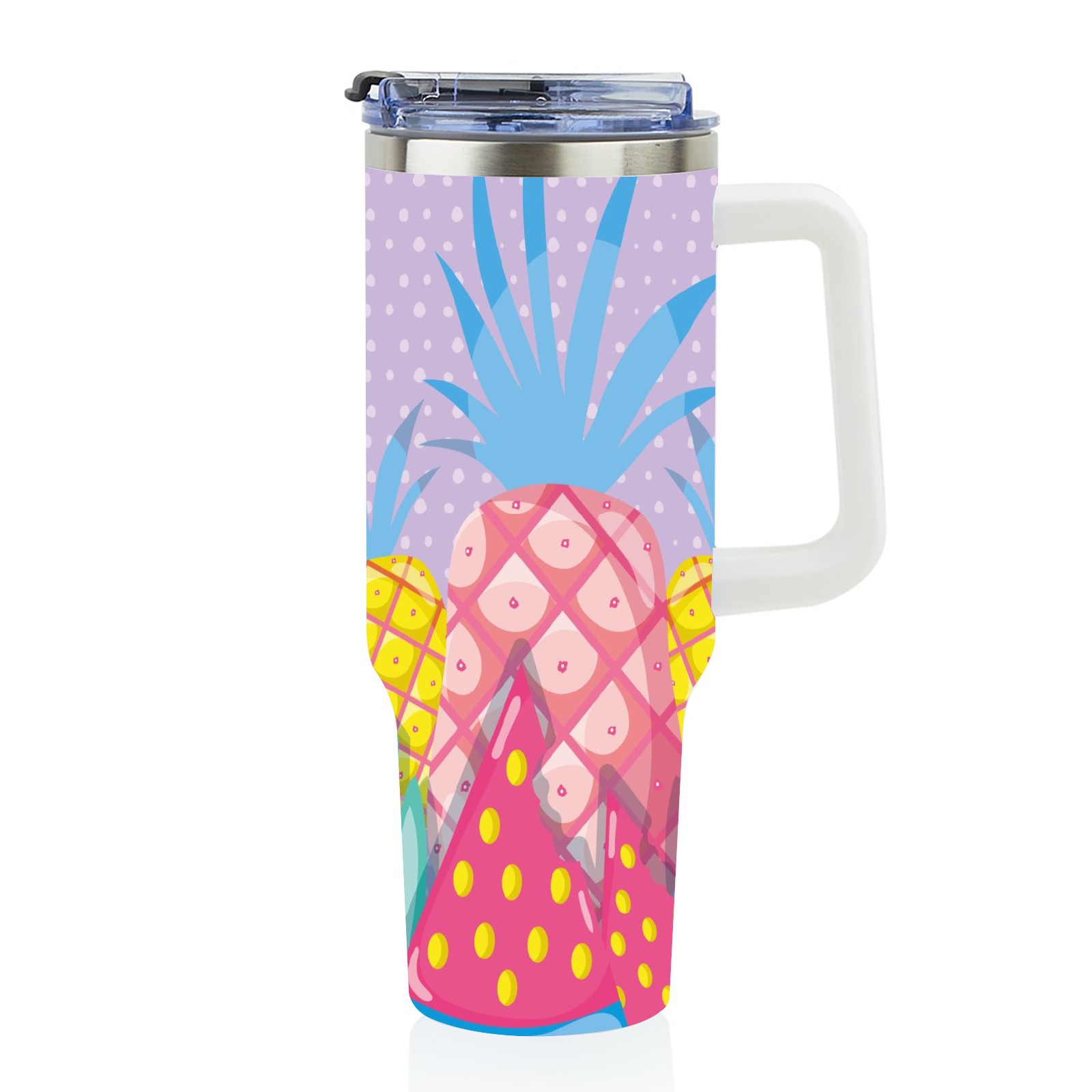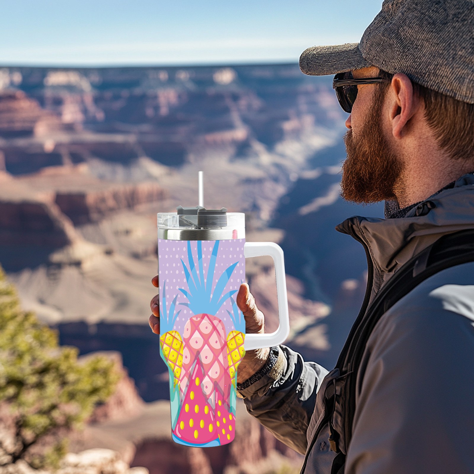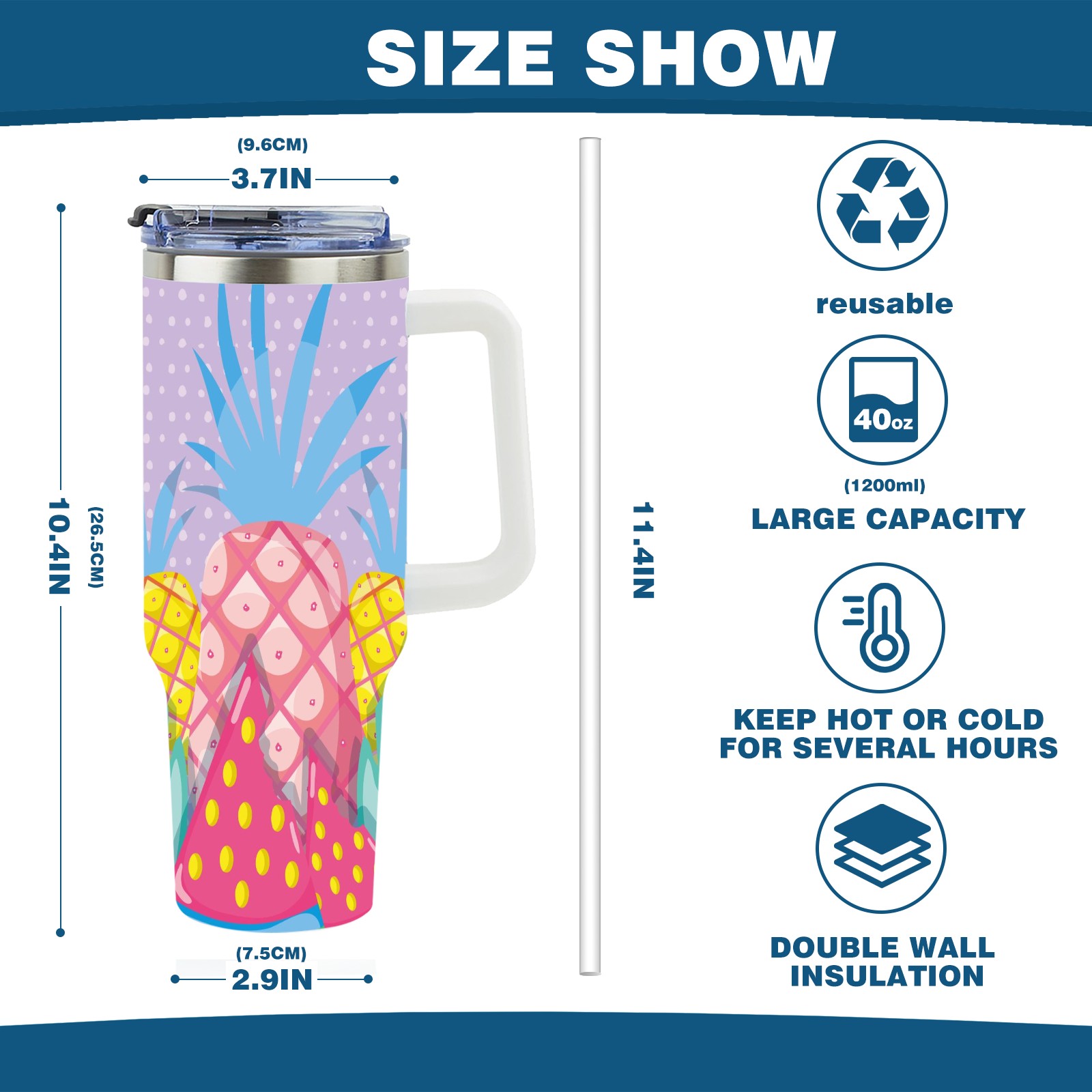 40oz Watermelon thermos with lid and straw, leak-proof stainless steel, with handle, spill-proof bottle, convenient for travel(pink)
