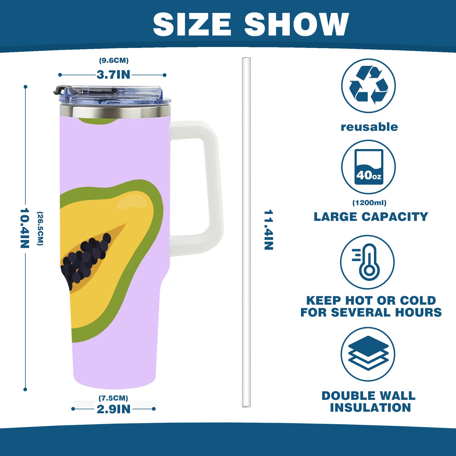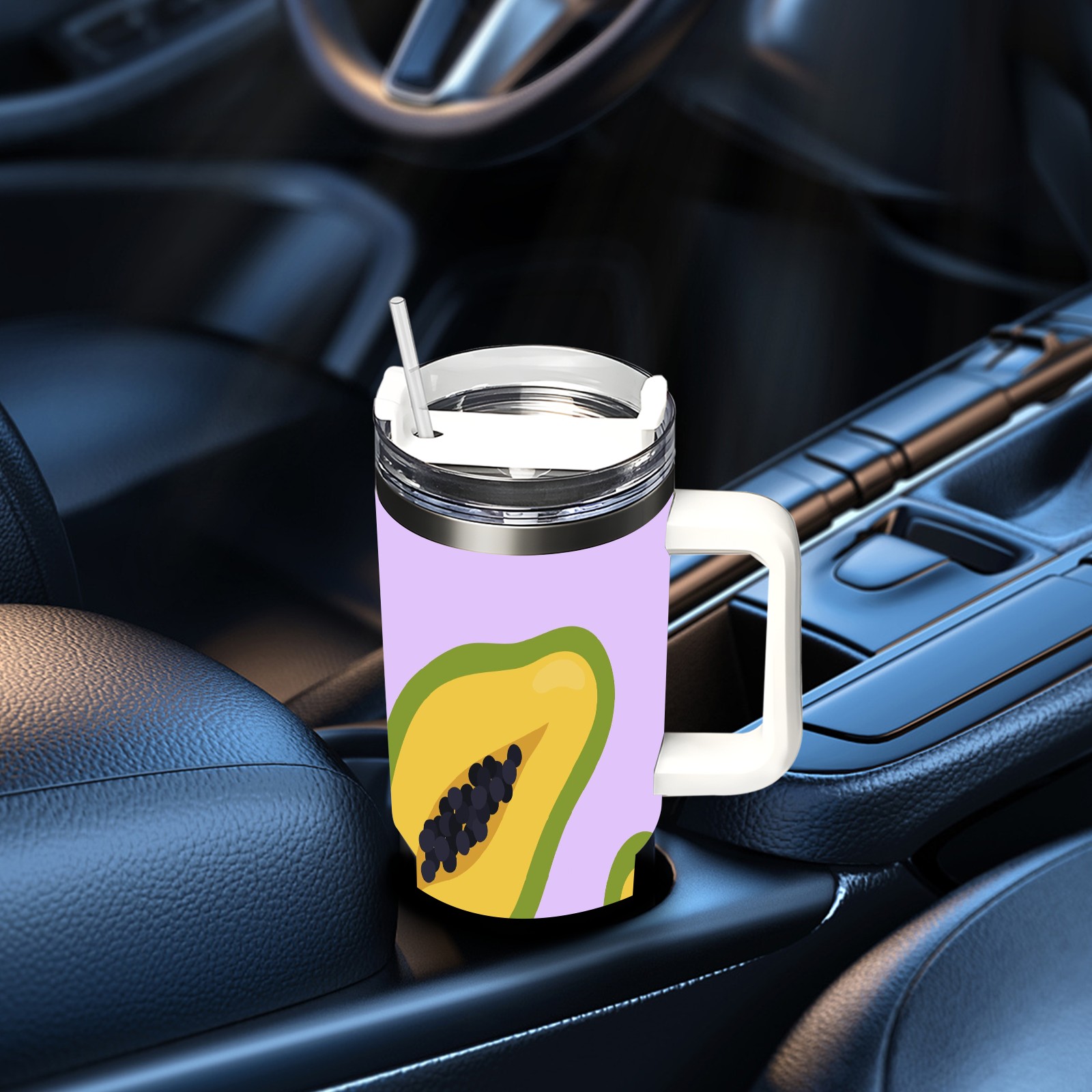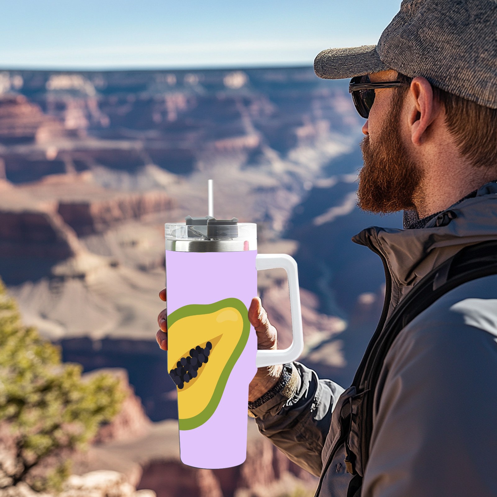 40oz Papaya thermos with lid and straw, leak-proof stainless steel, with handle, spill-proof bottle, convenient for travel(pink)