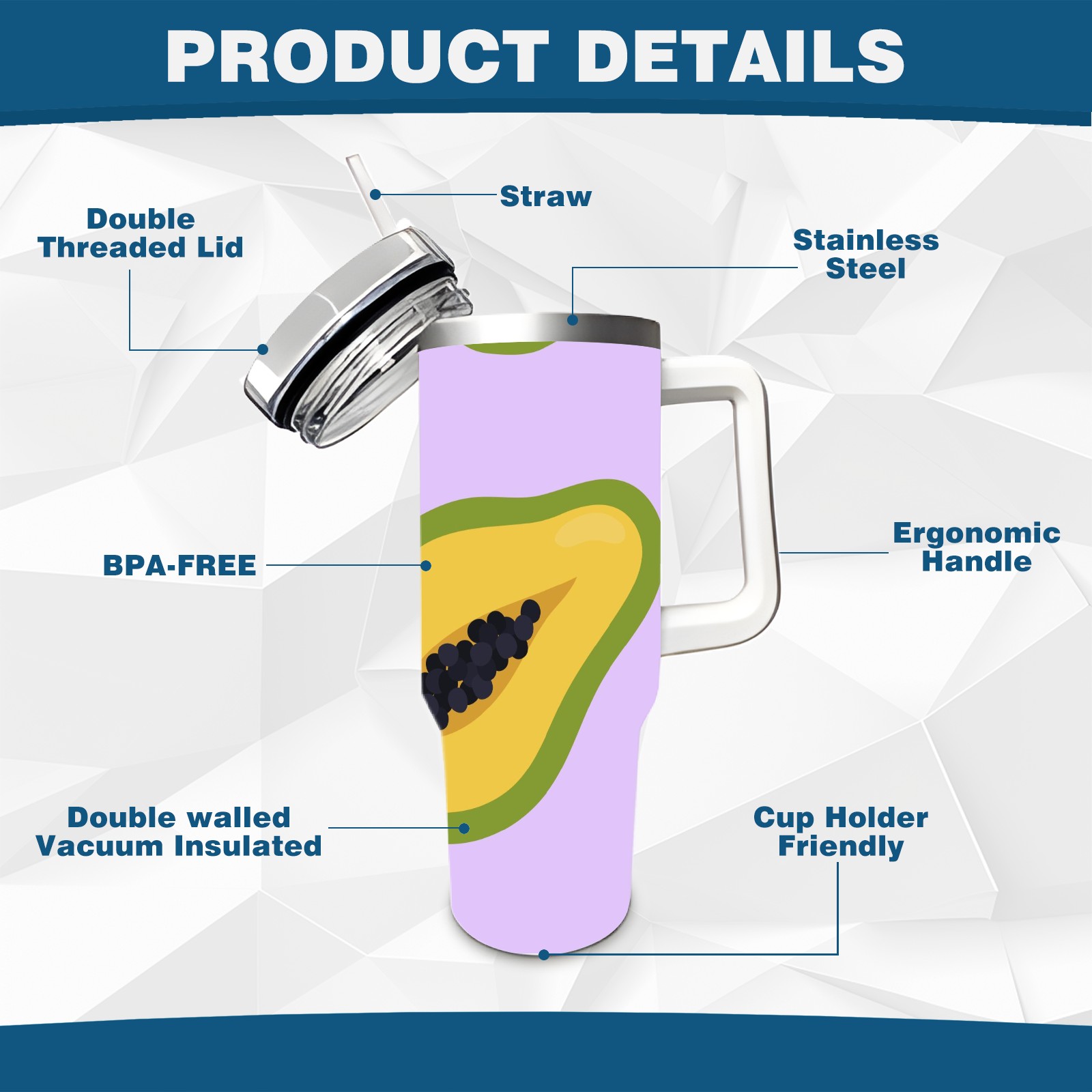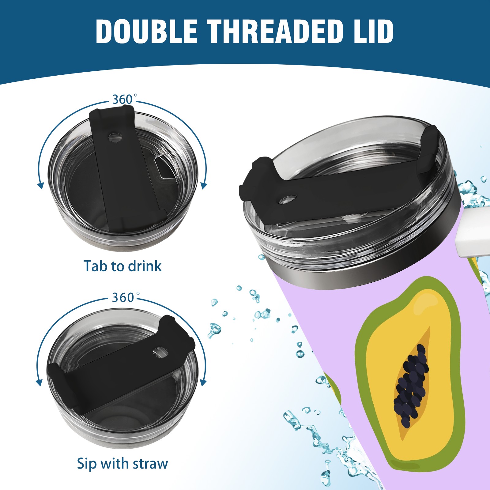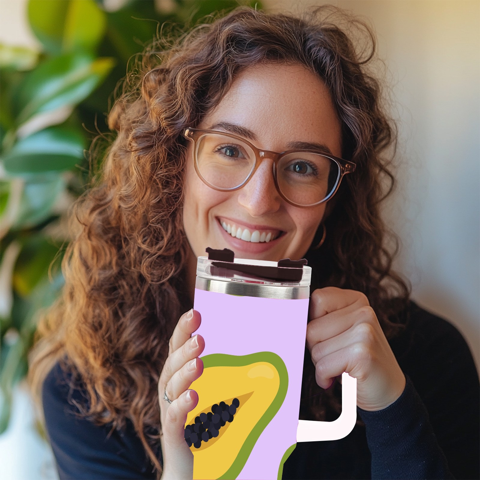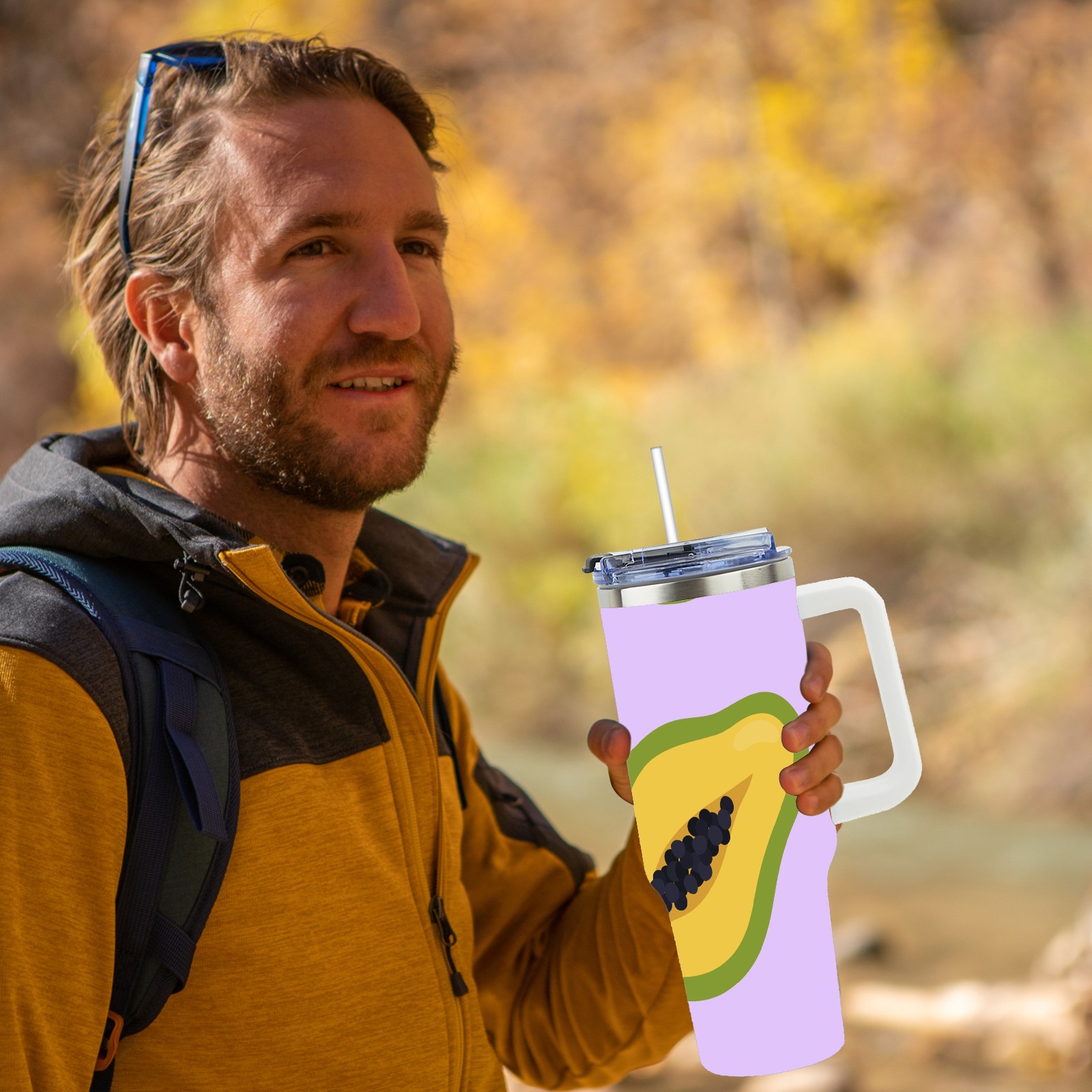 40oz Papaya thermos with lid and straw, leak-proof stainless steel, with handle, spill-proof bottle, convenient for travel(pink)