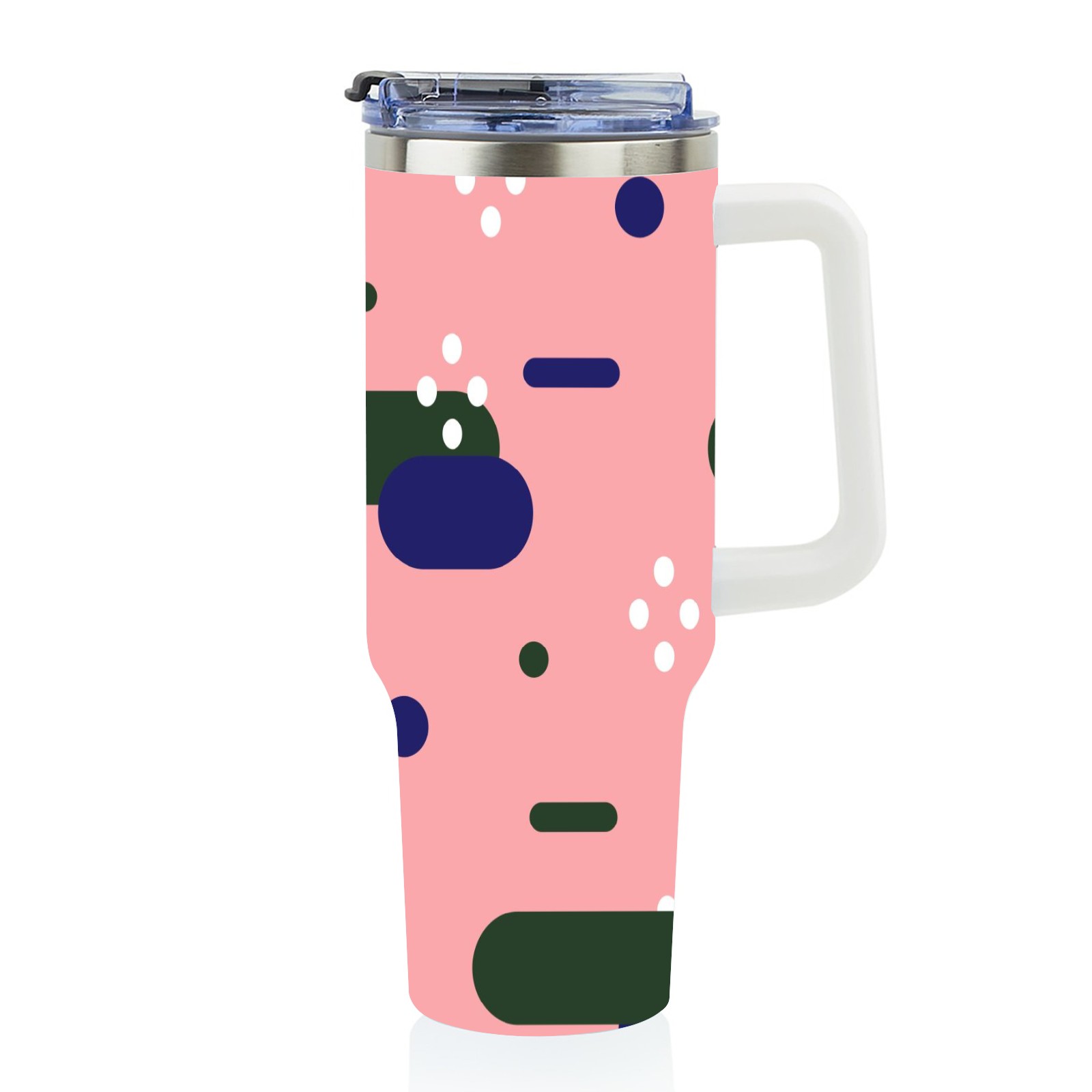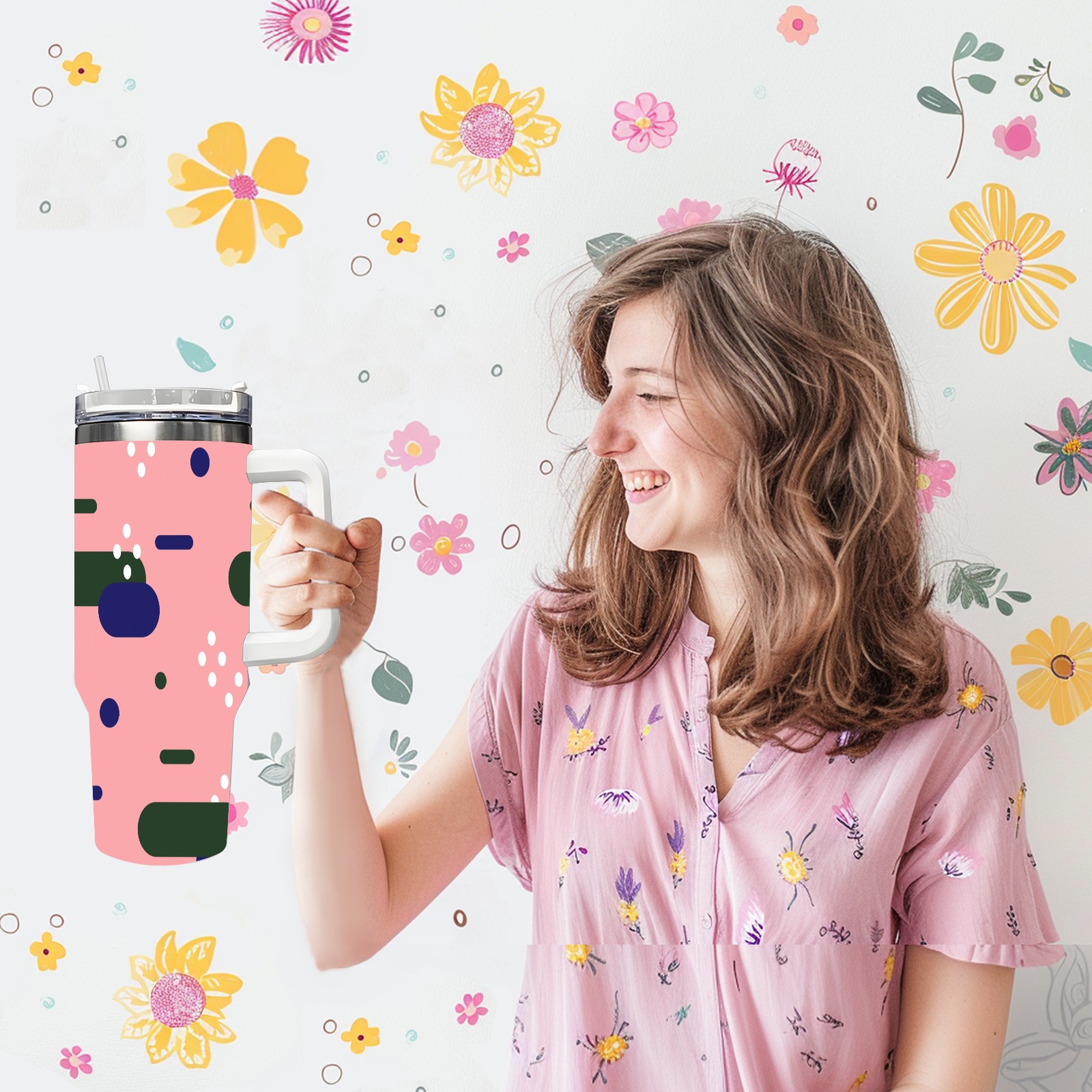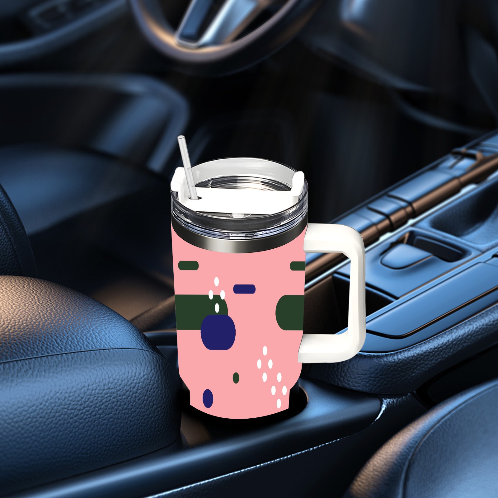40oz Art Patterns thermos with lid and straw, leak-proof stainless steel, with handle, spill-proof bottle, convenient for travel(pink)
