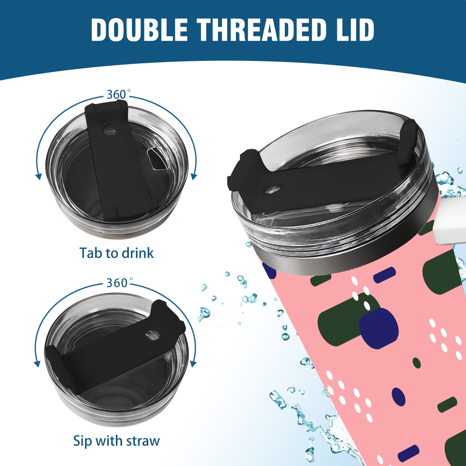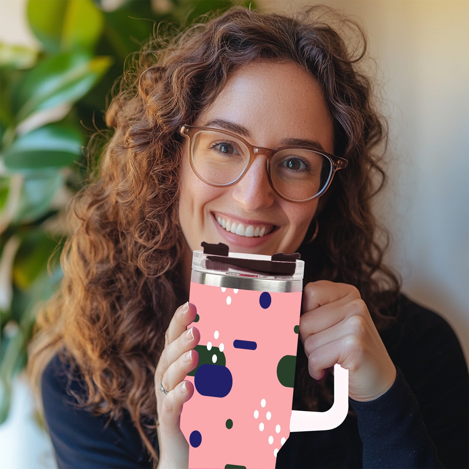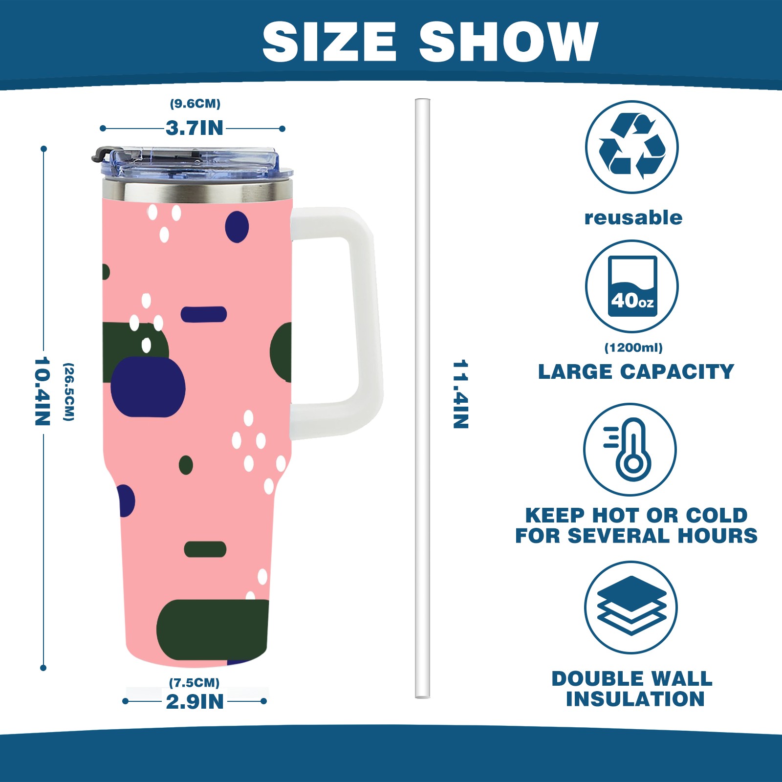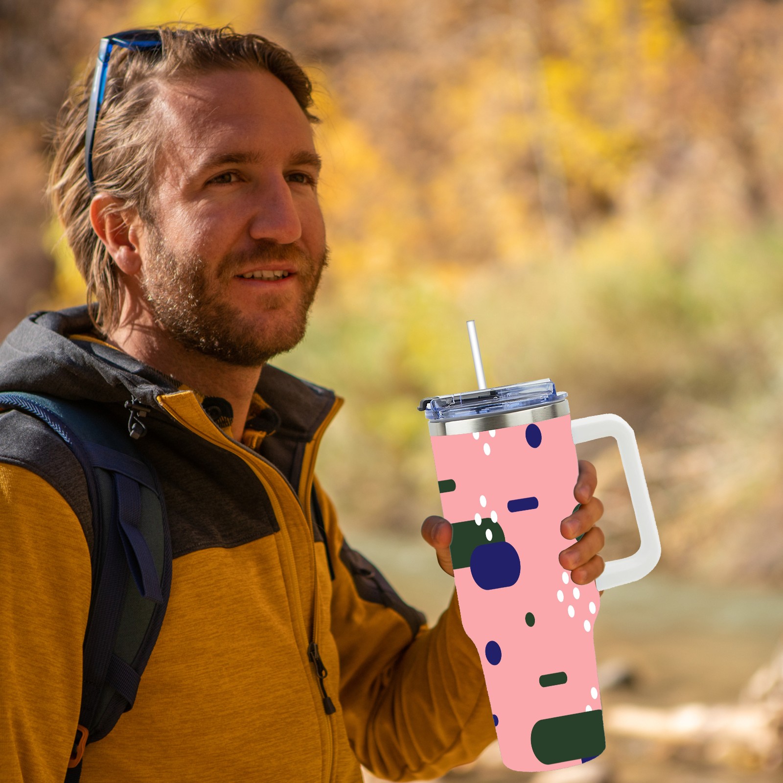 40oz Art Patterns thermos with lid and straw, leak-proof stainless steel, with handle, spill-proof bottle, convenient for travel(pink)