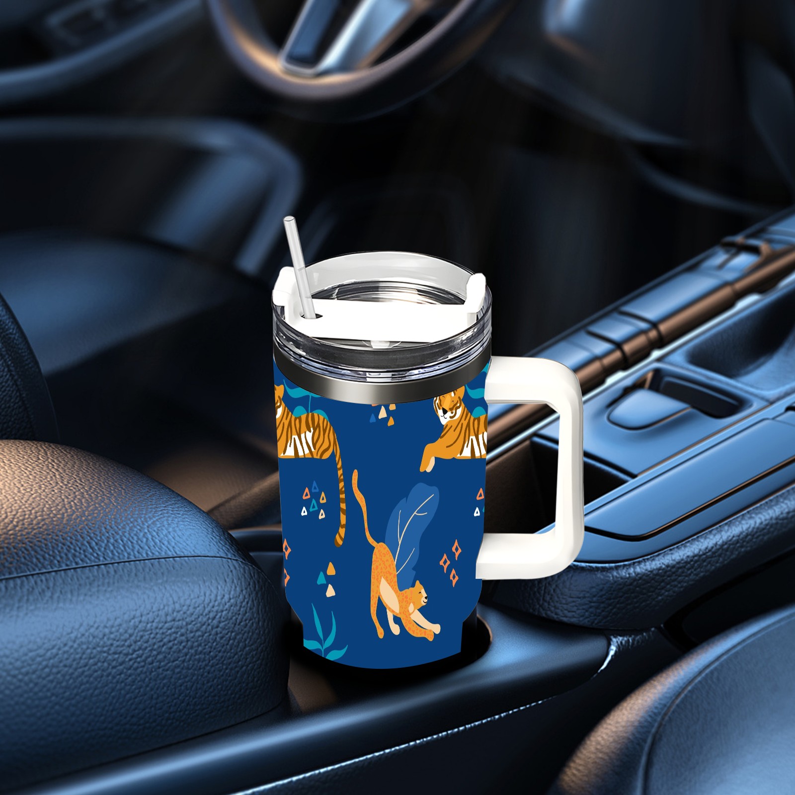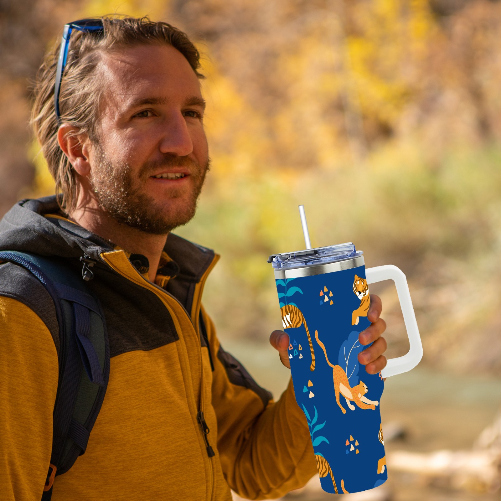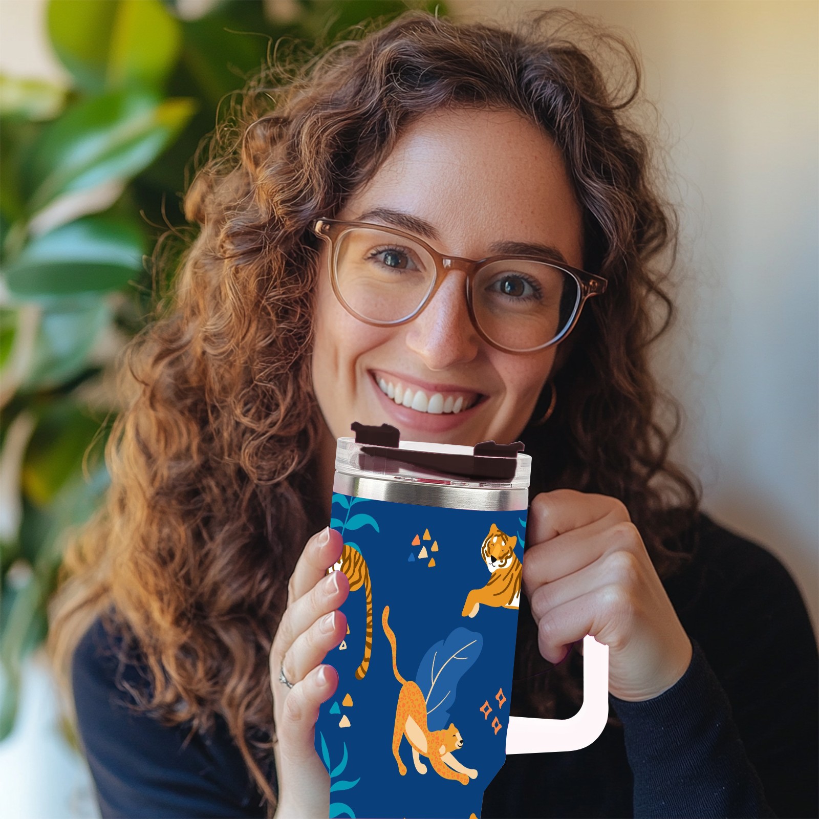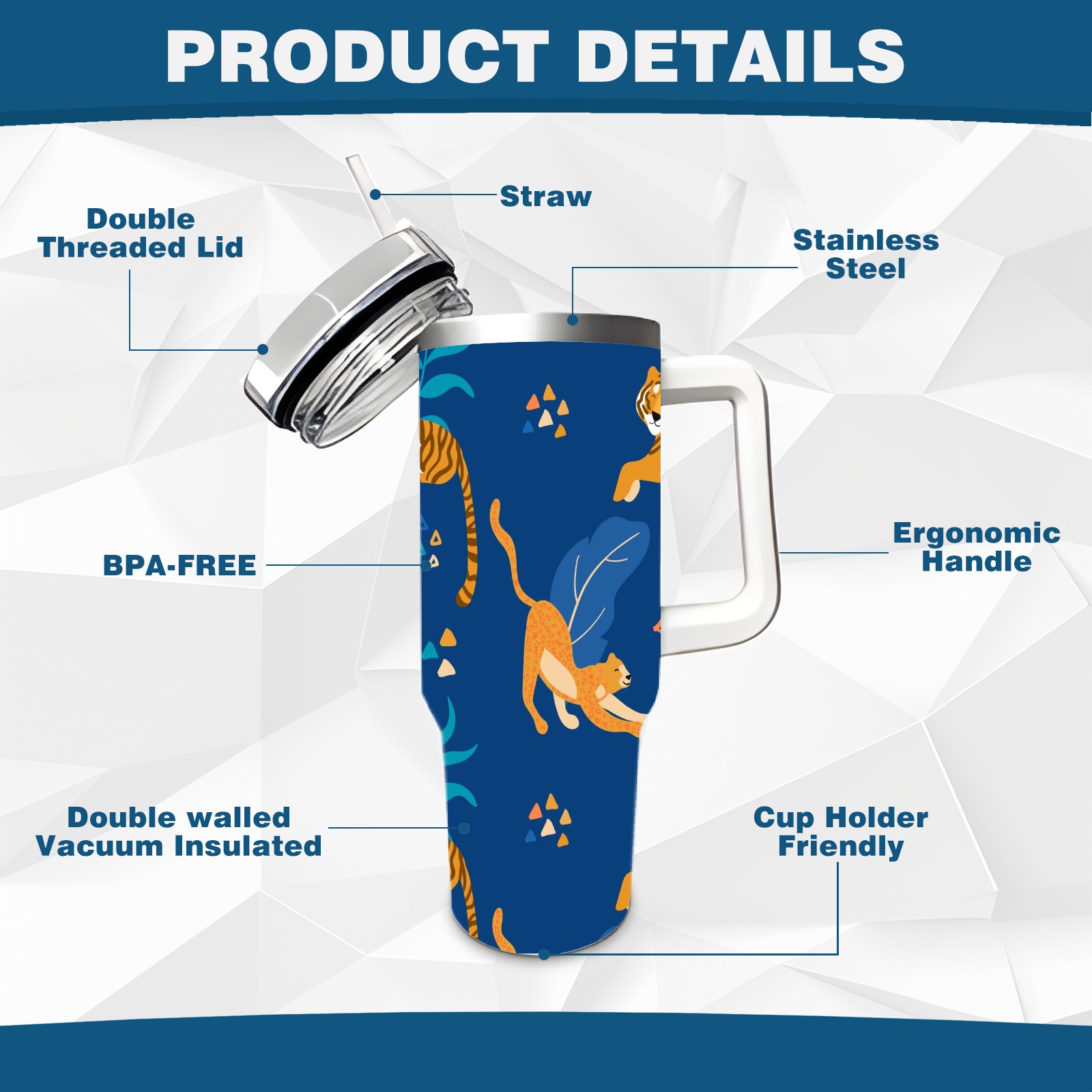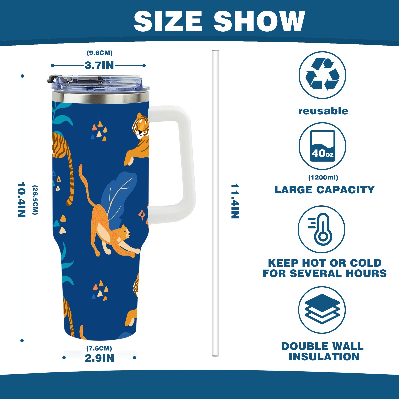 40oz Tigerpatt thermos with lid and straw, leak-proof stainless steel, with handle, spill-proof bottle, convenient for travel(pink)