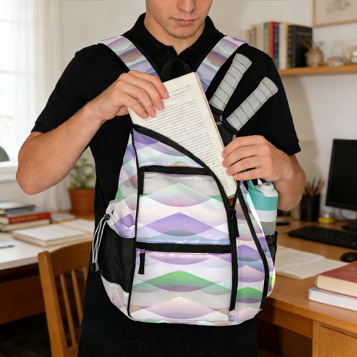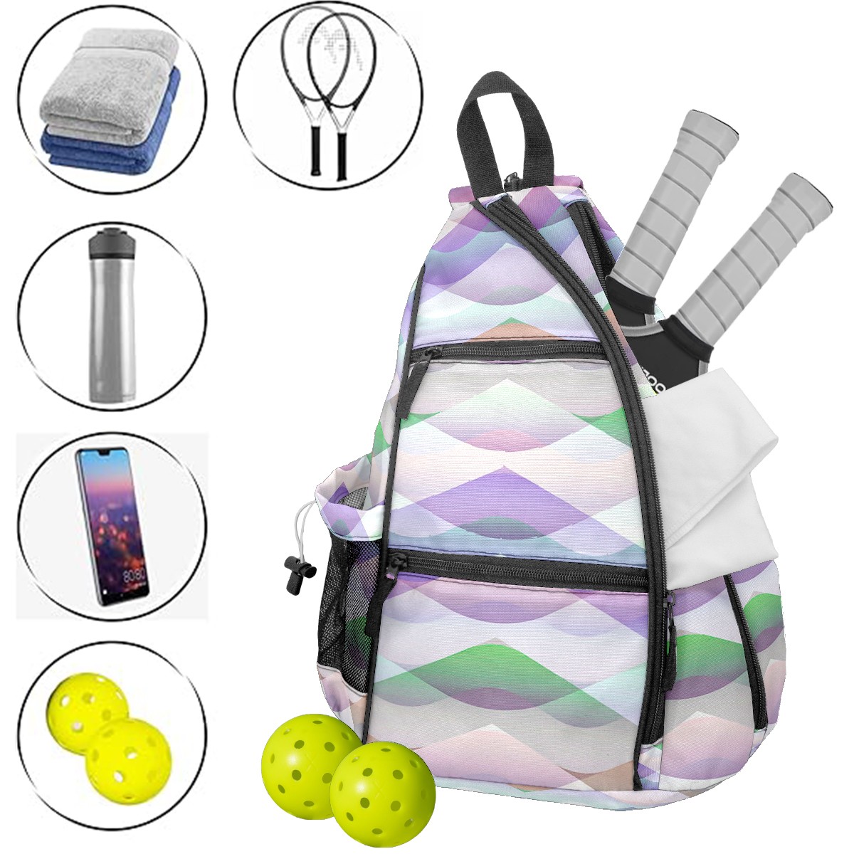 Материал: Прочная нейлоновая ткань + усиленные тканые лямки + дышащий сетчатый карман Размеры: 15×35×45 см / 6×13,8×17,7 дюймов Большая вместимость с множеством отделений – в одной сумке поместится все ваше снаряжение для пикбола: ракетки, мячи, защитная экипировка и бутылка с водой! Разработана для комфортной переноски – утолщенная мягкая спинка в сочетании с регулируемыми дышащими сетчатыми плечевыми ремнями эффективно распределяет вес, снимая боль в плечах и спине, а также мышечное напряжение. Ткань сумки гладкая и приятная на ощупь, деликатная и мягкая, что делает ежедневное использование более комфортным. Гибкие варианты переноски: плечевые лямки имеют съемную молнию, позволяющую свободно регулировать стиль ношения. Идеально подходит в качестве портативной сумки через плечо для ежедневных поездок на работу, отдыха на природе и спортивных мероприятий, а также в качестве практичного и продуманного подарка для друзей, семьи и других игроков в пикбол.