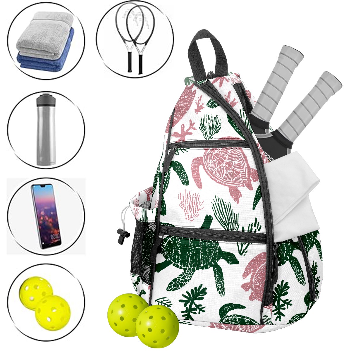 • ✅ Прочный материал Изготовлена из нейлоновой ткани + плетеного ремня + сетчатой корзины: гладкая на ощупь, приятная текстура, долговечная в использовании. ✅ Большой объем + много карманов Размер 153545см/6x13.8x17.7 дюймов, продуманная конструкция с несколькими карманами позволяет удобно разложить аксессуары для пикебола, не беспокоясь о нехватке места. ✅ Максимальный комфорт ношения Подушенное спинное отделение + регулируемые сетчатые плечевые ремни эффективно предотвращают растяжение мышц и боль в плечах, даже при длительном ношении. ✅ Универсальное использование Ремни выполнены по технологии съемного молния — регулируемый способ ношения. Подходит как повседневная поясная сумка для поездок, прогулок и других мероприятий, также является идеальным подарком для друзей и близких!