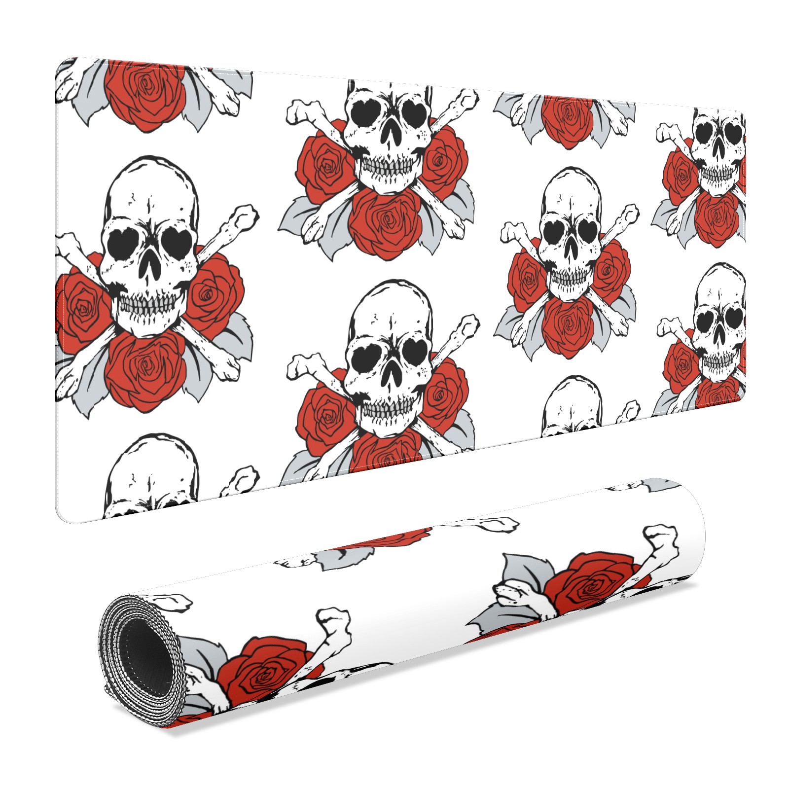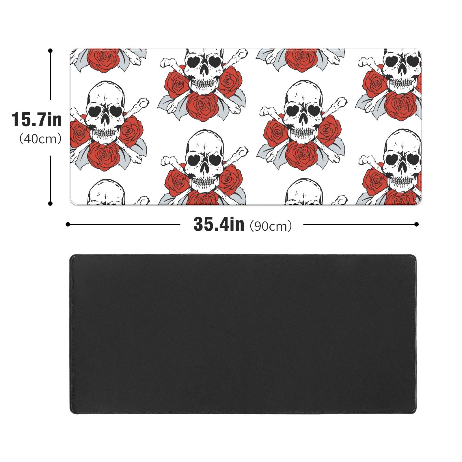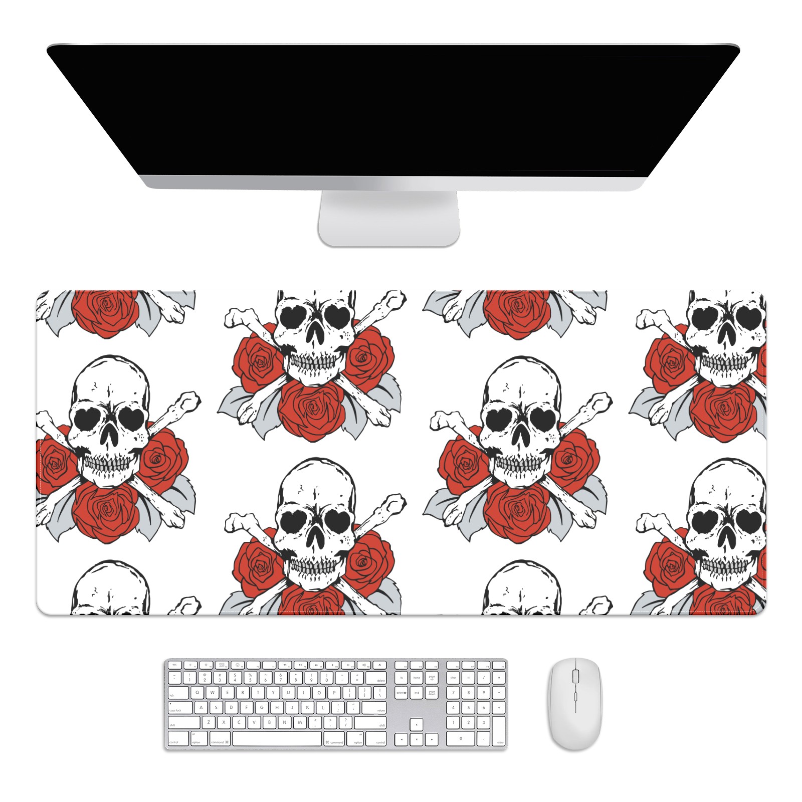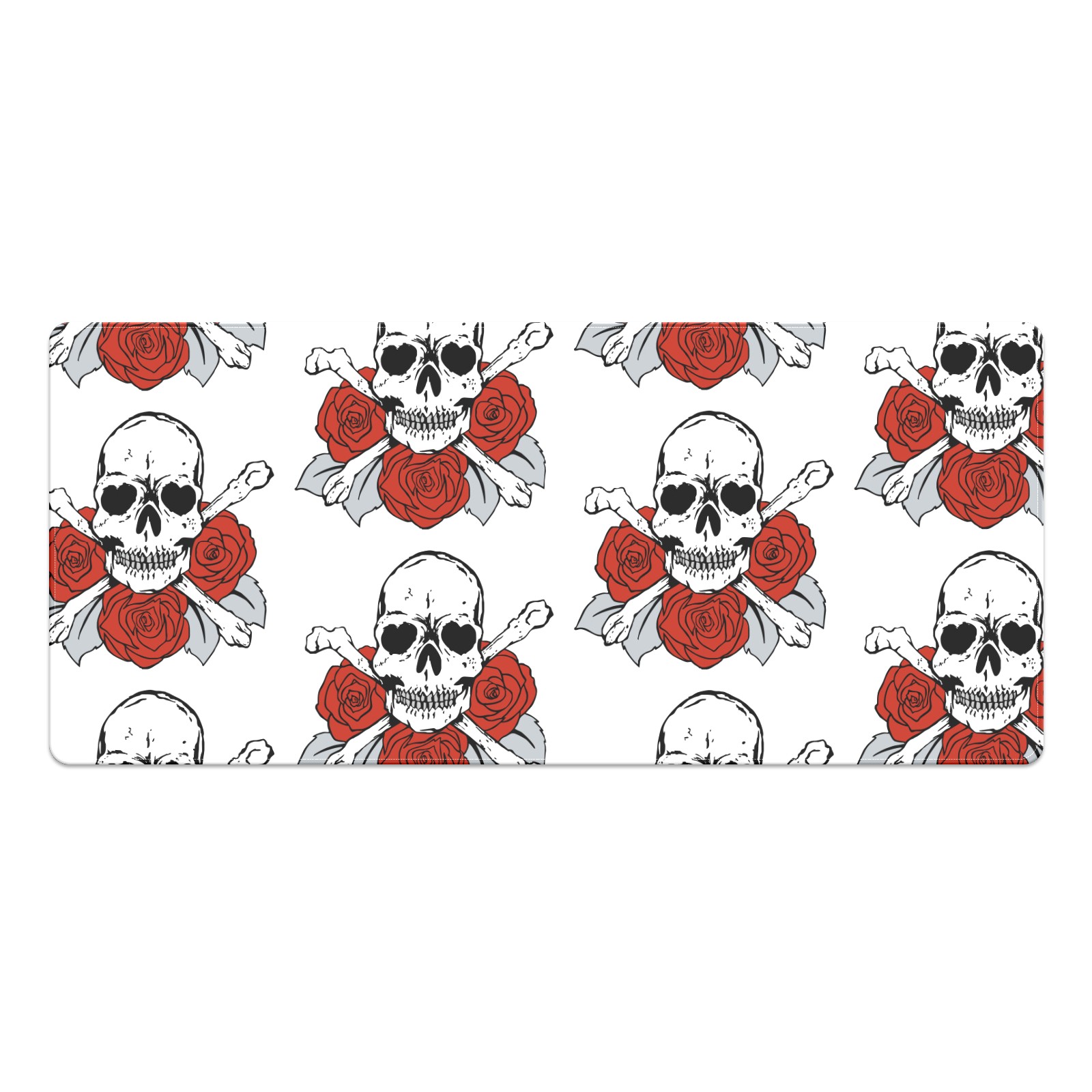 Large Mouse Pad for Desktop, Cute Desk Mat Pad Protector for Work & Gaming, Aesthetic Pretty Anti-Slip Laptop Blotter Cover for Office School Home Supplies, Skulls Roses Flower Red White , 35.4inx15.7in