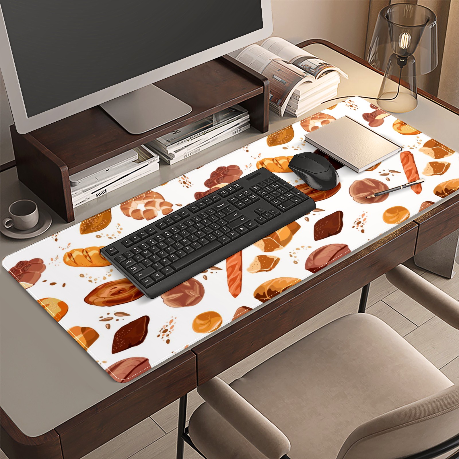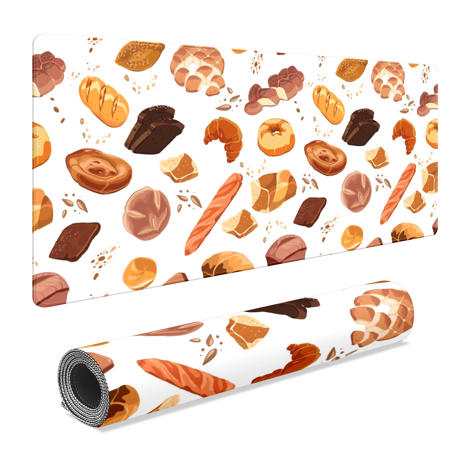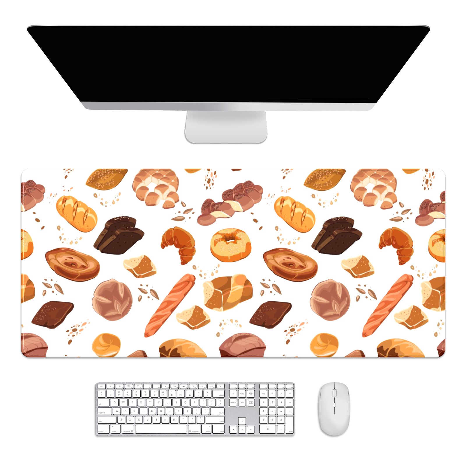 Large Mouse Pad for Desktop, Cute Desk Mat Pad Protector for Work & Gaming, Aesthetic Pretty Anti-Slip Laptop Blotter Cover for Office School Home Supplies, Croissant Toast Bread Colorful , 35.4inx15.7in