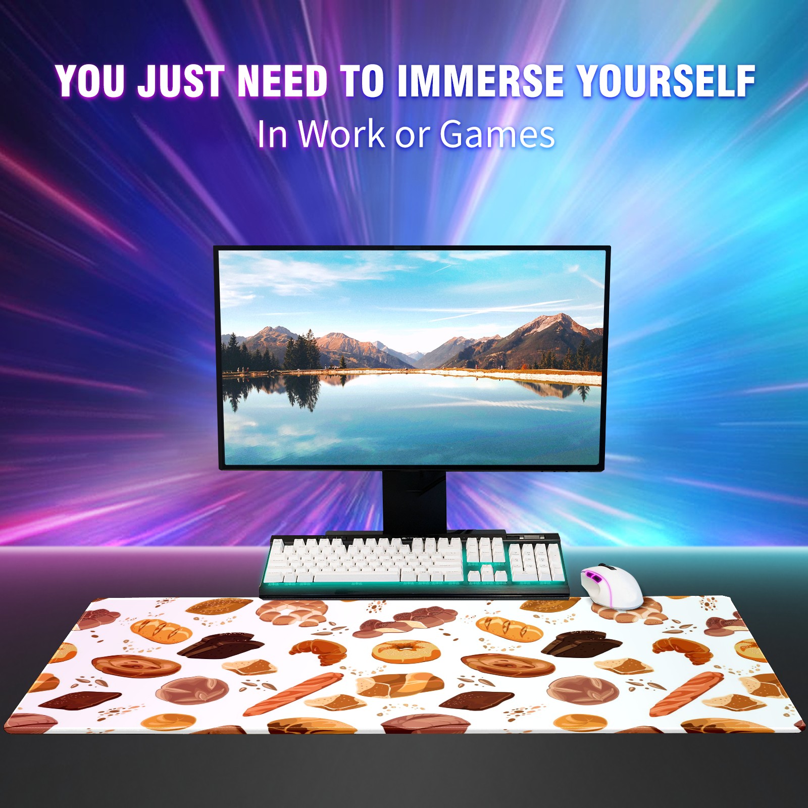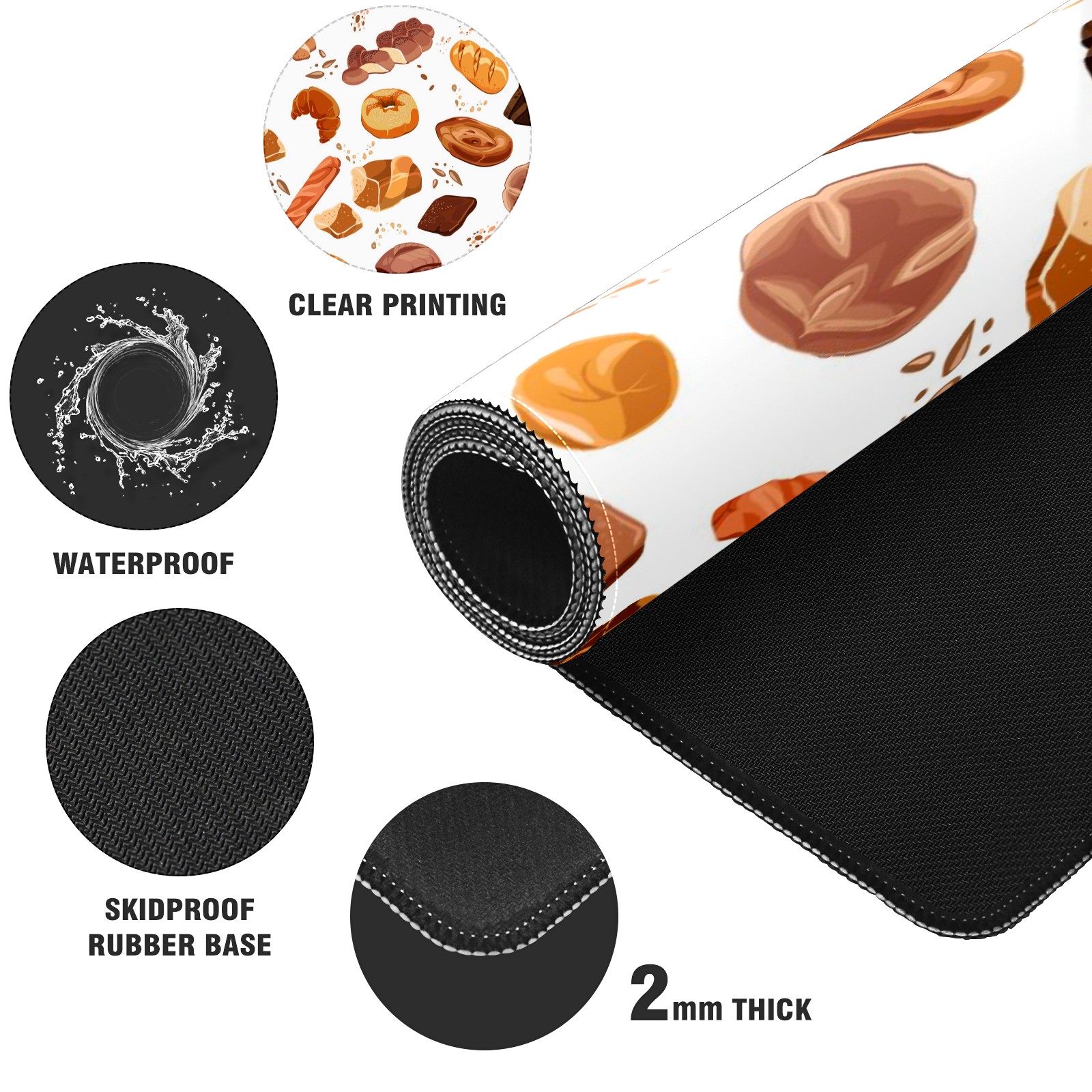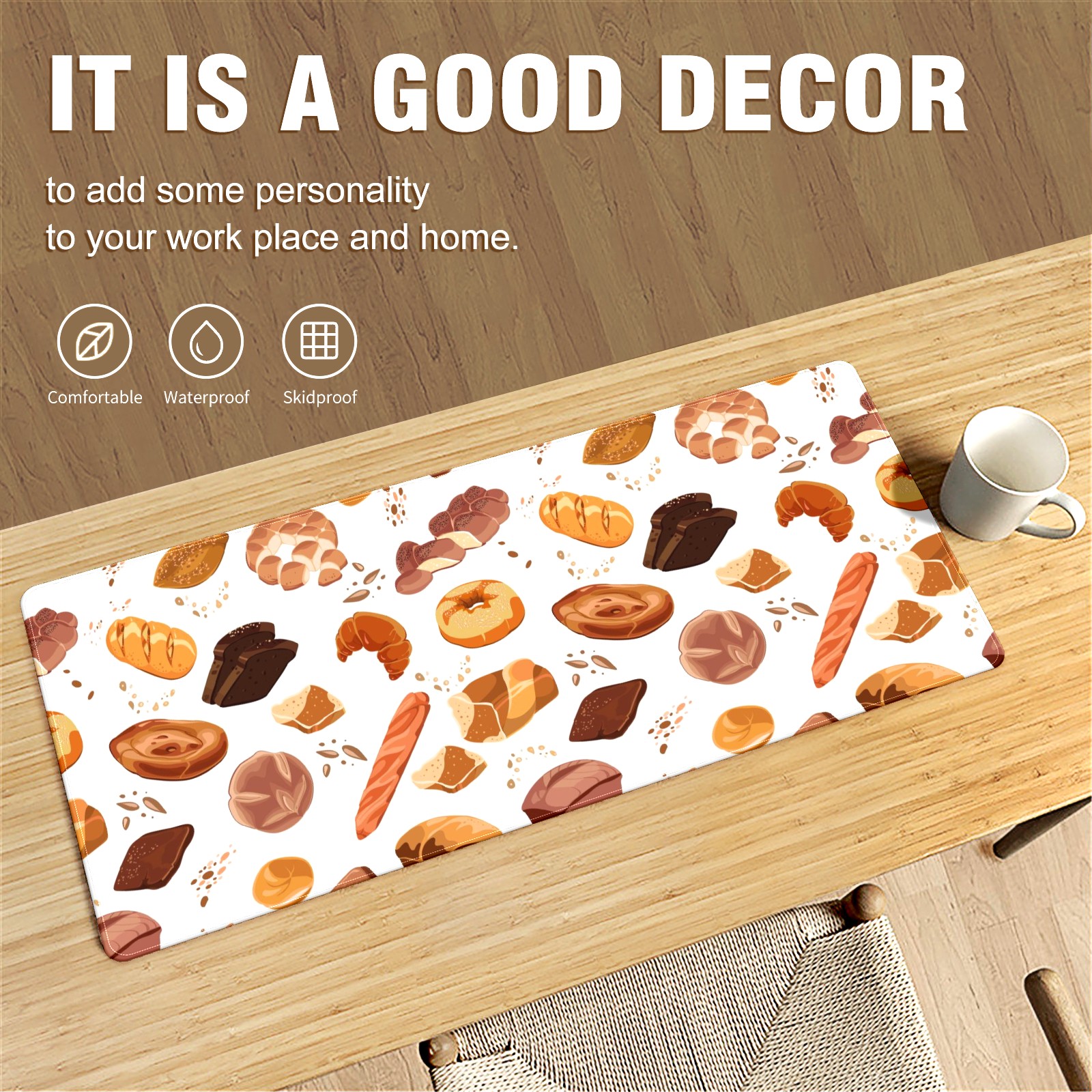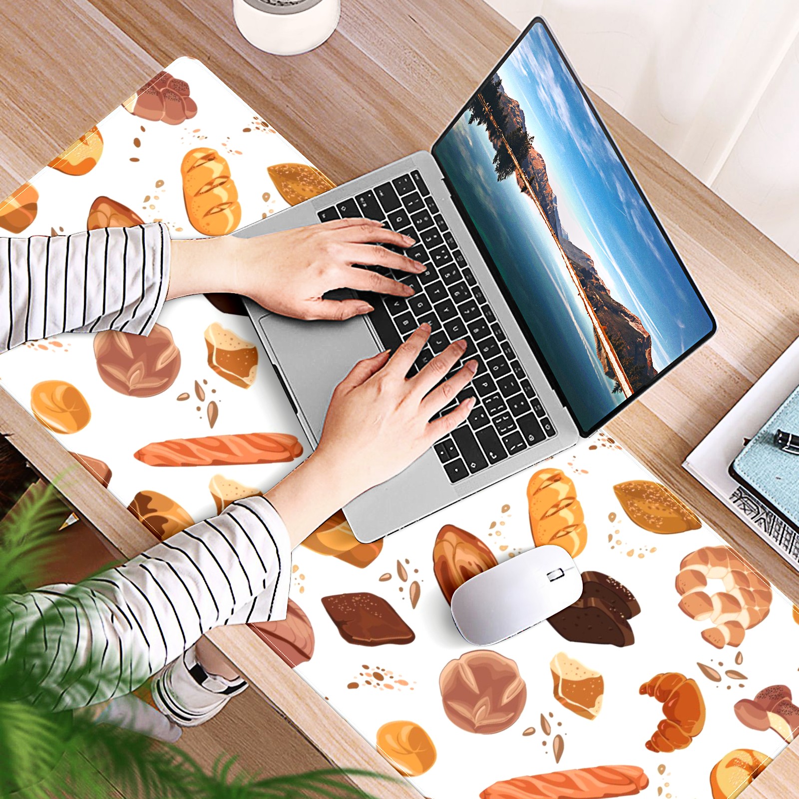 Large Mouse Pad for Desktop, Cute Desk Mat Pad Protector for Work & Gaming, Aesthetic Pretty Anti-Slip Laptop Blotter Cover for Office School Home Supplies, Croissant Toast Bread Colorful , 35.4inx15.7in