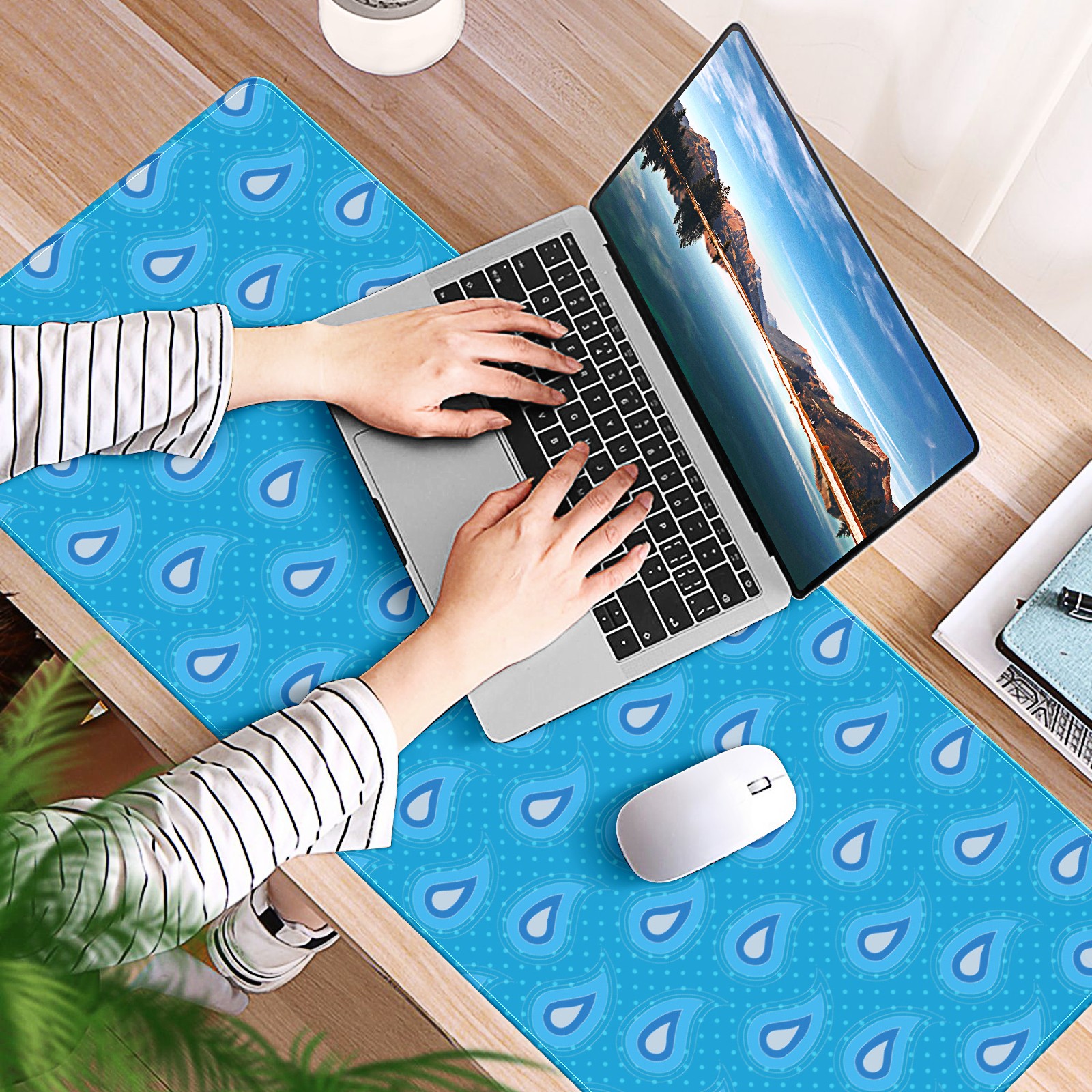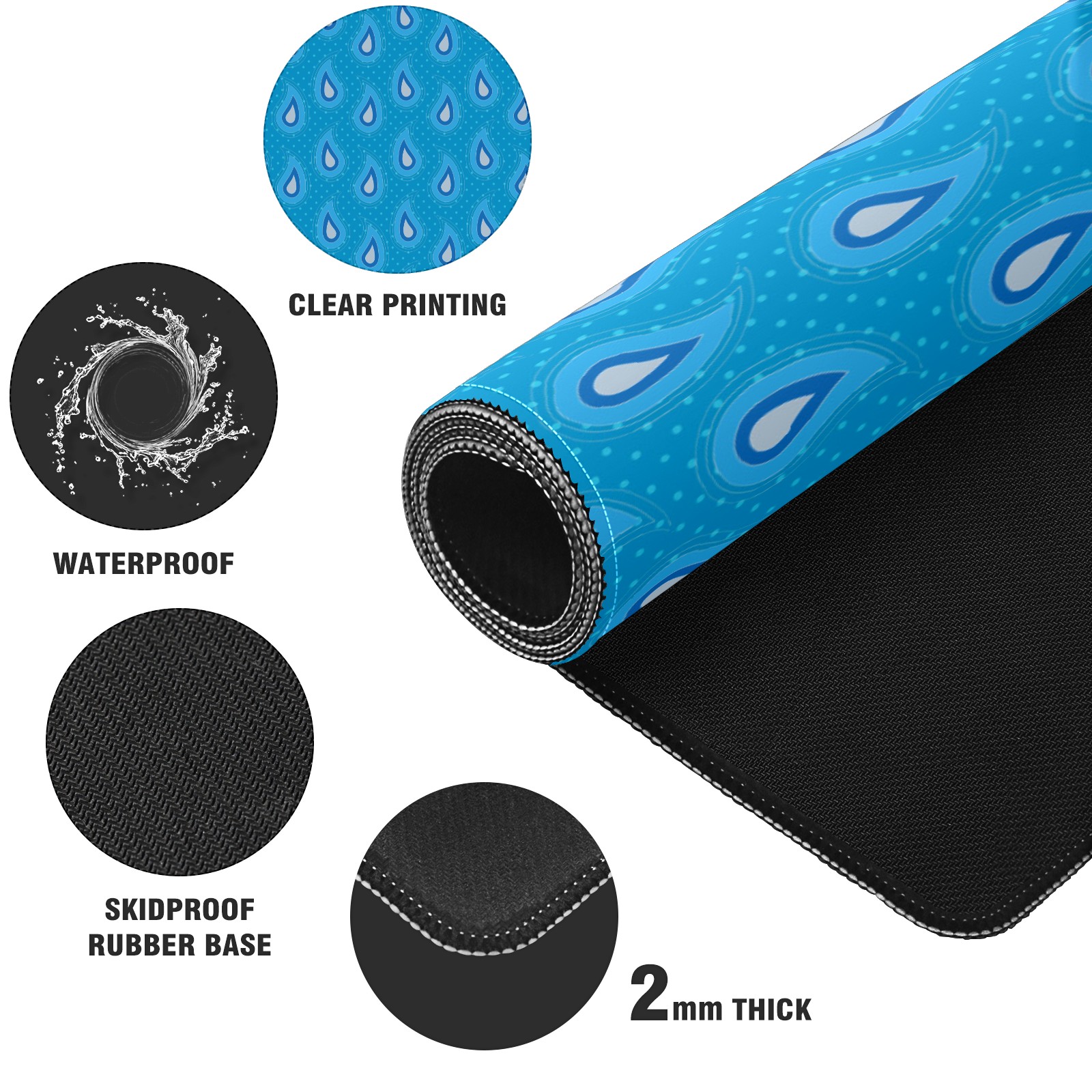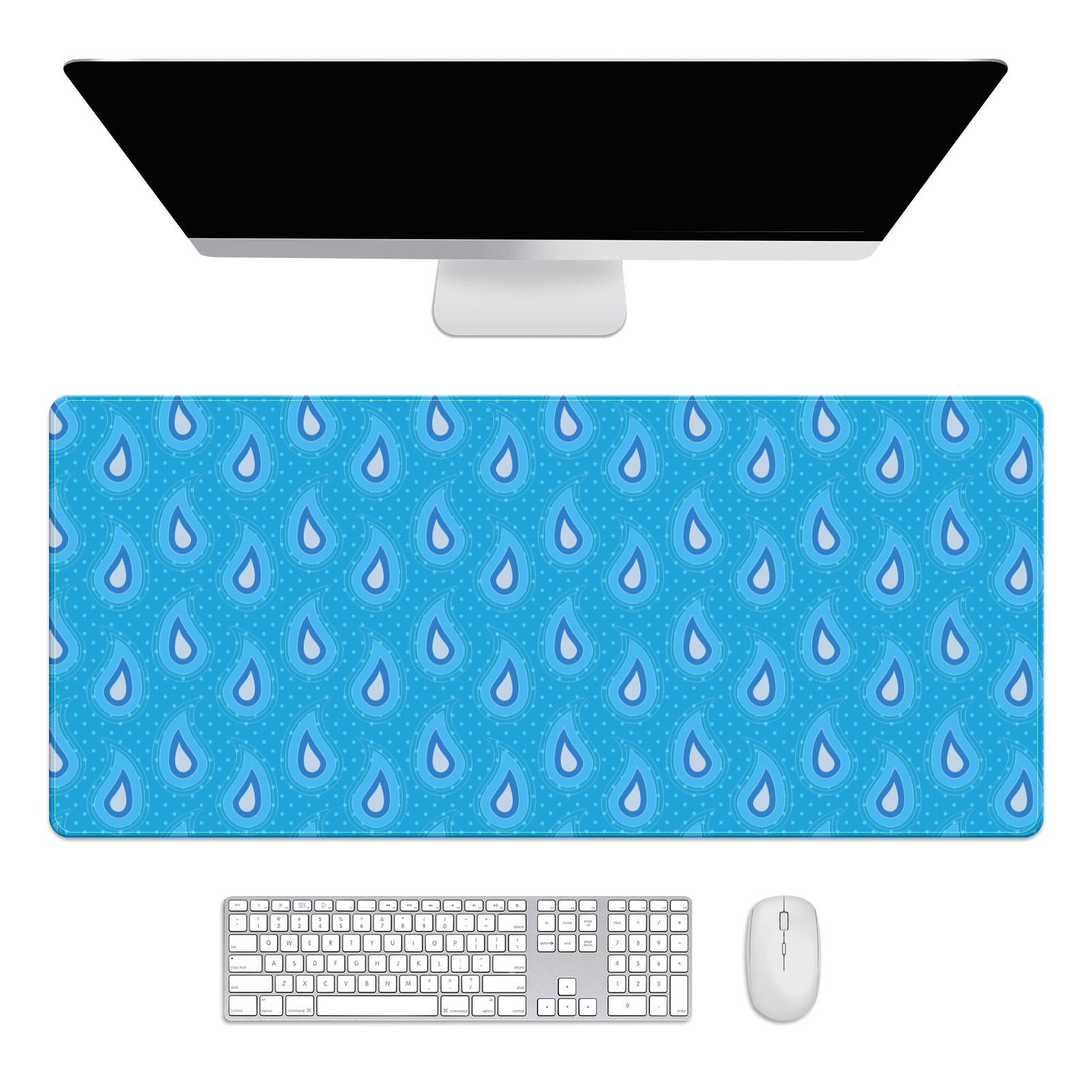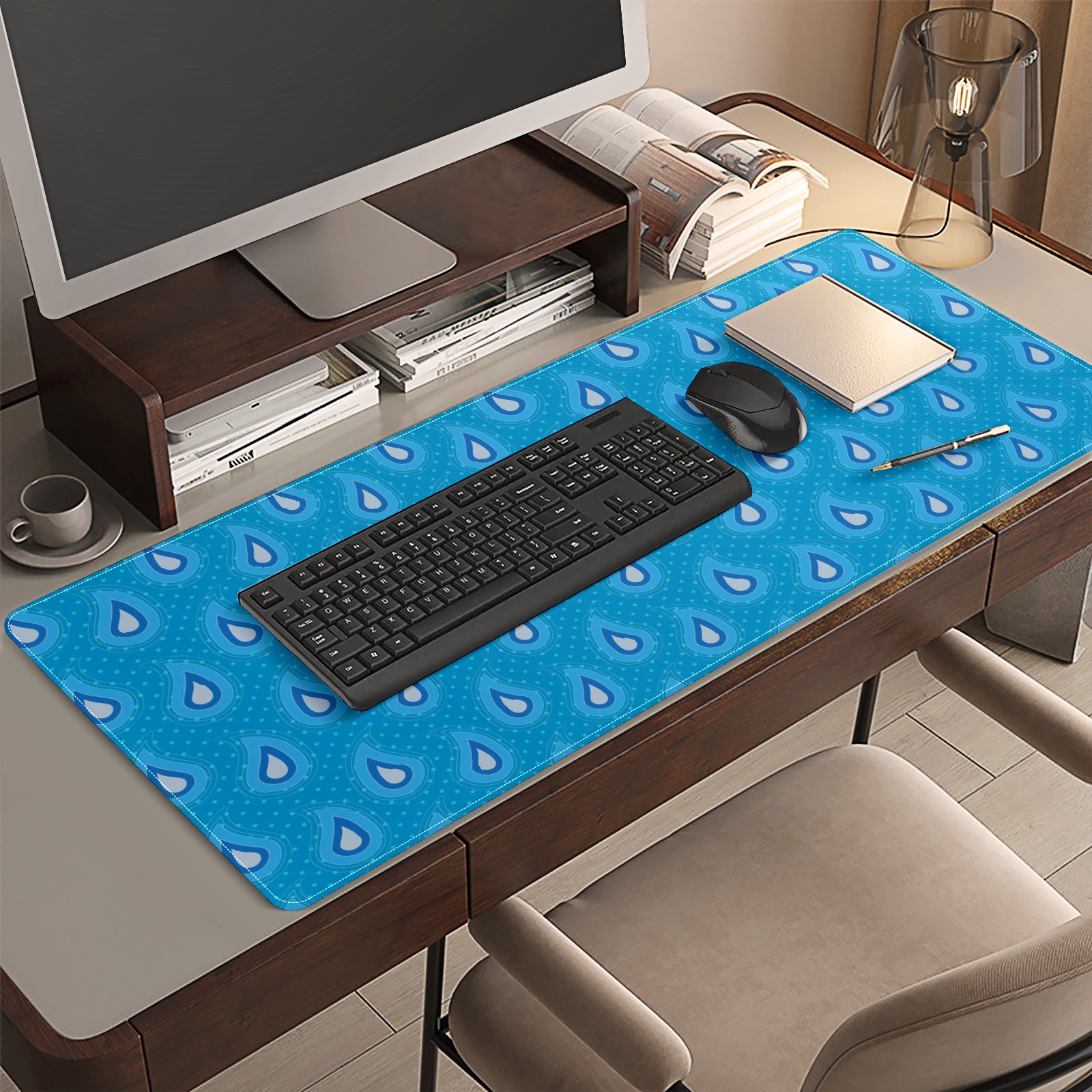 Large Mouse Pad for Desktop, Cute Desk Mat Pad Protector for Work & Gaming, Aesthetic Pretty Anti-Slip Laptop Blotter Cover for Office School Home Supplies, Paisley Spot Blue Seamless , 35.4inx15.7in