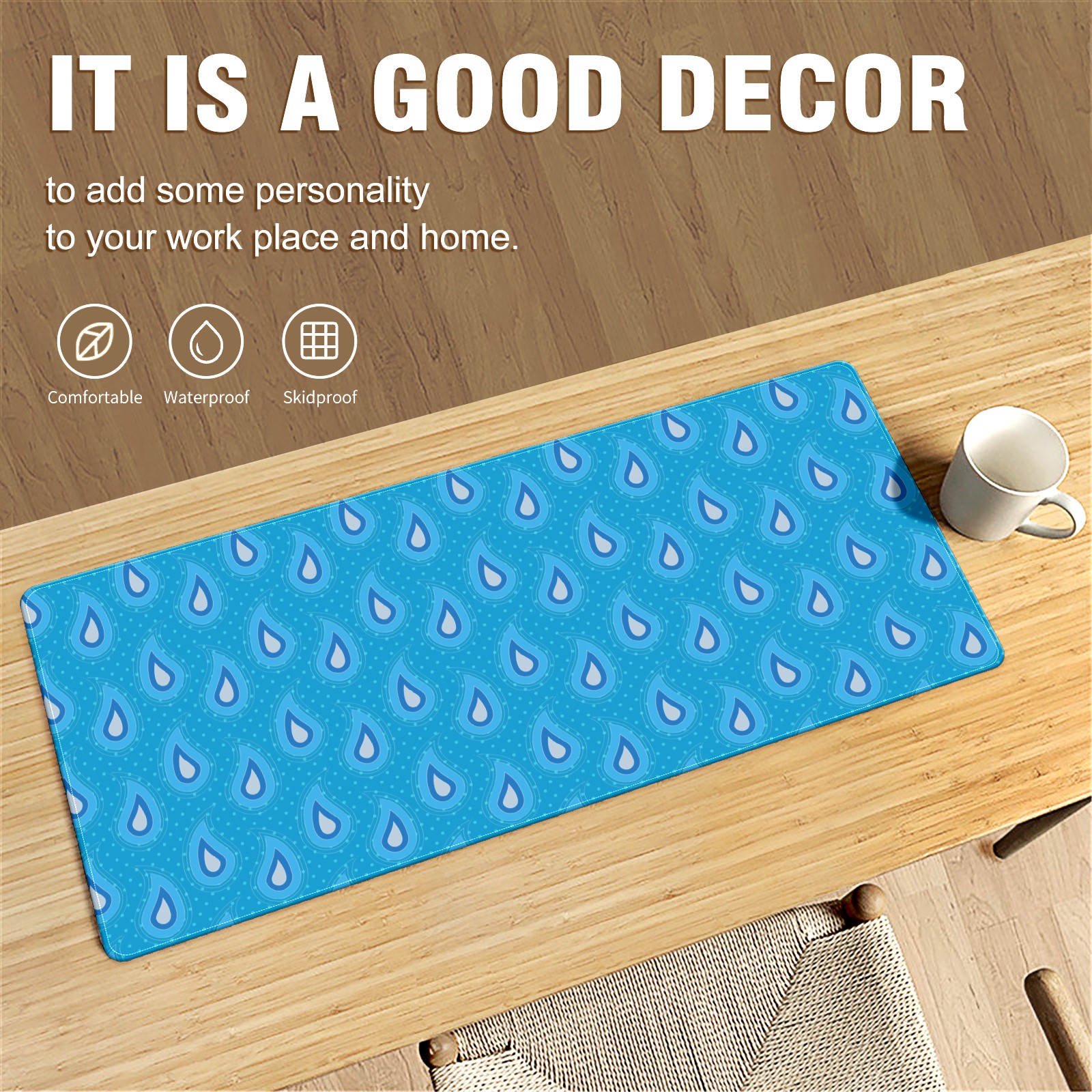 • <p>This 35.4” × 15.7” extended desk mat offers ample space for your keyboard, mouse and essentials, working as a smooth work/writing pad while protecting your desktop from scratches.</p><p>With stylish artistic patterns, it adds personality to your home office, study or gaming setup. The high-density woven surface ensures precise, smooth mouse tracking for work and gaming.</p><p>Featuring an anti-slip natural rubber base for firm grip and stability, the mat is soft, elastic and odorless. Reinforced stitched edges prevent fraying and curling for long-lasting durability.</p>