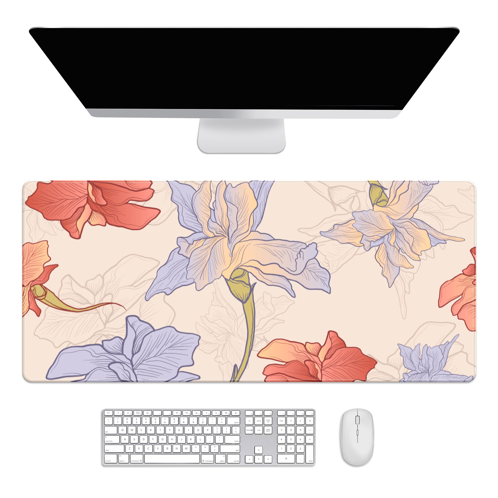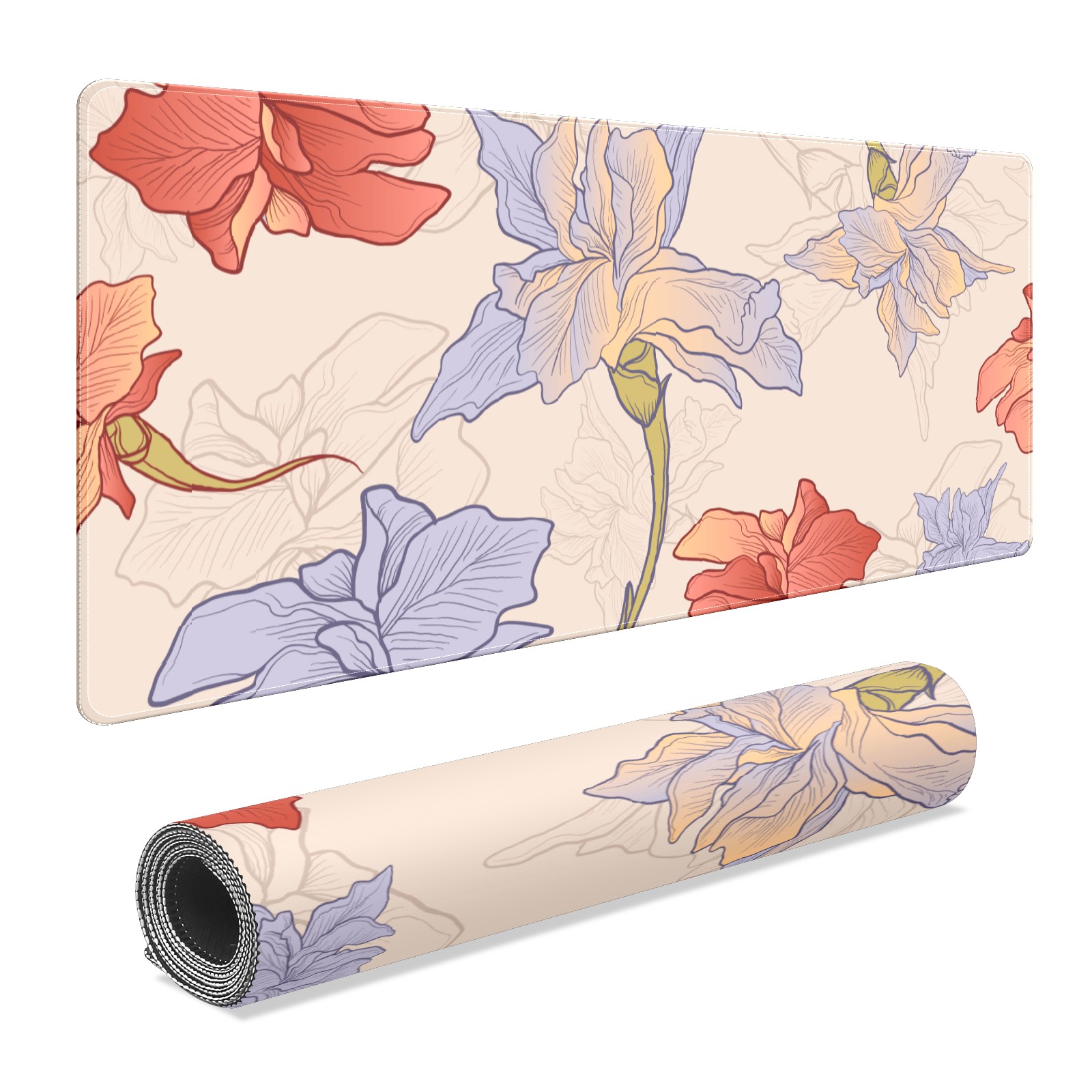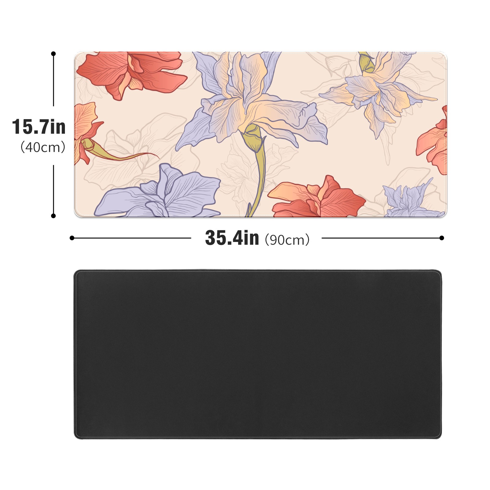 Large Mouse Pad for Desktop, Cute Desk Mat Pad Protector for Work & Gaming, Aesthetic Pretty Anti-Slip Laptop Blotter Cover for Office School Home Supplies, Iris Flower Bloom Red Violet , 35.4inx15.7in