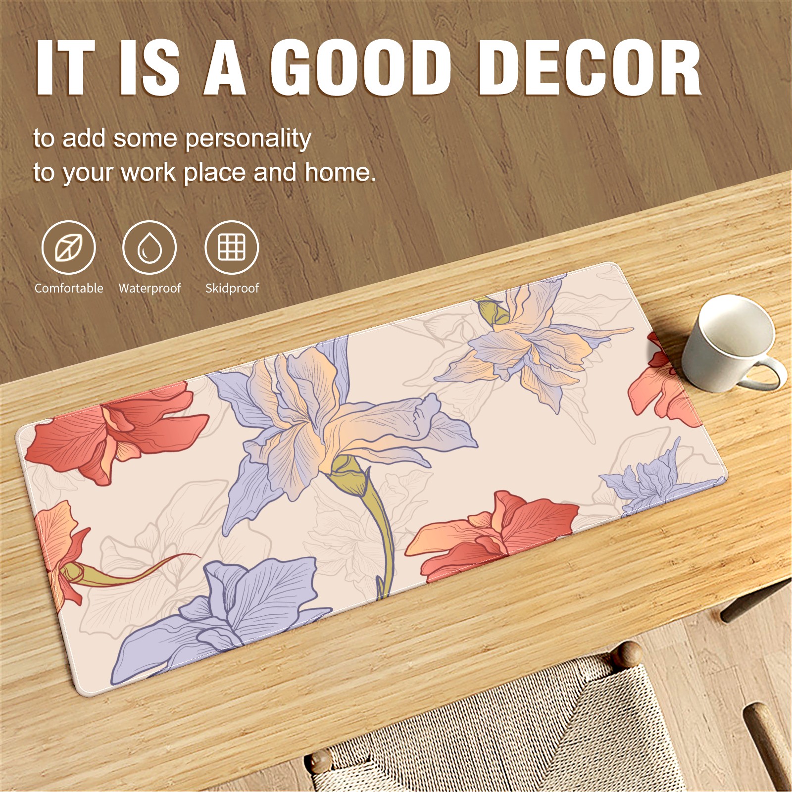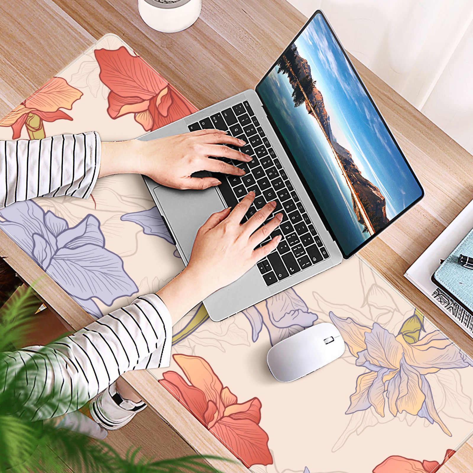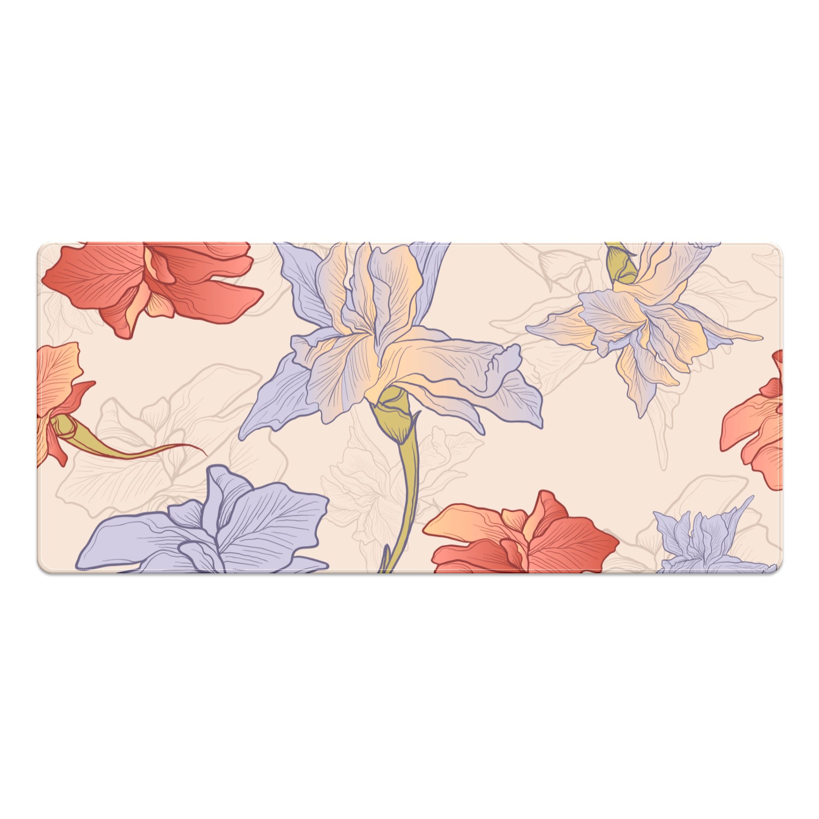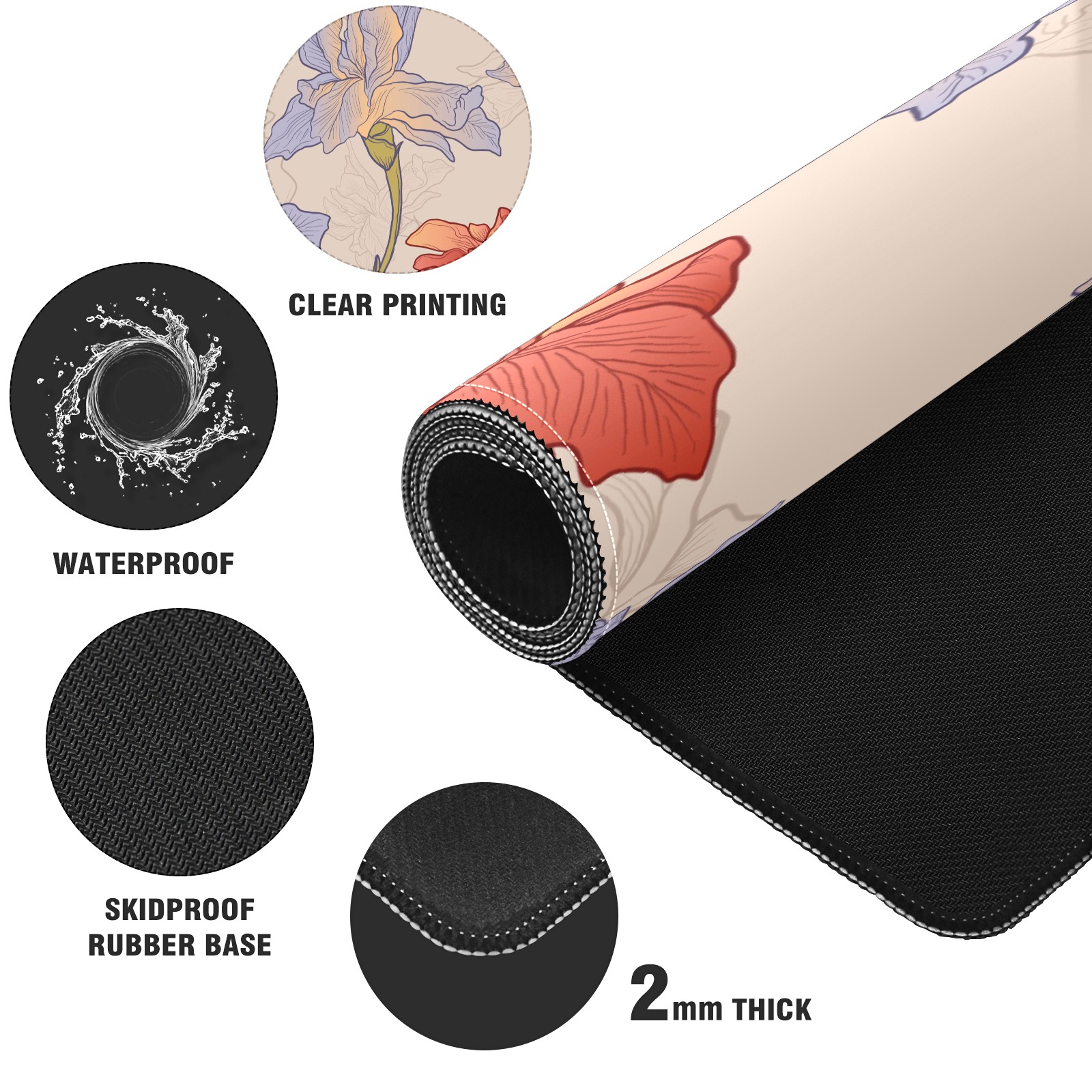 Large Mouse Pad for Desktop, Cute Desk Mat Pad Protector for Work & Gaming, Aesthetic Pretty Anti-Slip Laptop Blotter Cover for Office School Home Supplies, Iris Flower Bloom Red Violet , 35.4inx15.7in