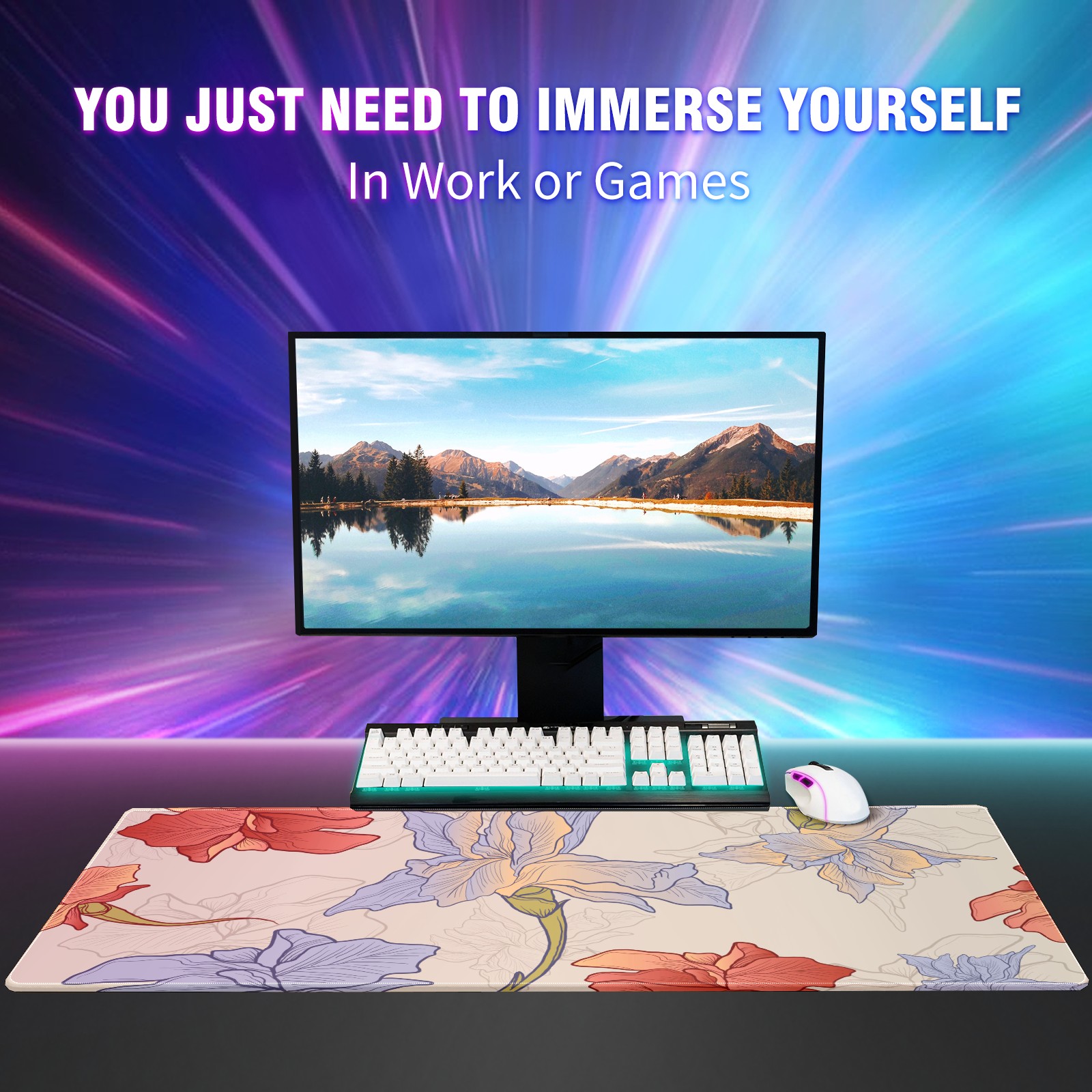 <p>This 35.4” × 15.7” extended desk mat offers ample space for your keyboard, mouse and essentials, working as a smooth work/writing pad while protecting your desktop from scratches.</p><p>With stylish artistic patterns, it adds personality to your home office, study or gaming setup. The high-density woven surface ensures precise, smooth mouse tracking for work and gaming.</p><p>Featuring an anti-slip natural rubber base for firm grip and stability, the mat is soft, elastic and odorless. Reinforced stitched edges prevent fraying and curling for long-lasting durability.</p>