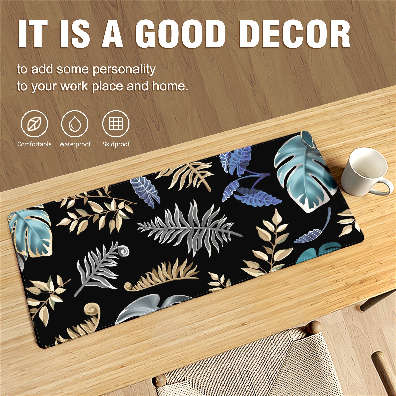 • <p>This 35.4” × 15.7” extended desk mat offers ample space for your keyboard, mouse and essentials, working as a smooth work/writing pad while protecting your desktop from scratches.</p><p>With stylish artistic patterns, it adds personality to your home office, study or gaming setup. The high-density woven surface ensures precise, smooth mouse tracking for work and gaming.</p><p>Featuring an anti-slip natural rubber base for firm grip and stability, the mat is soft, elastic and odorless. Reinforced stitched edges prevent fraying and curling for long-lasting durability.</p>