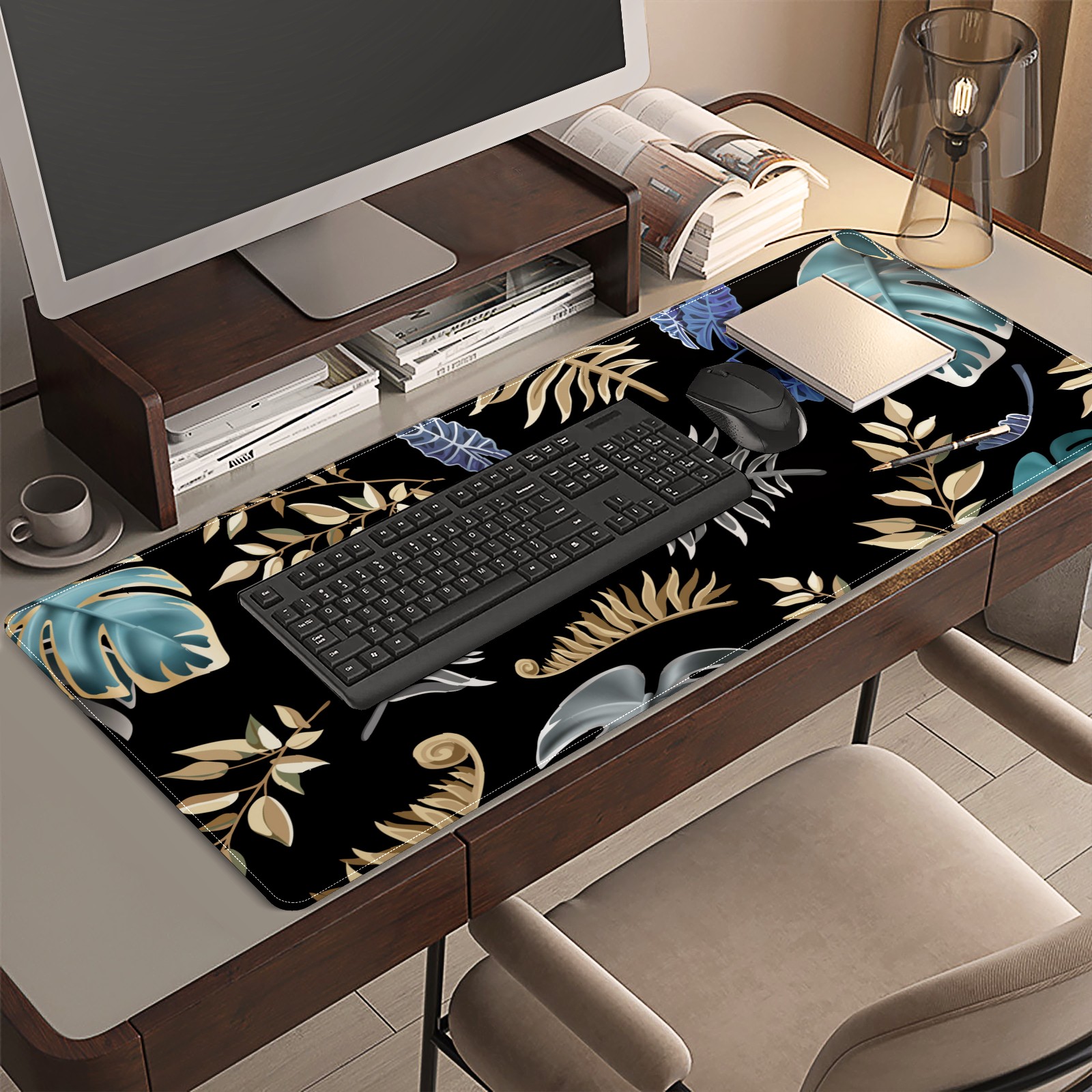<p>This 35.4” × 15.7” extended desk mat offers ample space for your keyboard, mouse and essentials, working as a smooth work/writing pad while protecting your desktop from scratches.</p><p>With stylish artistic patterns, it adds personality to your home office, study or gaming setup. The high-density woven surface ensures precise, smooth mouse tracking for work and gaming.</p><p>Featuring an anti-slip natural rubber base for firm grip and stability, the mat is soft, elastic and odorless. Reinforced stitched edges prevent fraying and curling for long-lasting durability.</p>