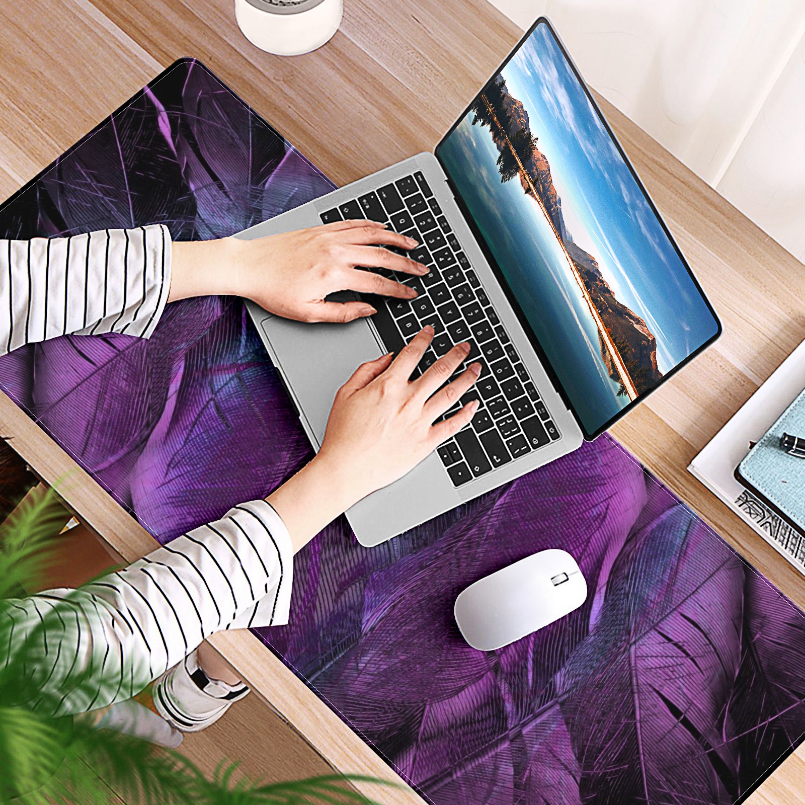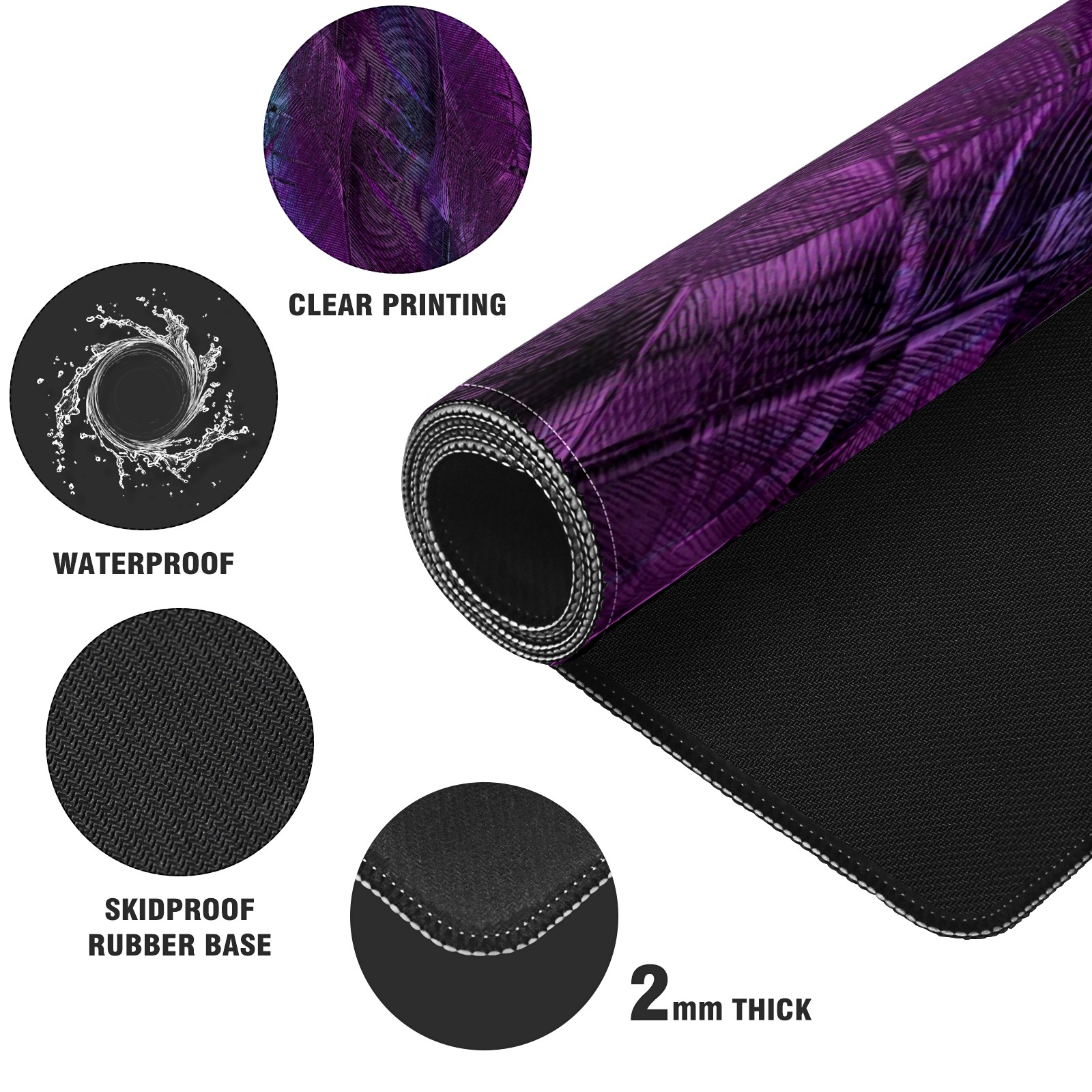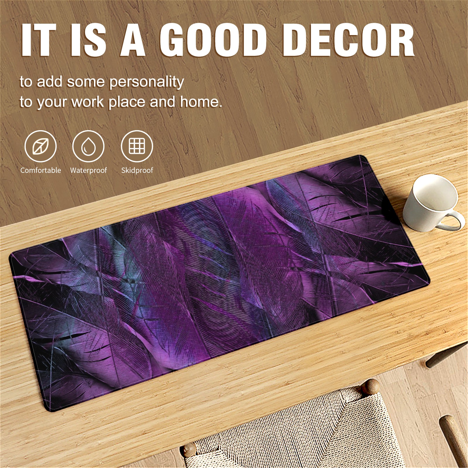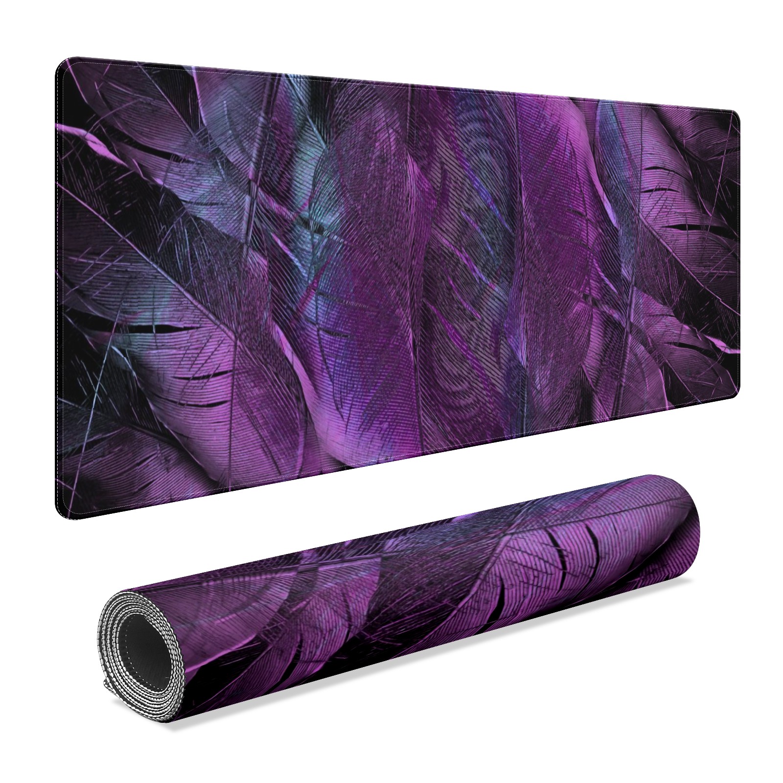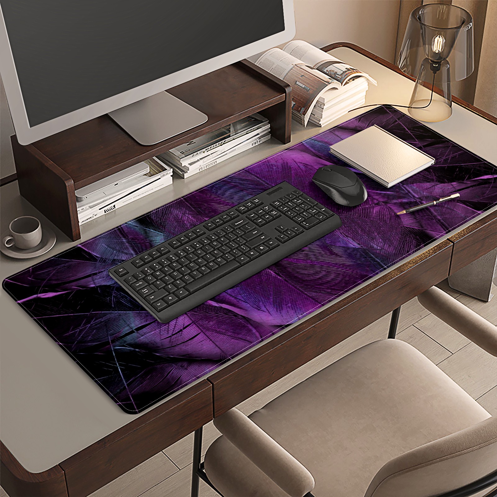 Large Mouse Pad for Desktop, Cute Desk Mat Pad Protector for Work & Gaming, Aesthetic Pretty Anti-Slip Laptop Blotter Cover for Office School Home Supplies, Purple Feather , 35.4inx15.7in