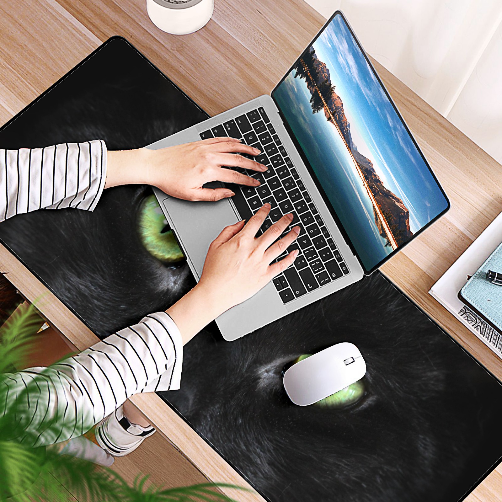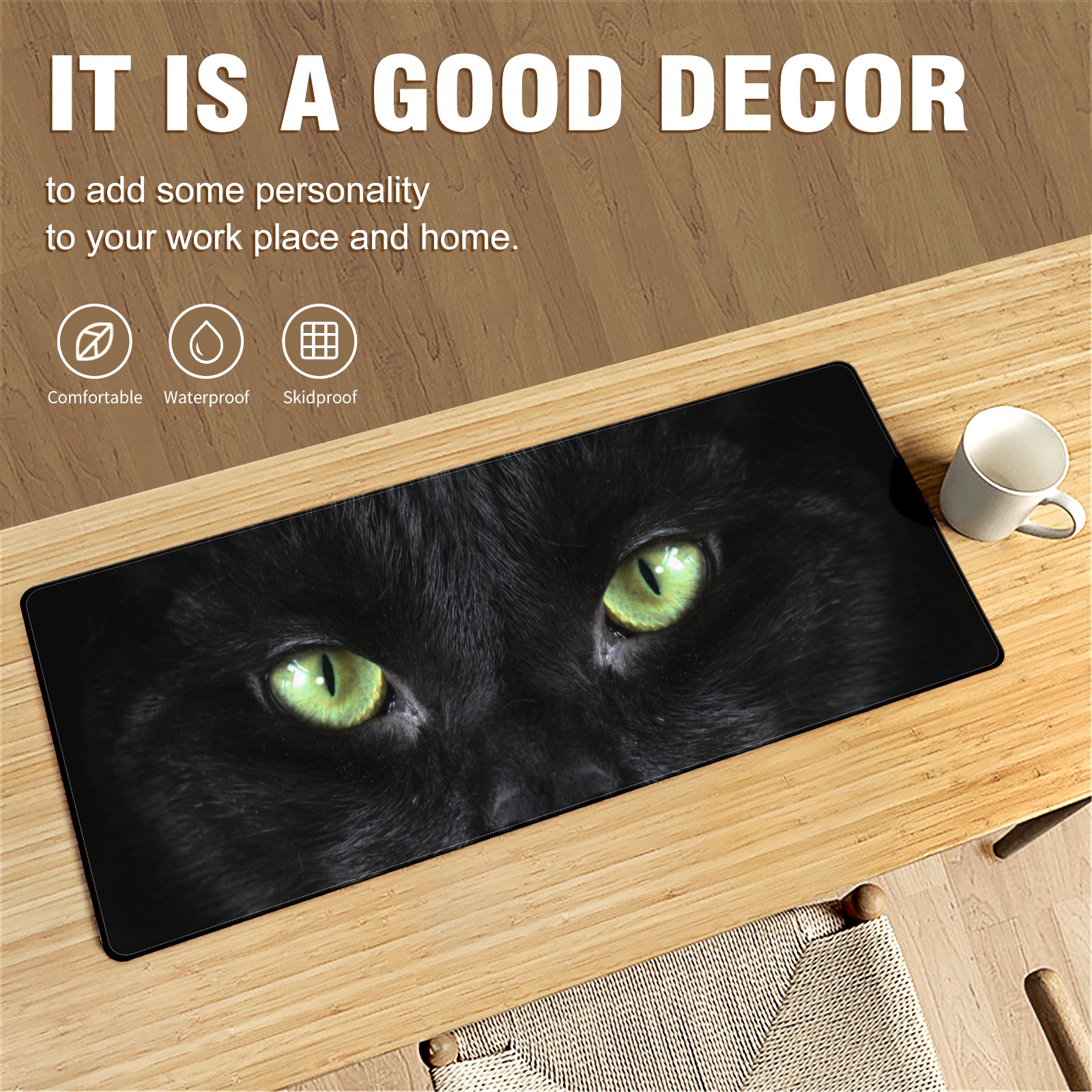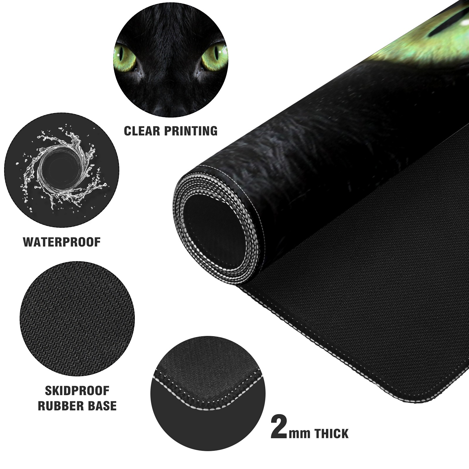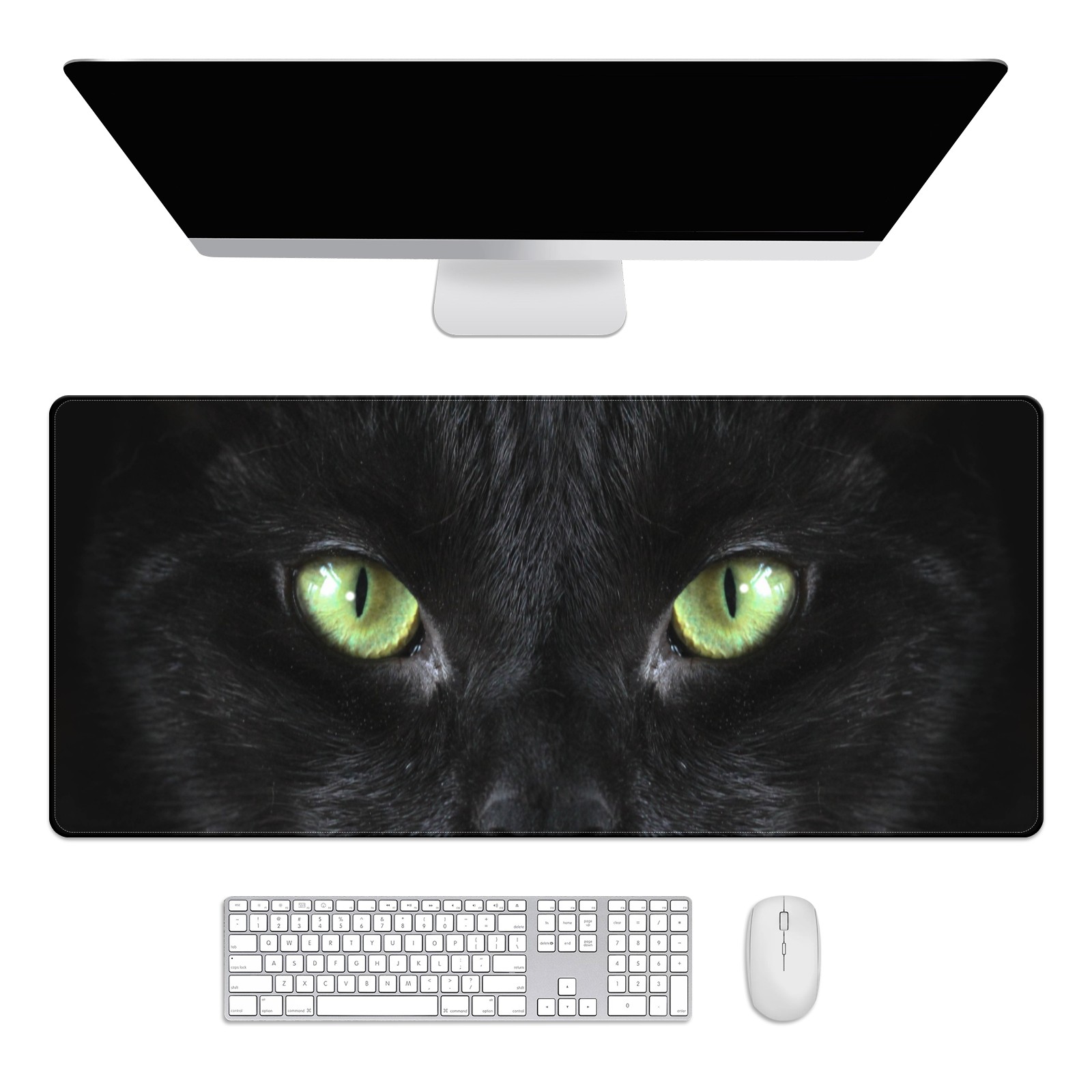 Large Mouse Pad for Desktop, Cute Desk Mat Pad Protector for Work & Gaming, Aesthetic Pretty Anti-Slip Laptop Blotter Cover for Office School Home Supplies, Black Cat , 35.4inx15.7in