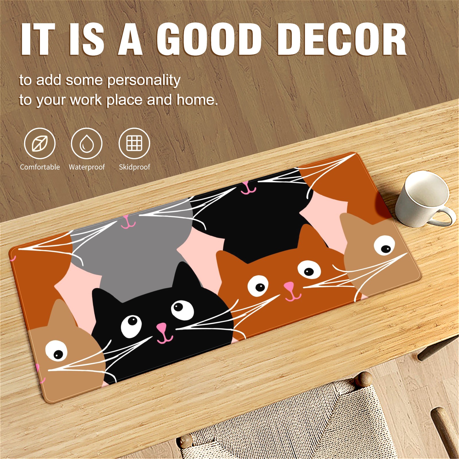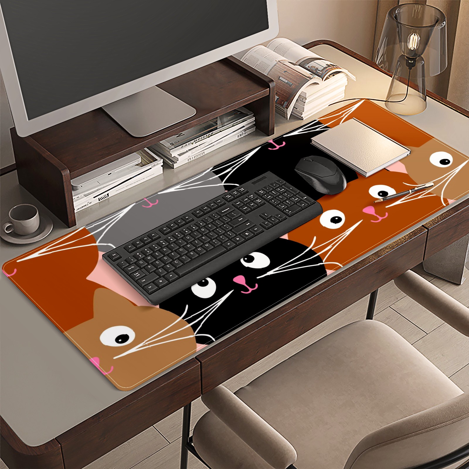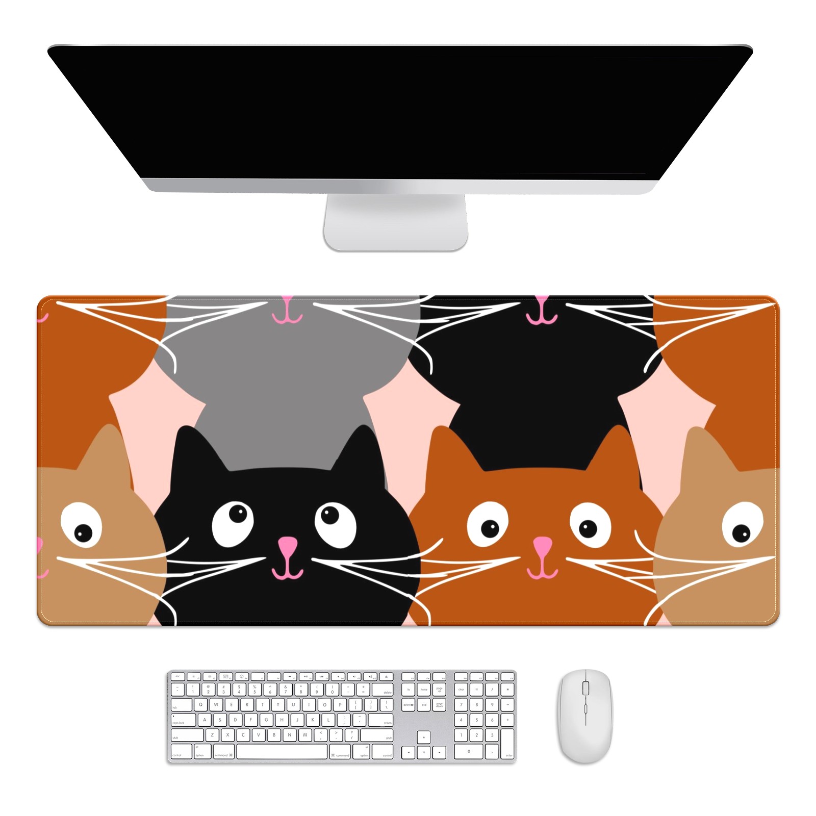 Large Mouse Pad for Desktop, Cute Desk Mat Pad Protector for Work & Gaming, Aesthetic Pretty Anti-Slip Laptop Blotter Cover for Office School Home Supplies, Seamless Cat , 35.4inx15.7in