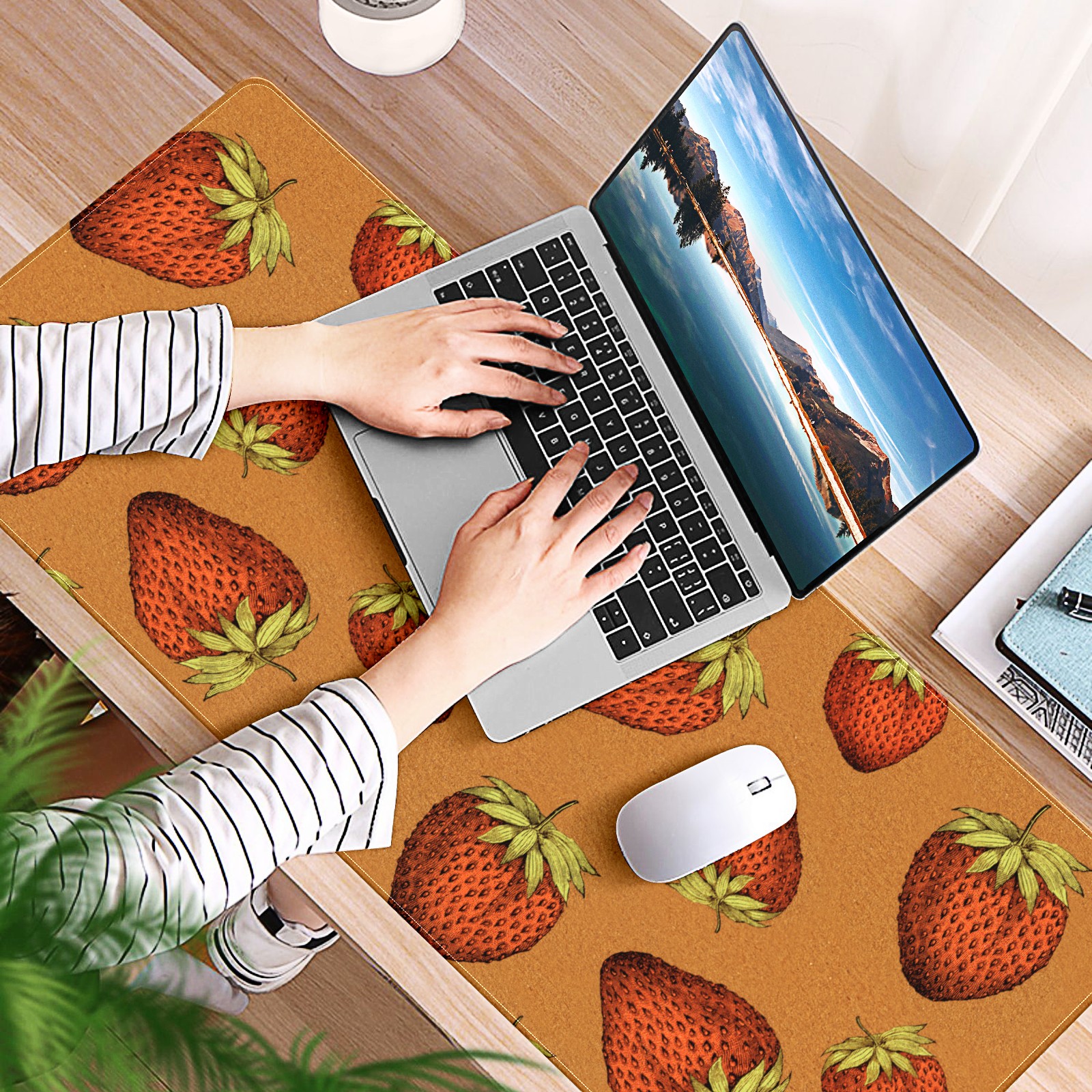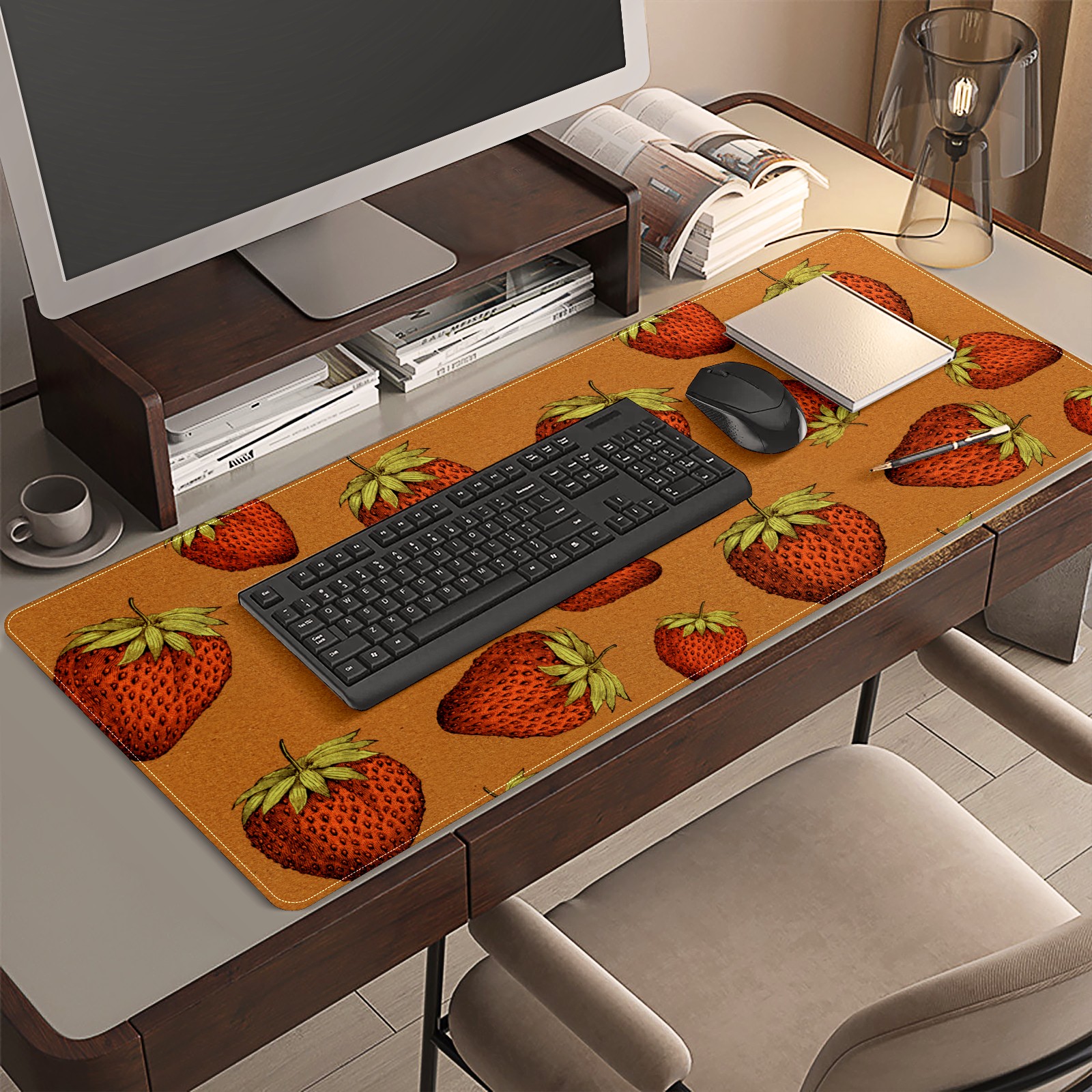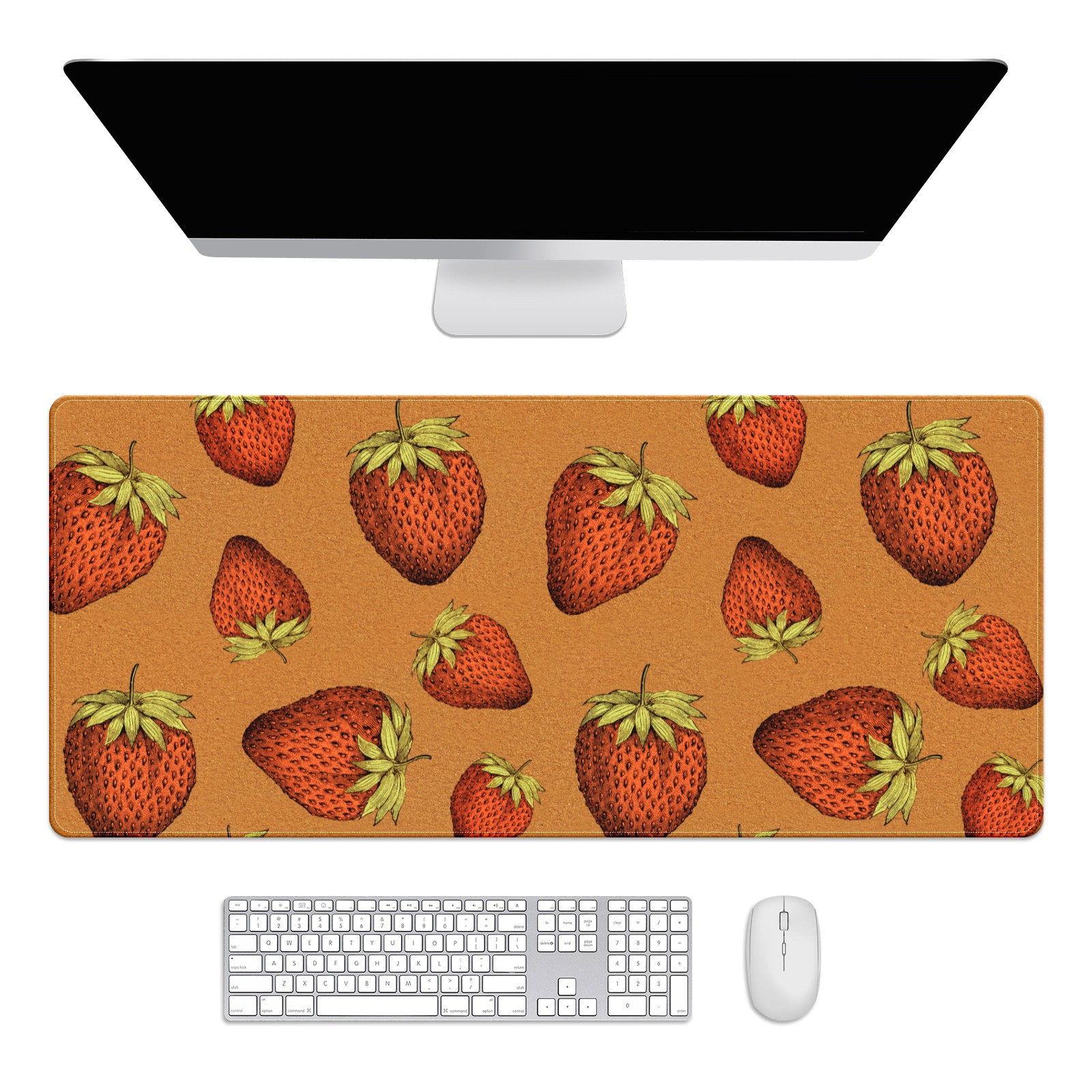 Large Mouse Pad for Desktop, Cute Desk Mat Pad Protector for Work & Gaming, Aesthetic Pretty Anti-Slip Laptop Blotter Cover for Office School Home Supplies, Red Strawberry , 35.4inx15.7in