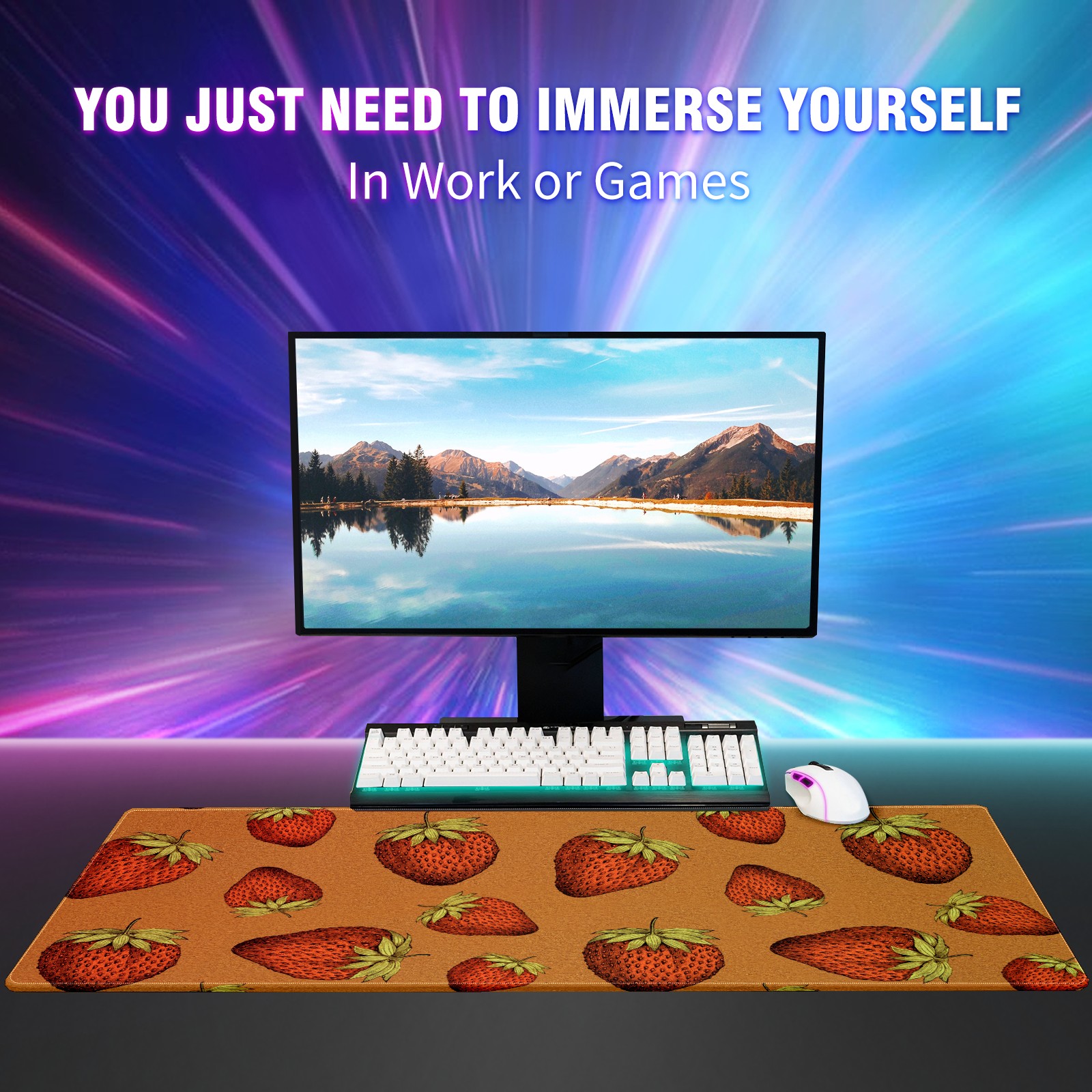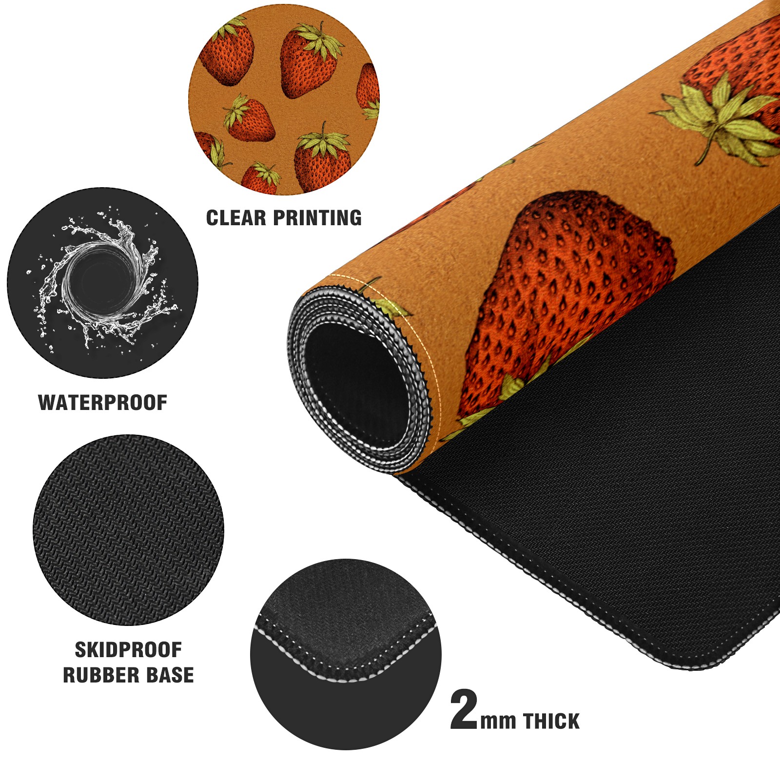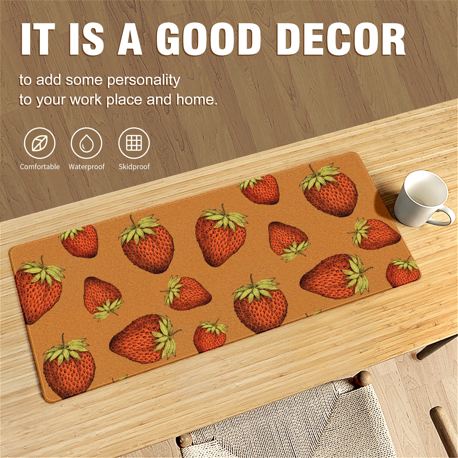 Large Mouse Pad for Desktop, Cute Desk Mat Pad Protector for Work & Gaming, Aesthetic Pretty Anti-Slip Laptop Blotter Cover for Office School Home Supplies, Red Strawberry , 35.4inx15.7in