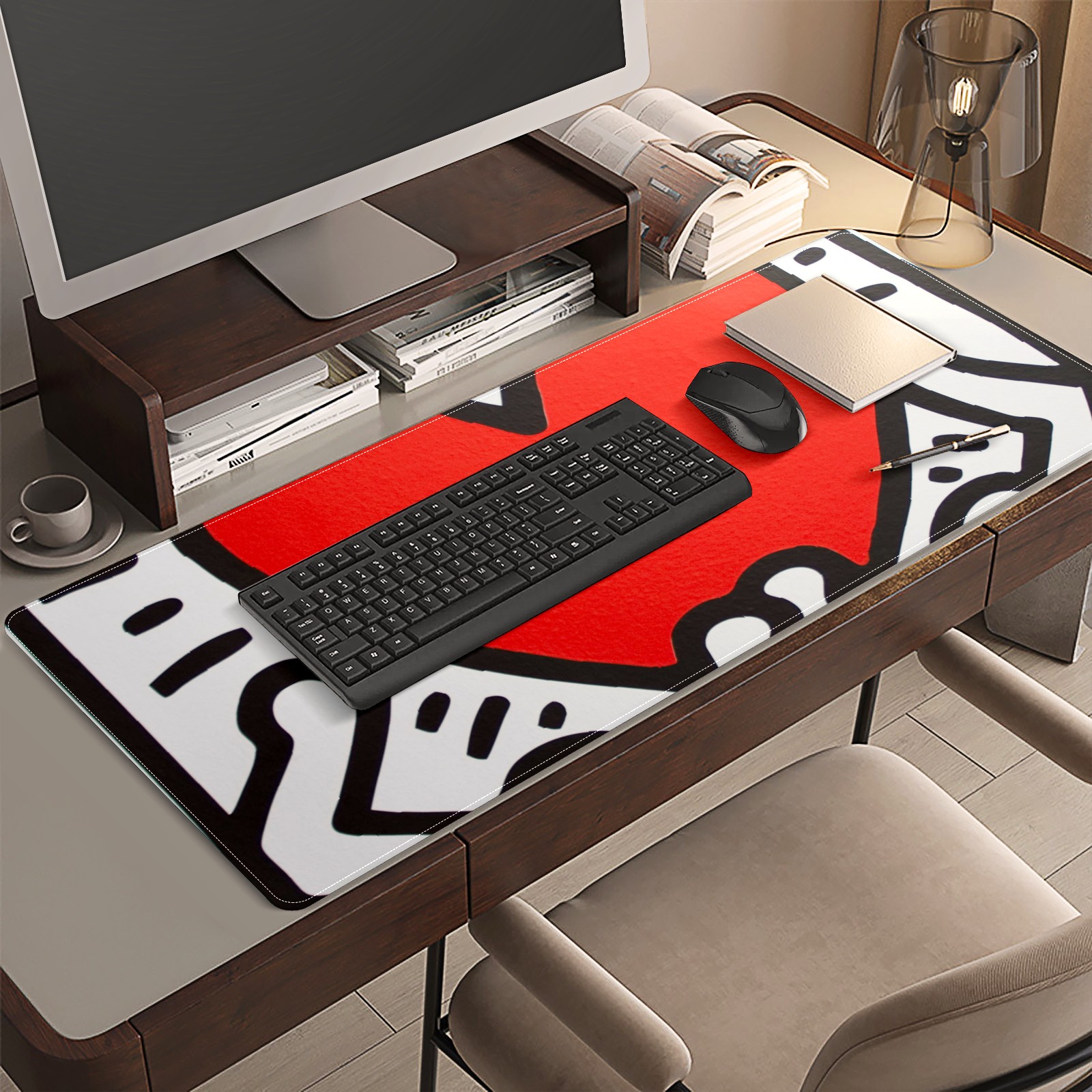 <p>This 35.4” × 15.7” extended desk mat offers ample space for your keyboard, mouse and essentials, working as a smooth work/writing pad while protecting your desktop from scratches.</p><p>With stylish artistic patterns, it adds personality to your home office, study or gaming setup. The high-density woven surface ensures precise, smooth mouse tracking for work and gaming.</p><p>Featuring an anti-slip natural rubber base for firm grip and stability, the mat is soft, elastic and odorless. Reinforced stitched edges prevent fraying and curling for long-lasting durability.</p>