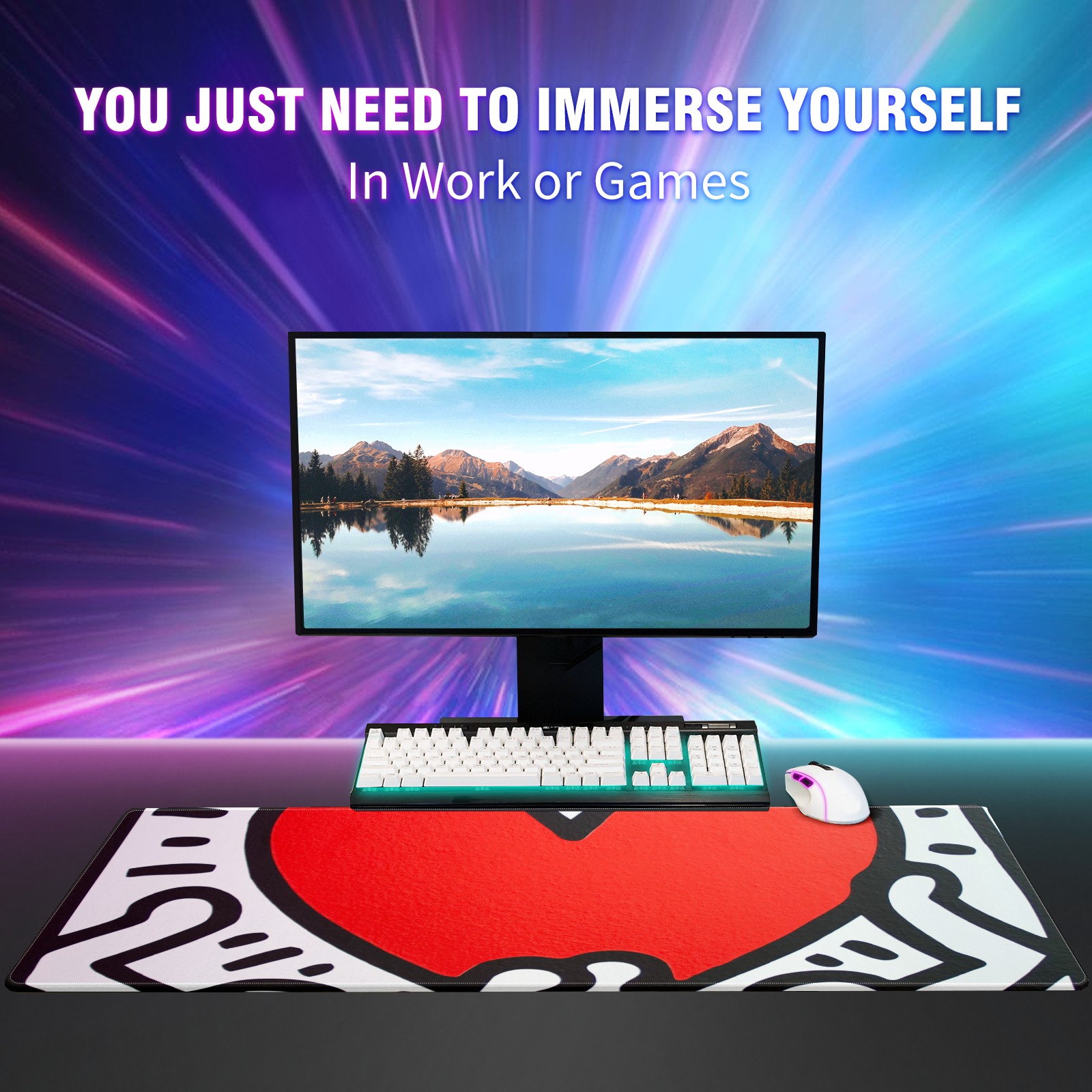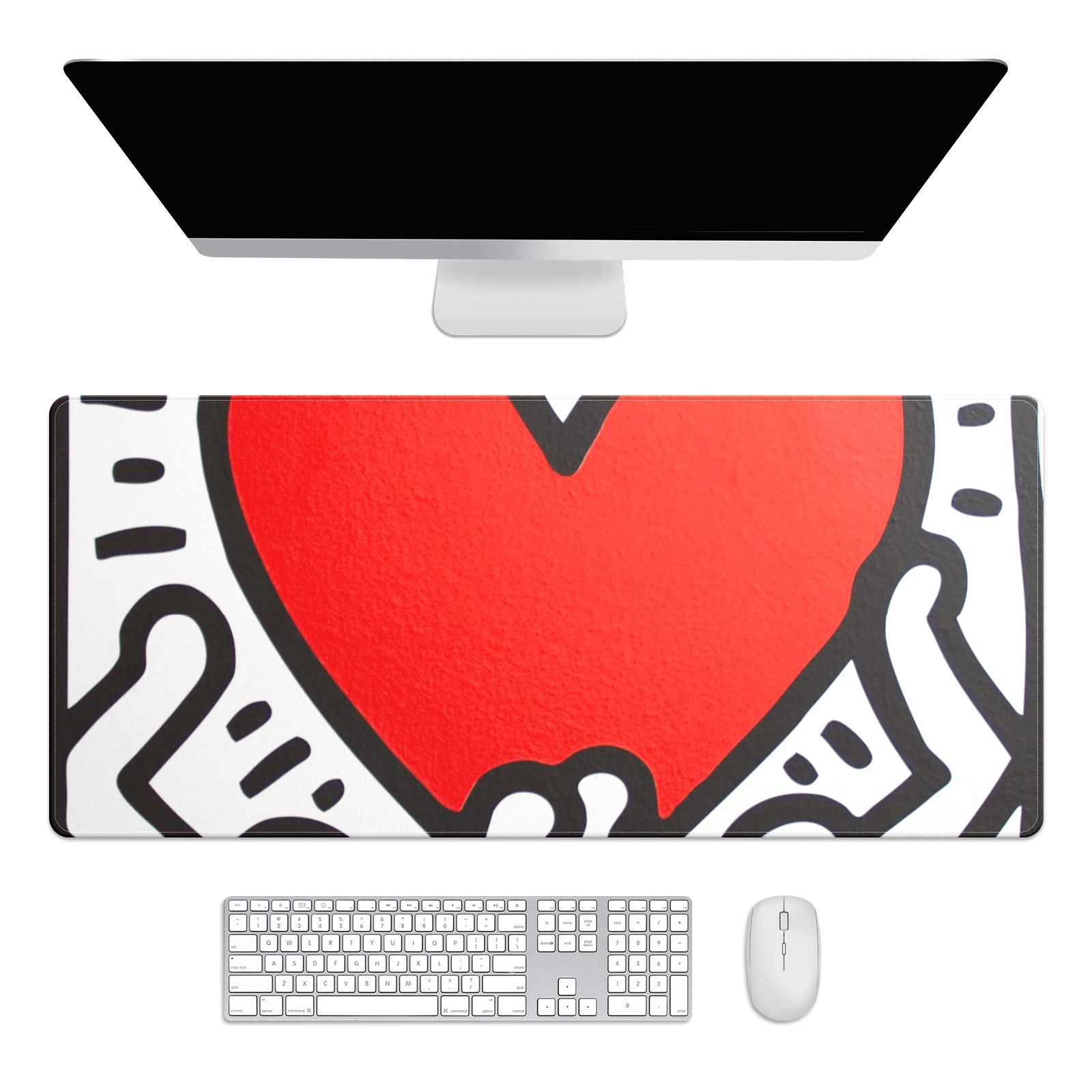Large Mouse Pad for Desktop, Cute Desk Mat Pad Protector for Work & Gaming, Aesthetic Pretty Anti-Slip Laptop Blotter Cover for Office School Home Supplies, Love Heart , 35.4inx15.7in