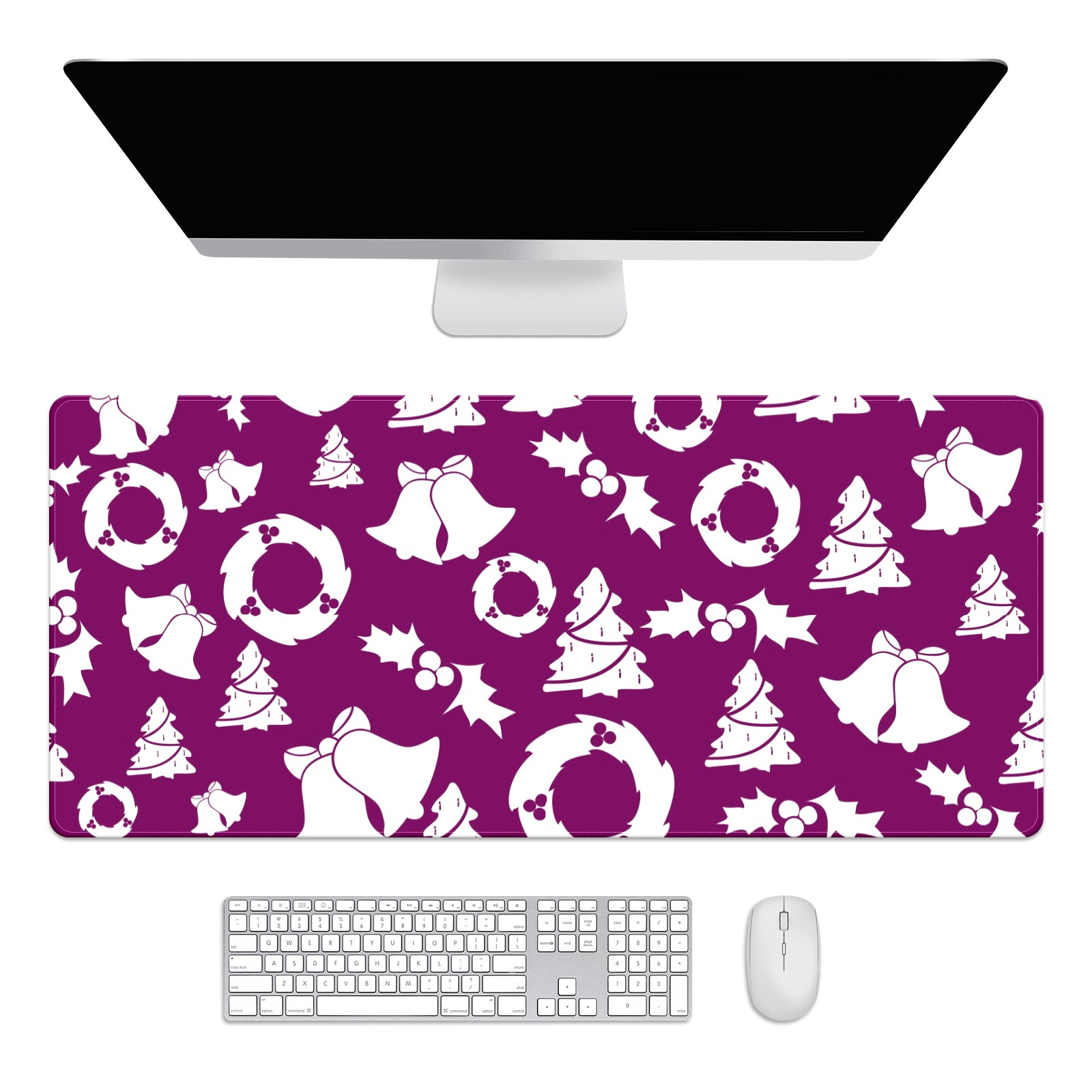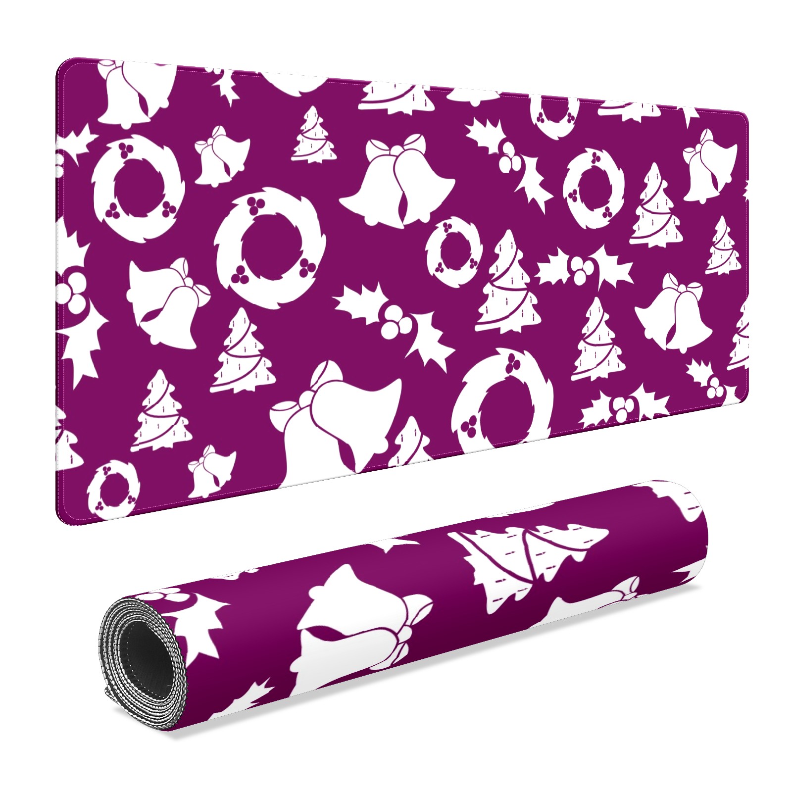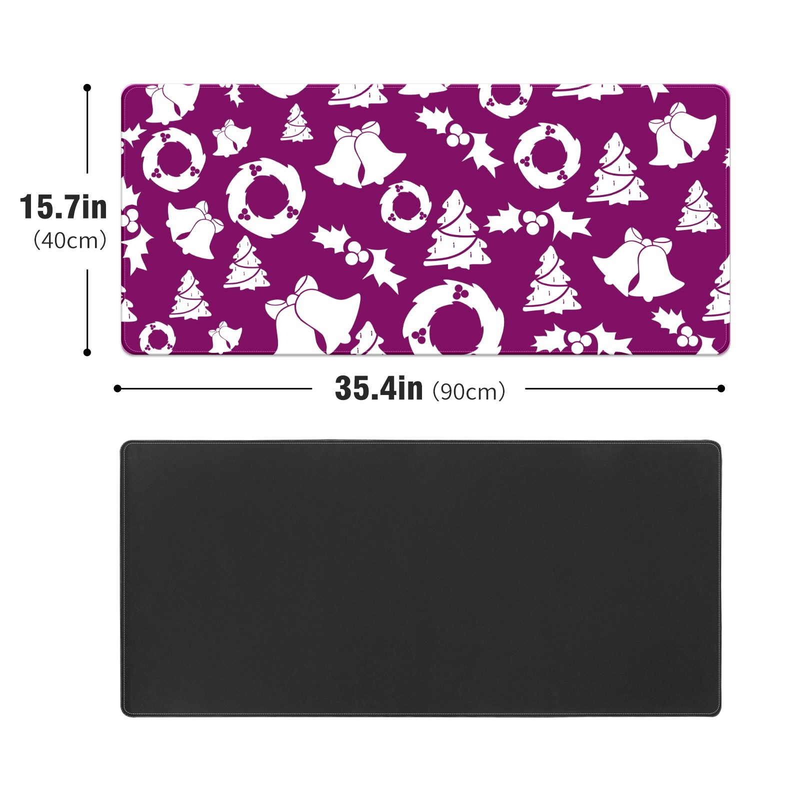 Large Mouse Pad for Desktop, Cute Desk Mat Pad Protector for Work & Gaming, Aesthetic Pretty Anti-Slip Laptop Blotter Cover for Office School Home Supplies, Christmas Tree Bell Wreath Seamless , 35.4inx15.7in