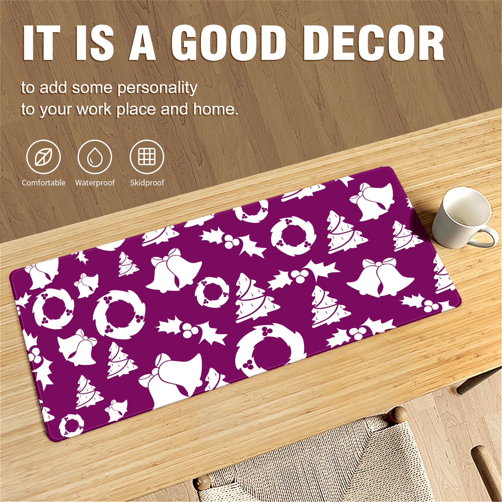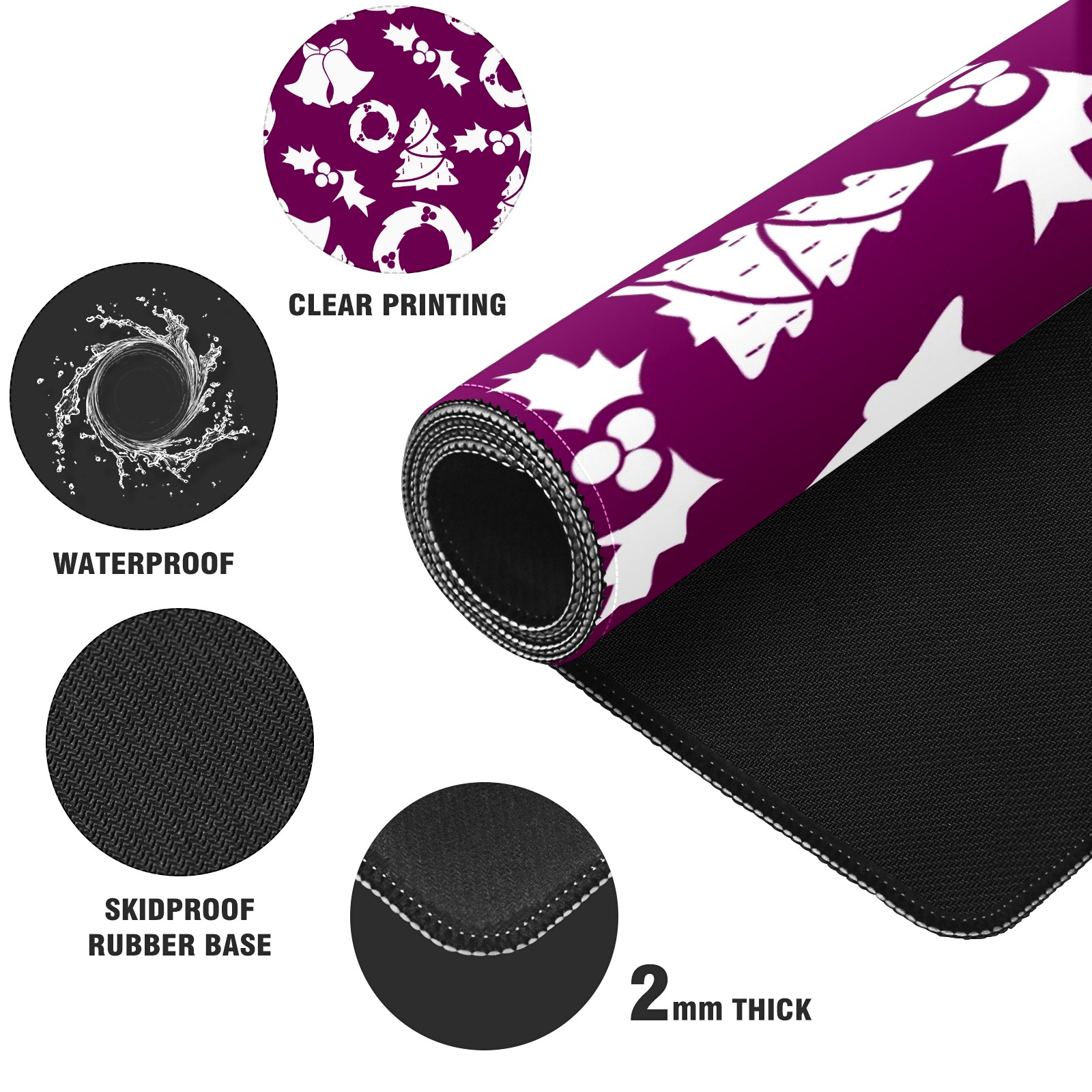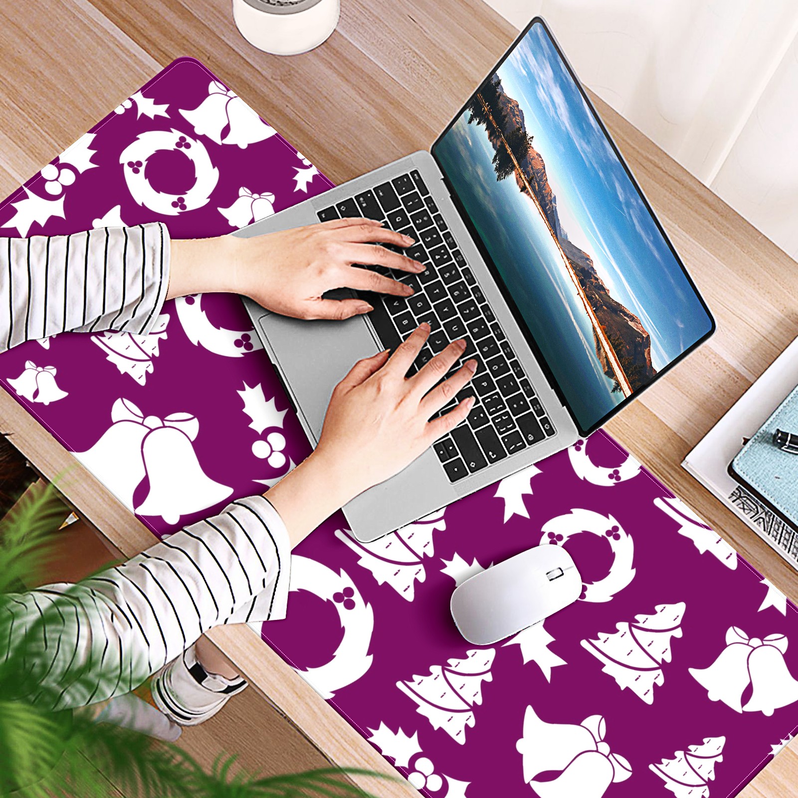 Large Mouse Pad for Desktop, Cute Desk Mat Pad Protector for Work & Gaming, Aesthetic Pretty Anti-Slip Laptop Blotter Cover for Office School Home Supplies, Christmas Tree Bell Wreath Seamless , 35.4inx15.7in