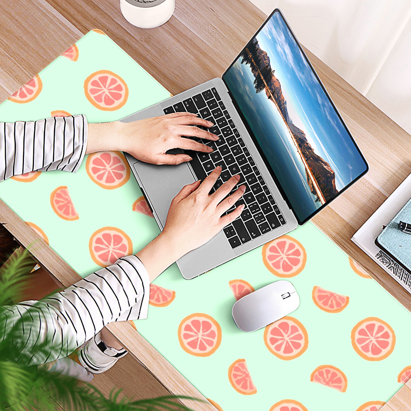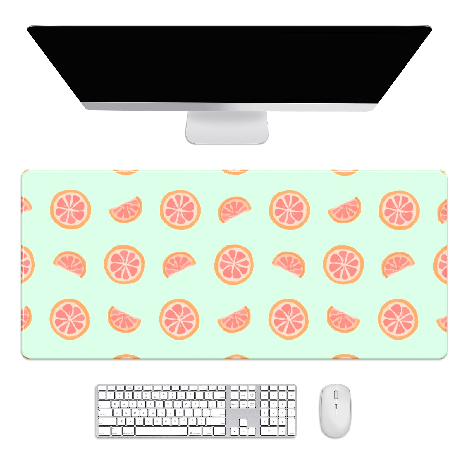 Large Mouse Pad for Desktop, Cute Desk Mat Pad Protector for Work & Gaming, Aesthetic Pretty Anti-Slip Laptop Blotter Cover for Office School Home Supplies, Orange Light Green Seamless , 35.4inx15.7in
