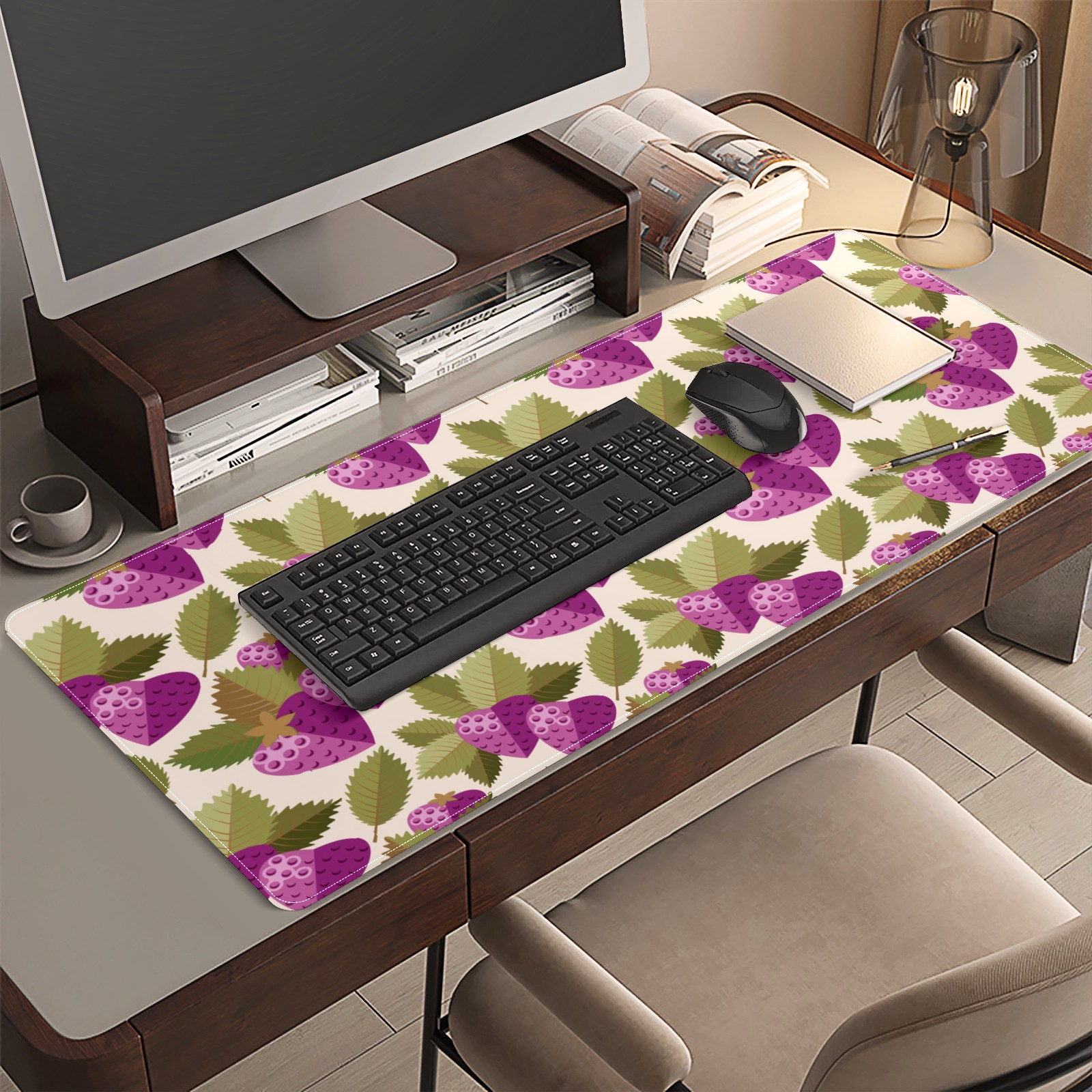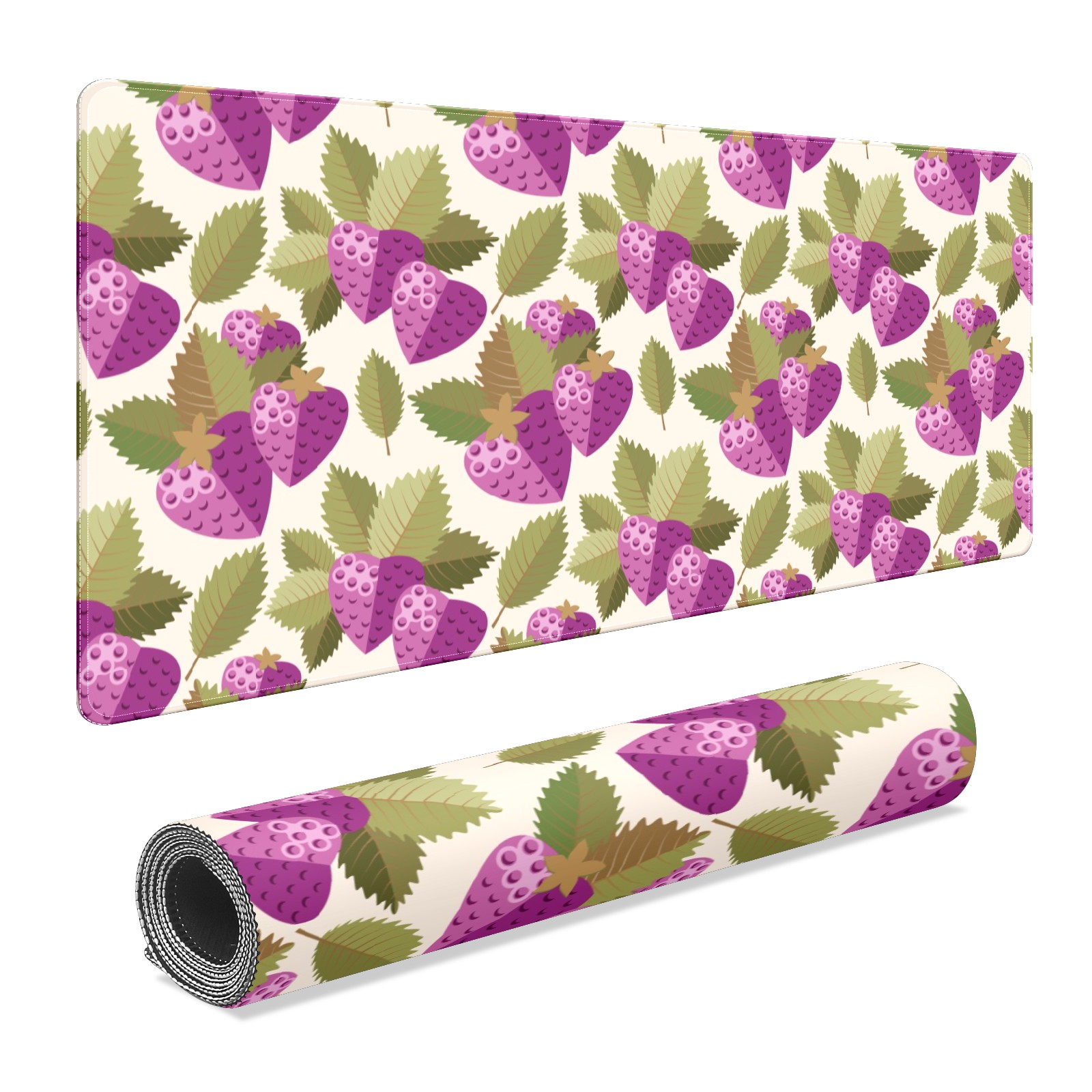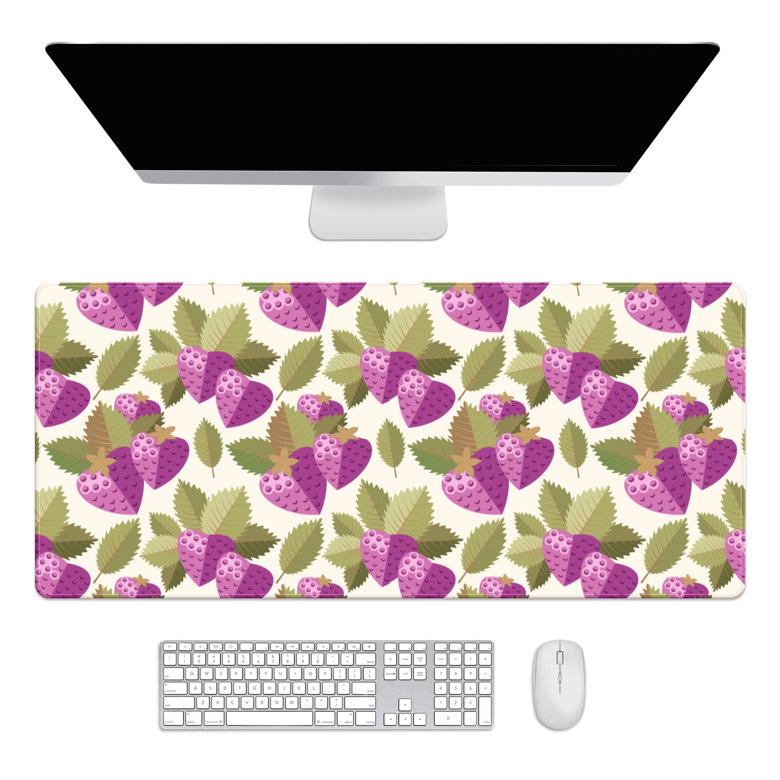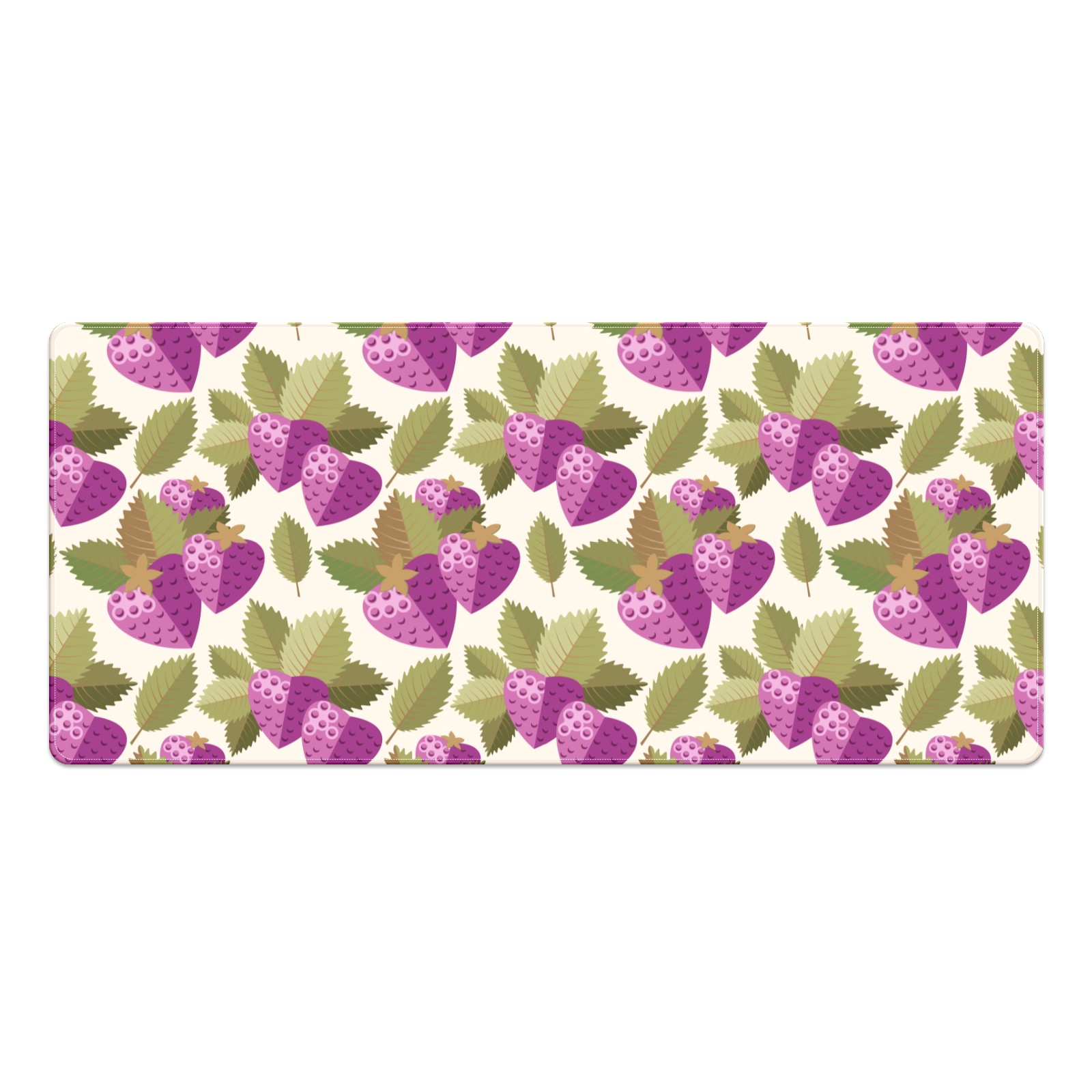 Large Mouse Pad for Desktop, Cute Desk Mat Pad Protector for Work & Gaming, Aesthetic Pretty Anti-Slip Laptop Blotter Cover for Office School Home Supplies, Purple Strawberry Leaves Seamless , 35.4inx15.7in