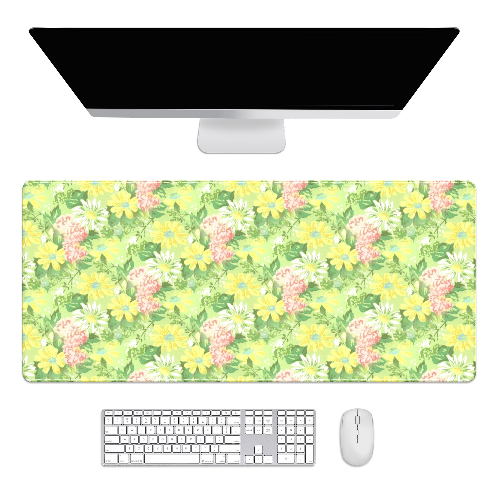 Large Mouse Pad for Desktop, Cute Desk Mat Pad Protector for Work & Gaming, Aesthetic Pretty Anti-Slip Laptop Blotter Cover for Office School Home Supplies, Floral Bloom Vintage Seamless , 35.4inx15.7in